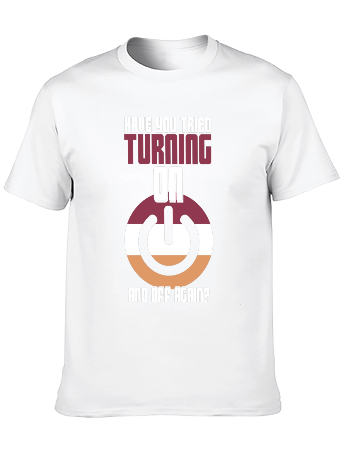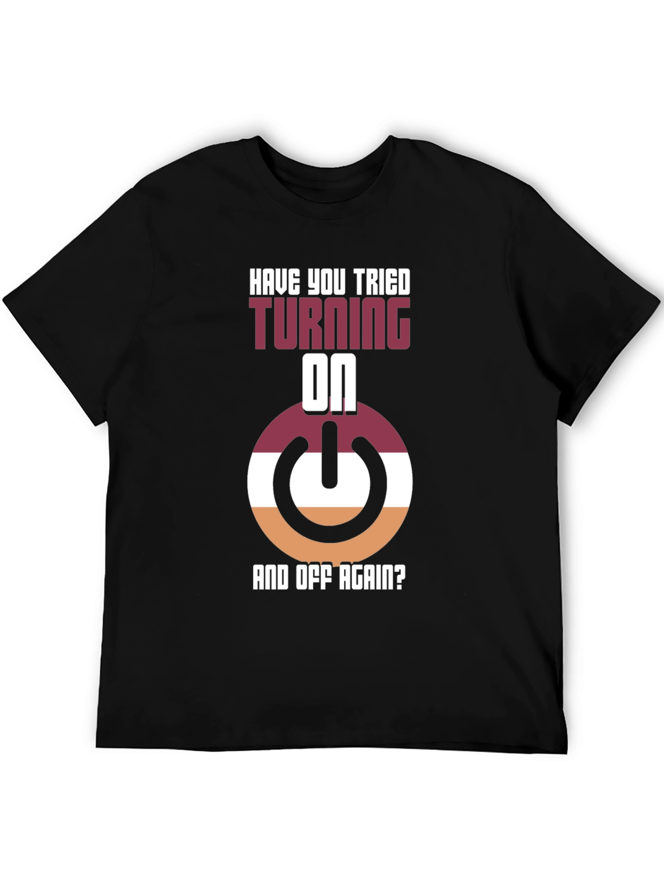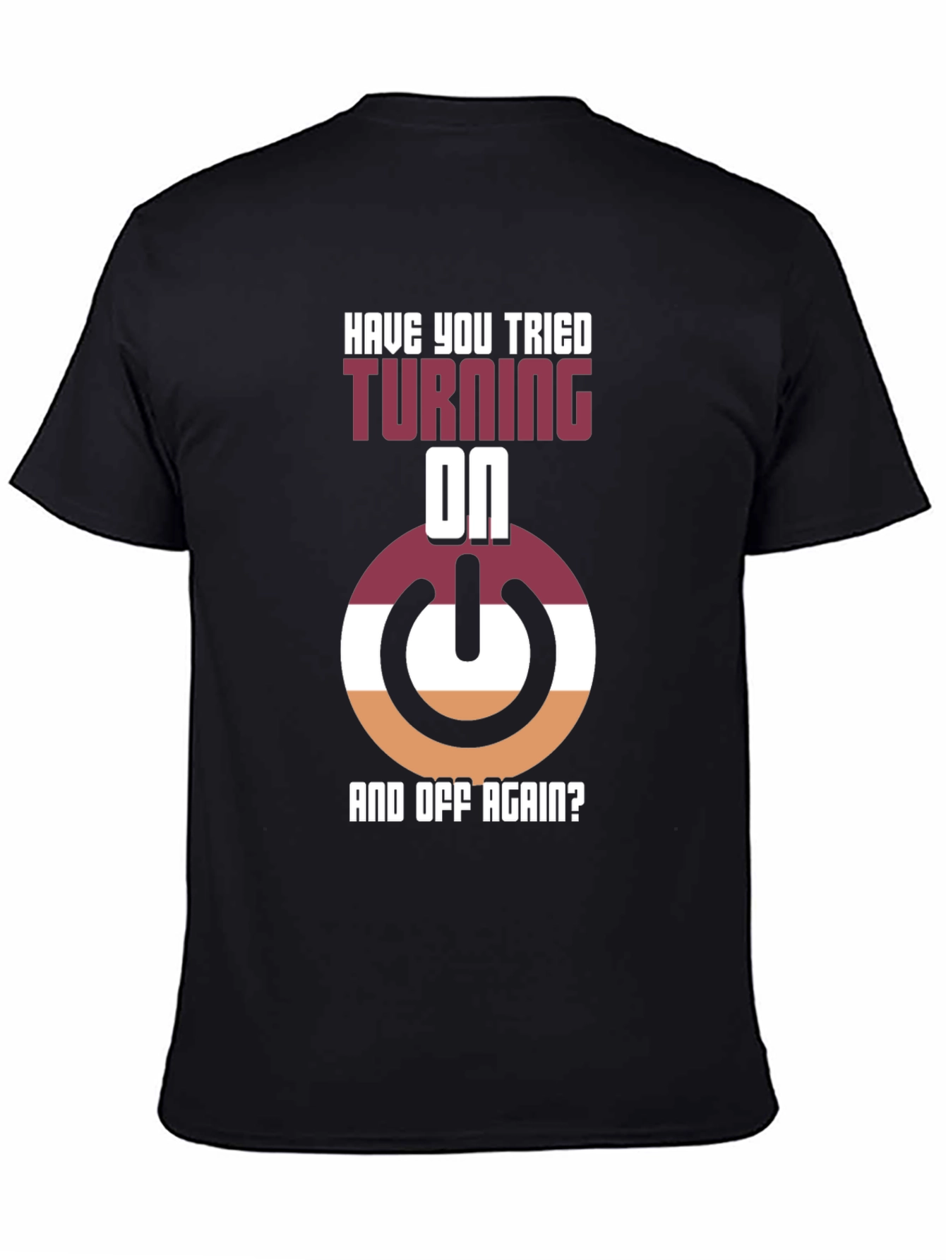 ¡Muestra tu lado geek con esta divertida camiseta! Con un diseño llamativo que presenta un botón de encendido estilizado en tonos borgoña, blanco y naranja, junto con la frase "¿Has Intentado Apagarlo Y Encenderlo Otra Vez?", esta camiseta negra es perfecta para los amantes de la tecnología y el humor informático. Hecha con materiales cómodos y duraderos, es ideal para usar en casa, en el trabajo o en cualquier evento casual donde quieras destacar. Su diseño único seguro que llamará la atención y provocará conversaciones interesantes. ¡Consigue la tuya y añade un toque de originalidad a tu guardarropa!