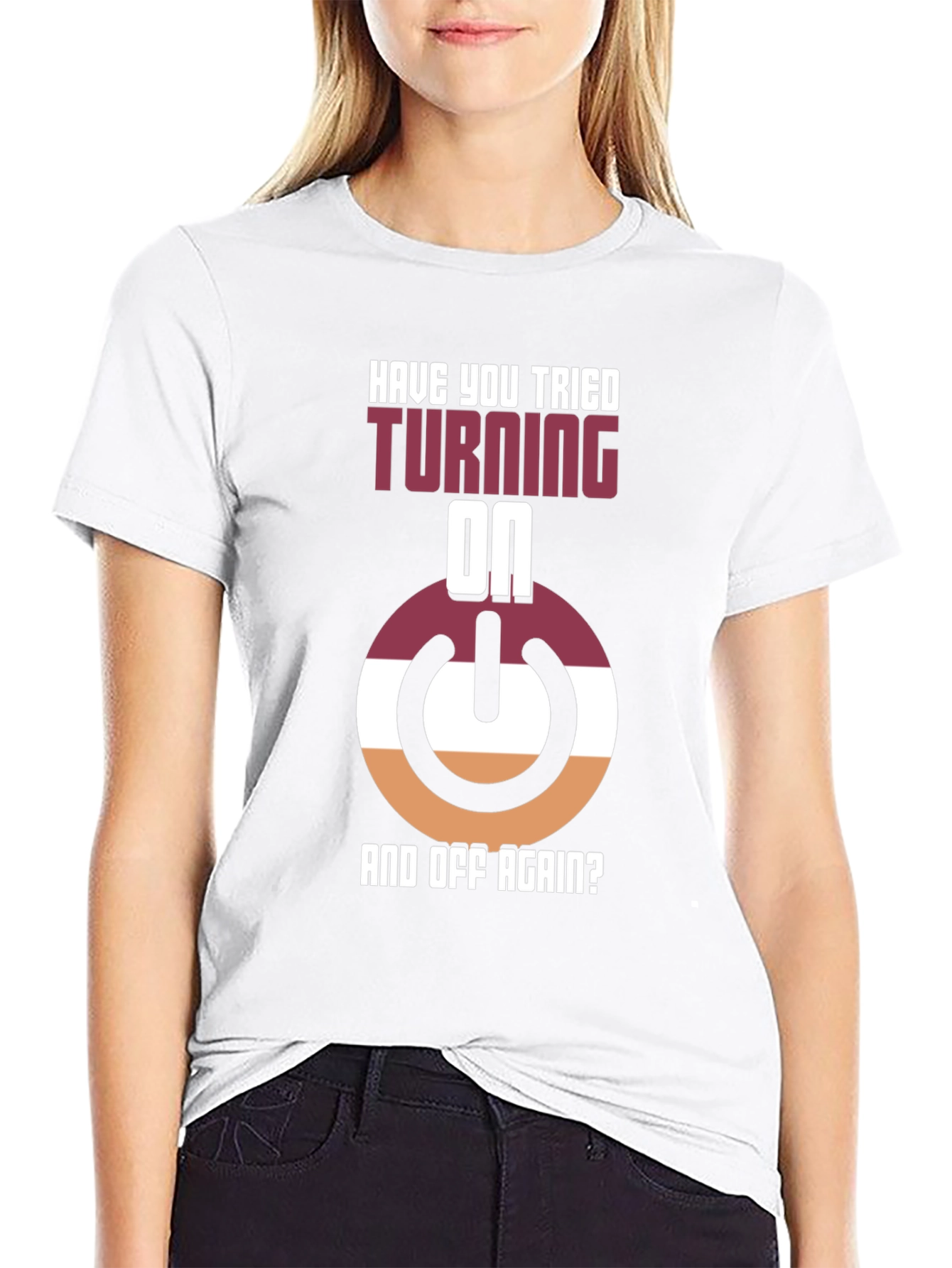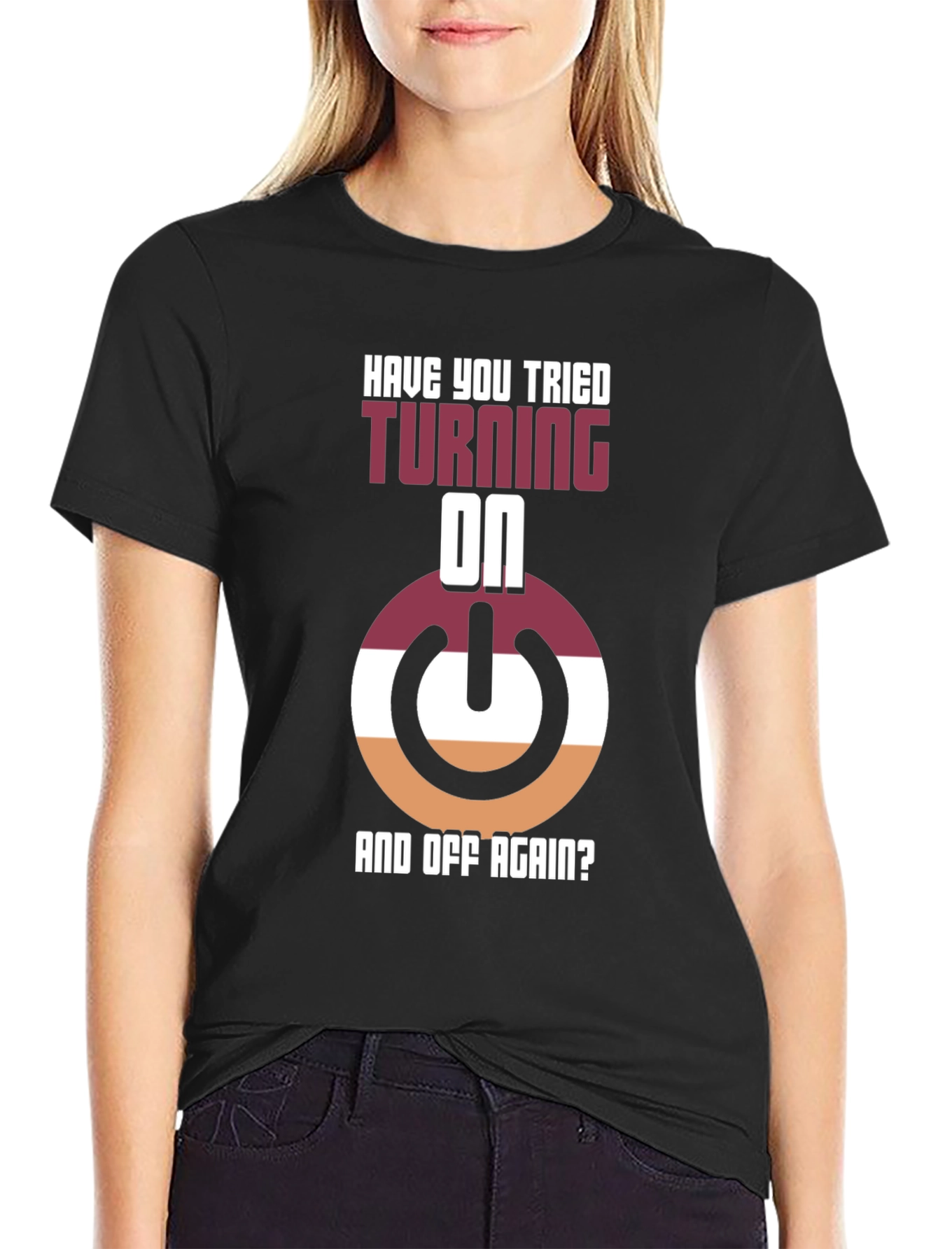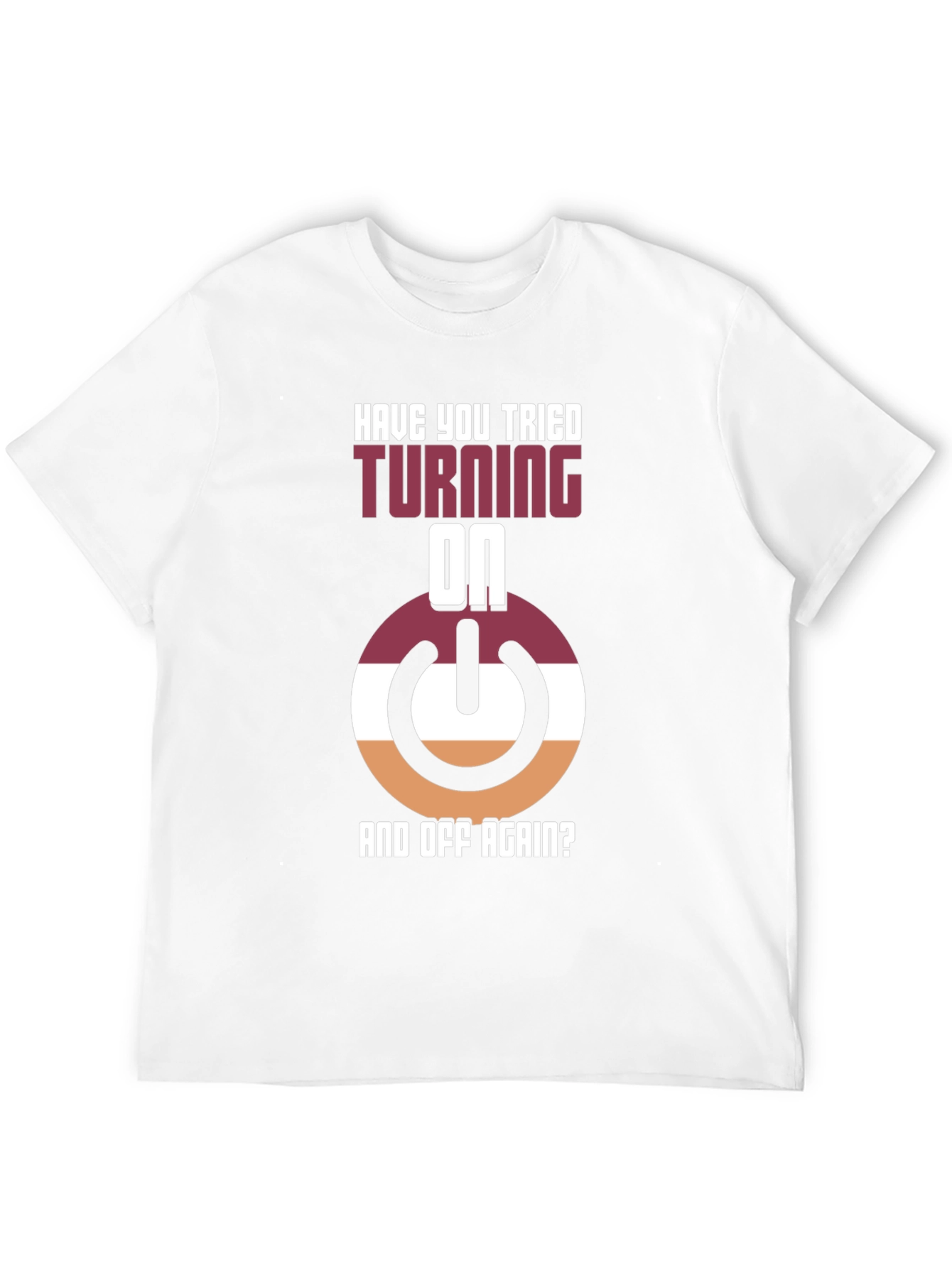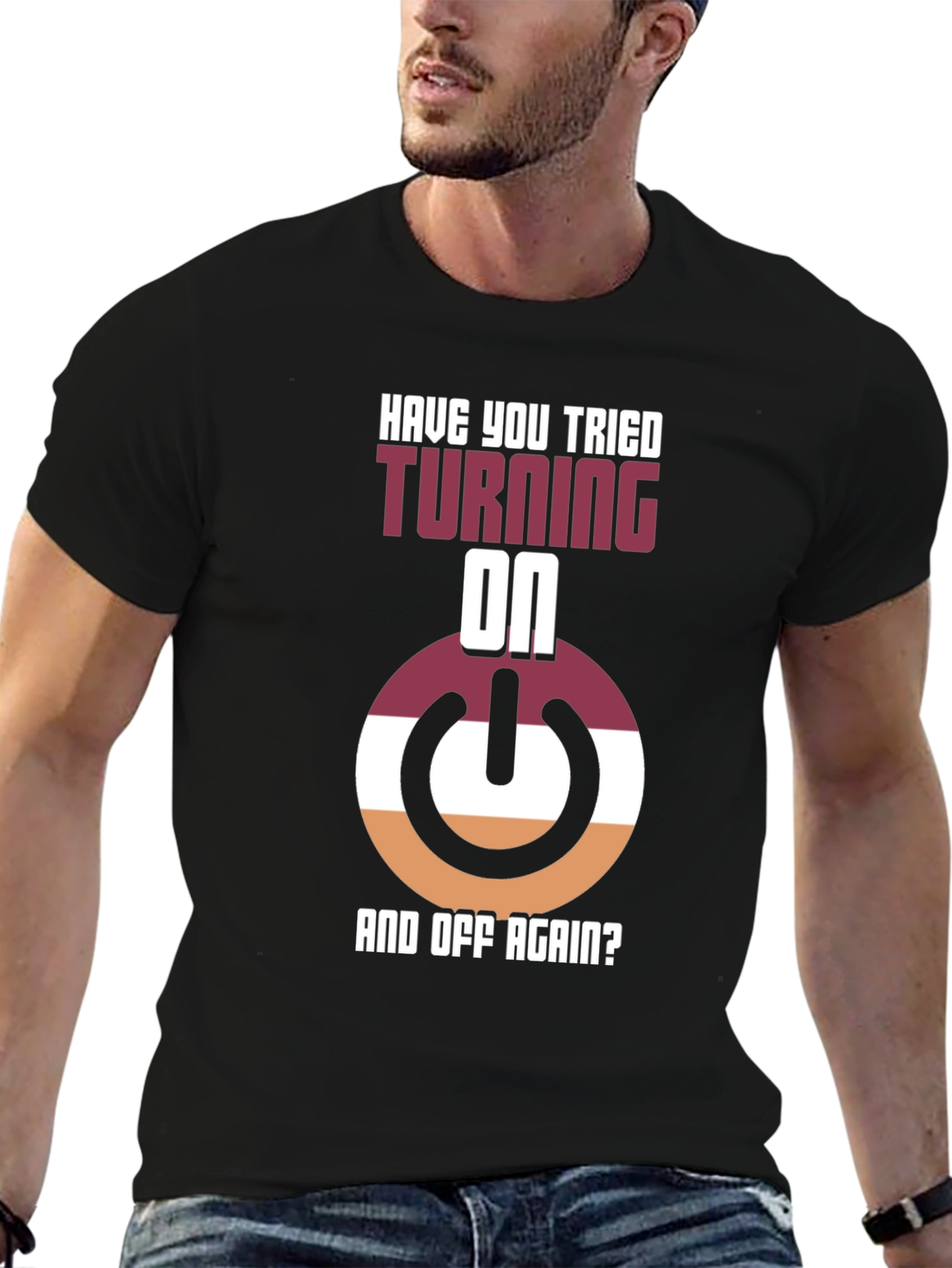 ¡Muestra tu lado geek con esta divertida camiseta! Con un diseño llamativo que presenta un botón de encendido estilizado en tonos borgoña, blanco y naranja, junto con la frase "¿Has Intentado Apagarlo Y Encenderlo Otra Vez?", esta camiseta negra es perfecta para los amantes de la tecnología y el humor informático. Hecha con materiales cómodos y duraderos, es ideal para usar en casa, en el trabajo o en cualquier evento casual donde quieras destacar. Su diseño único seguro que llamará la atención y provocará conversaciones interesantes. ¡Consigue la tuya y añade un toque de originalidad a tu guardarropa!
