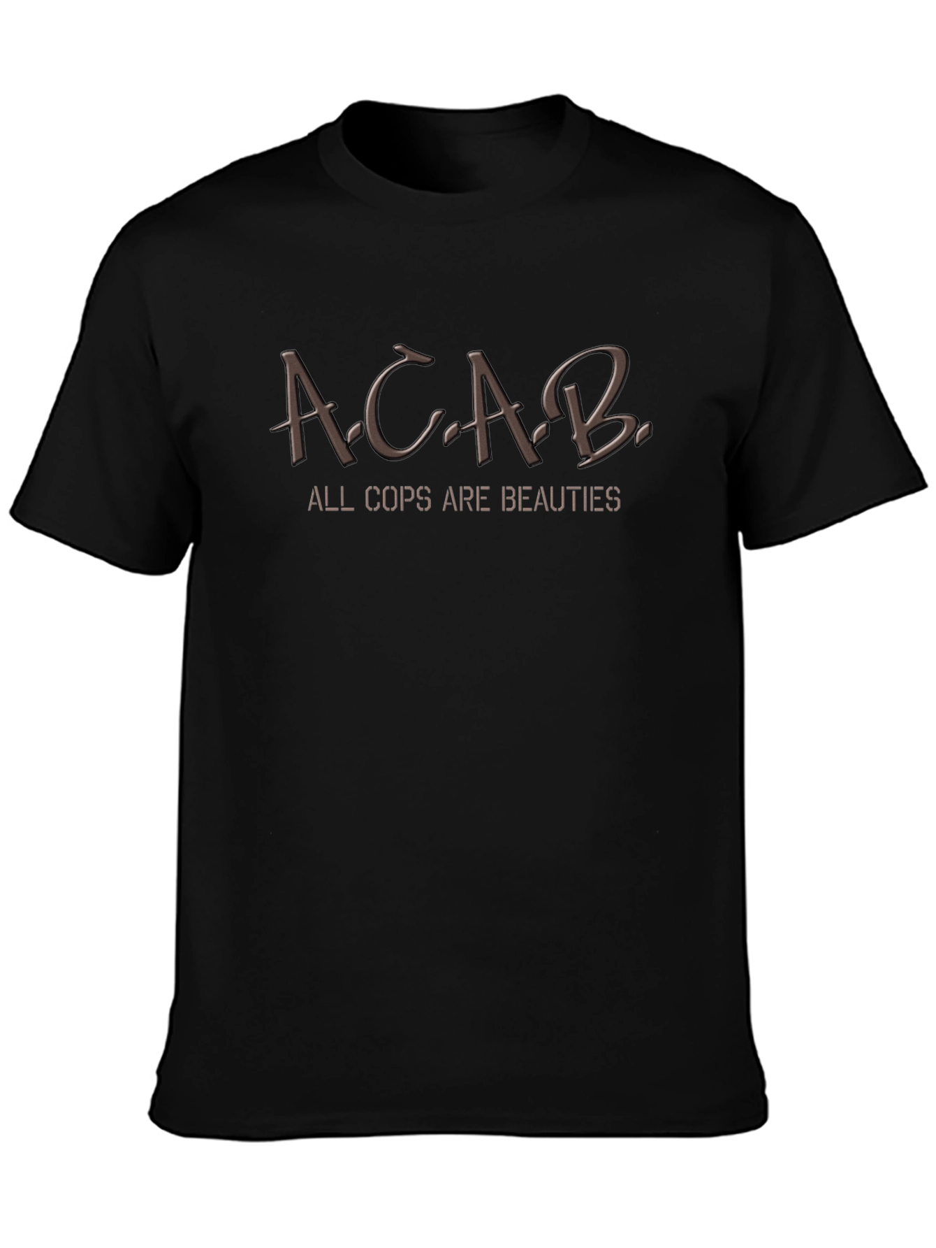 Luce esta llamativa camiseta negra con un toque de humor irreverente. Presenta el texto "A.C.A.B." en letras sombreadas, complementado con la divertida frase "ALL COPS ARE BEAUTIES". Perfecta para expresar tu opinión con estilo y originalidad. Ideal para llevar en concentraciones, eventos sociales o simplemente en tu día a día. Confeccionada con materiales de alta calidad para una comodidad duradera. Su diseño único la convierte en una prenda imprescindible para aquellos que buscan destacar y hacer una declaración audaz. Un regalo perfecto para amigos y familiares con un sentido del humor similar.