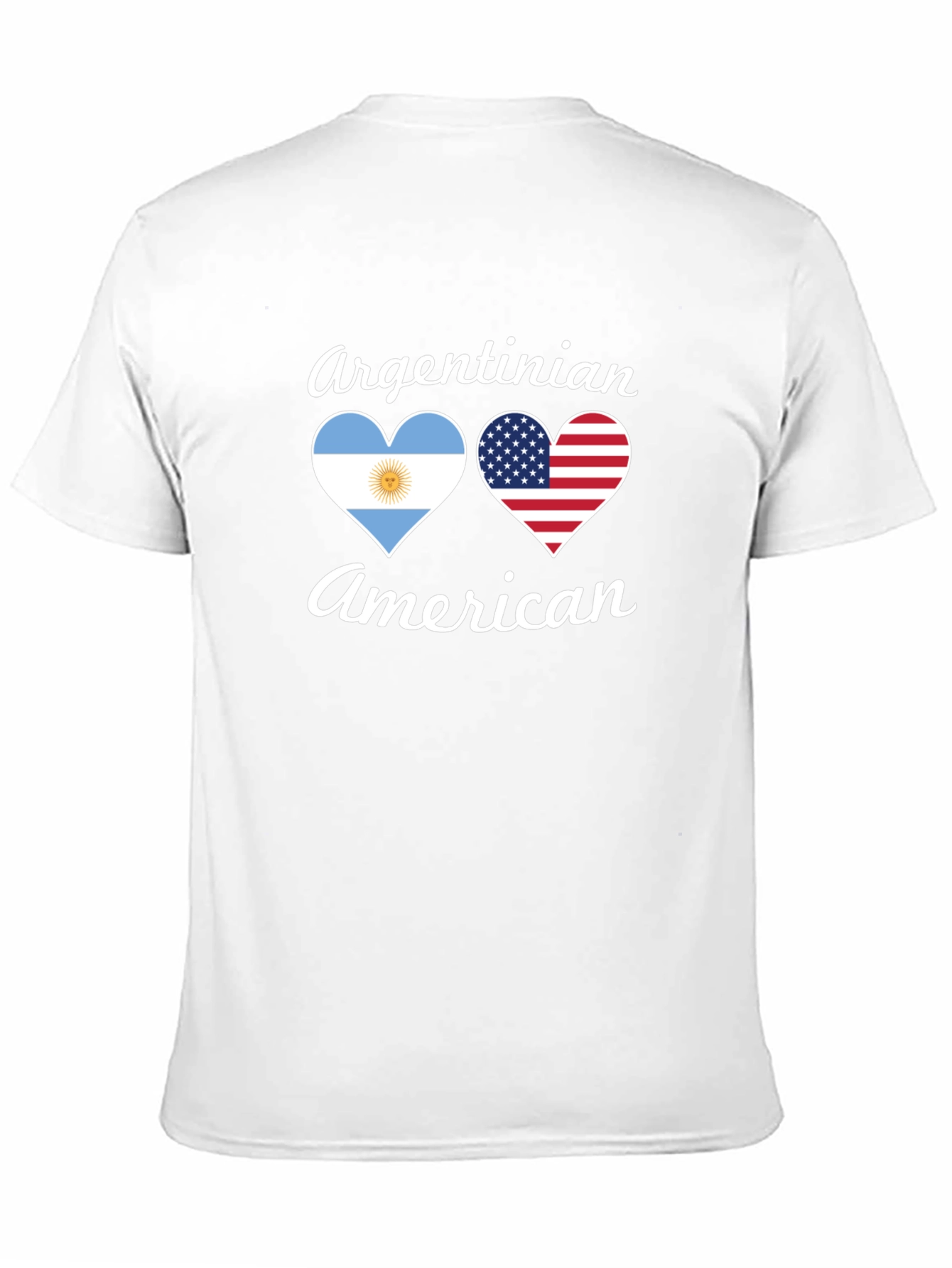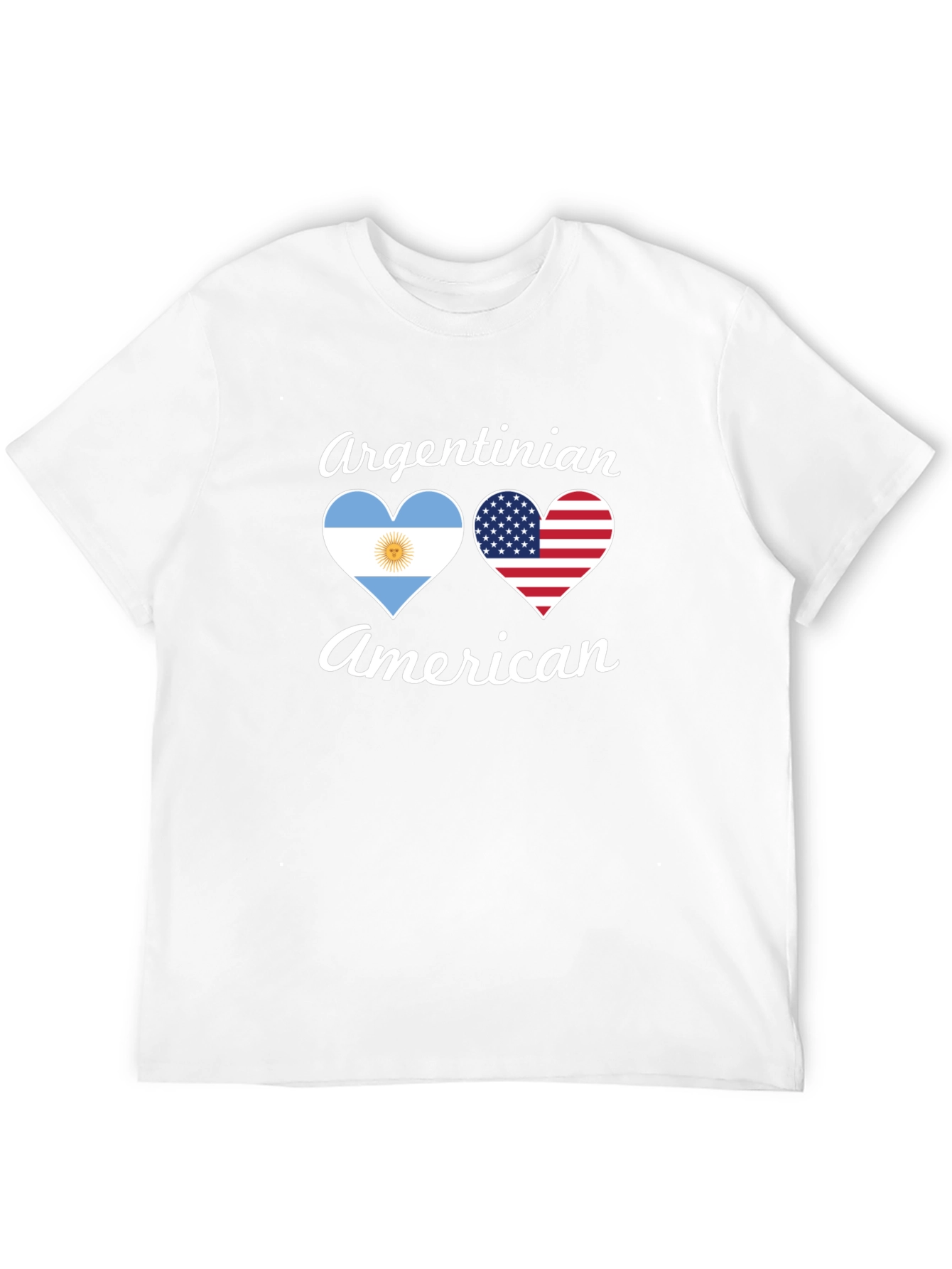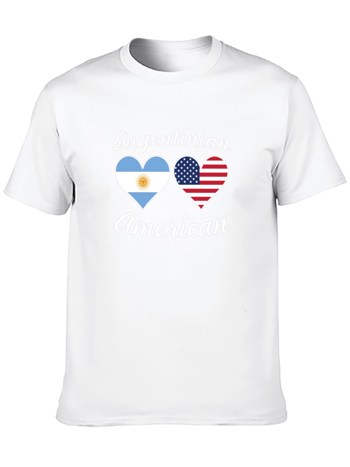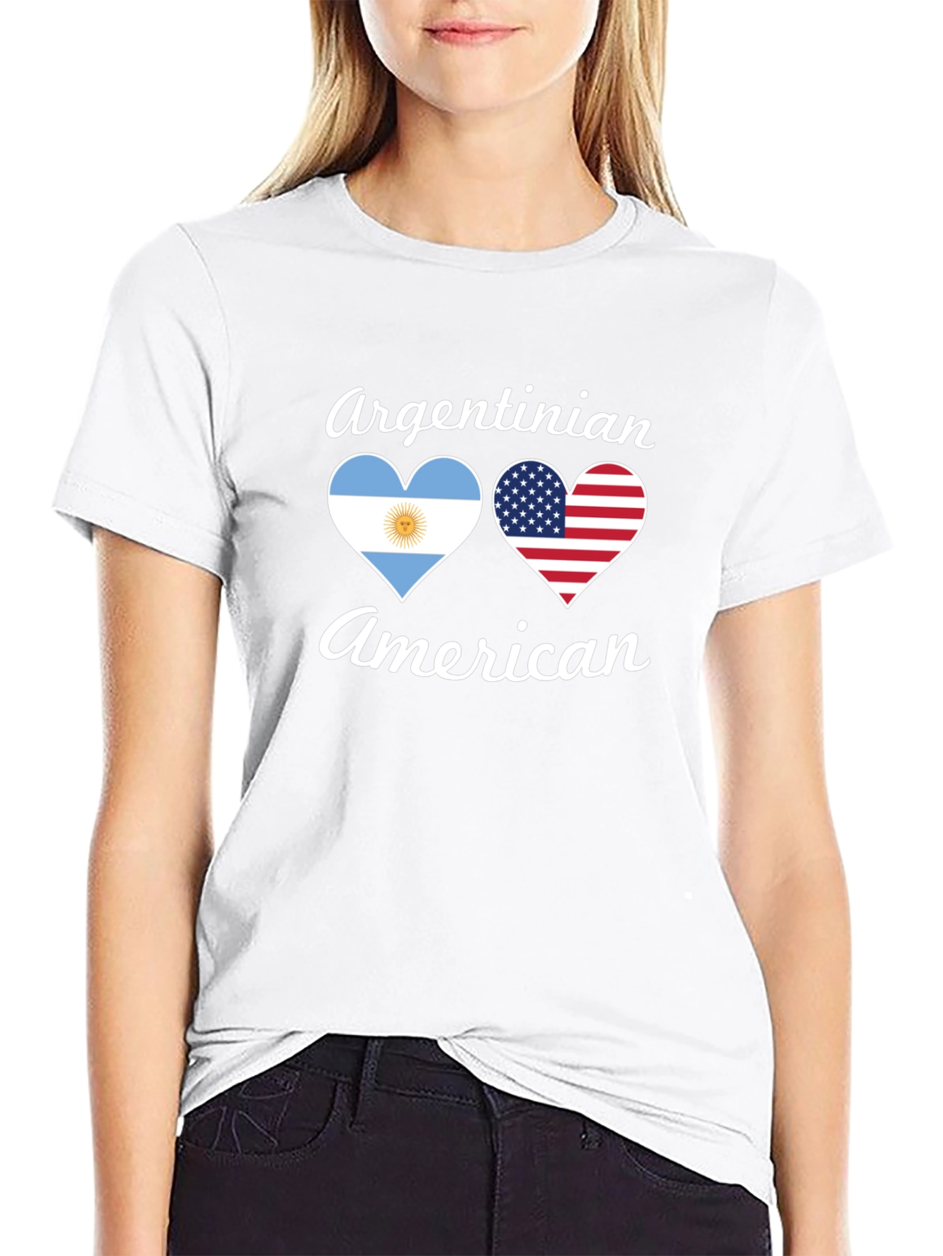 Muestra tu orgullo dual con esta elegante camiseta negra. Presenta un diseño único con las palabras "Argentinian American" dispuestas artísticamente sobre dos corazones, cada uno adornado con las banderas de Argentina y Estados Unidos respectivamente. Ideal para celebrar tu herencia mixta, esta camiseta es perfecta para eventos culturales, reuniones familiares o simplemente para expresar tu identidad única. Fabricada con materiales suaves y cómodos, esta camiseta de corte clásico te asegura estilo y confort durante todo el día. Un regalo perfecto para aquellos que aprecian sus raíces tanto argentinas como americanas.