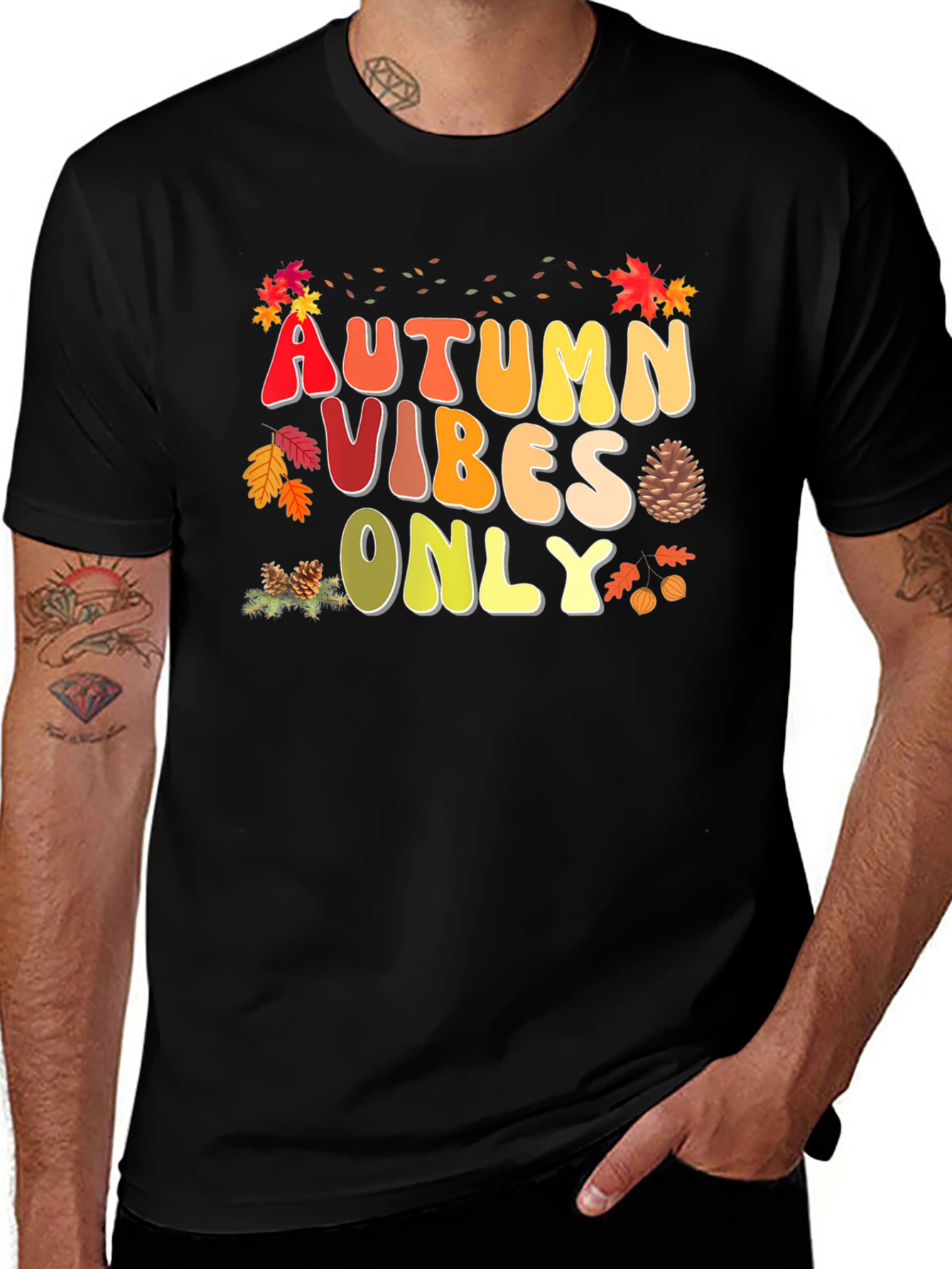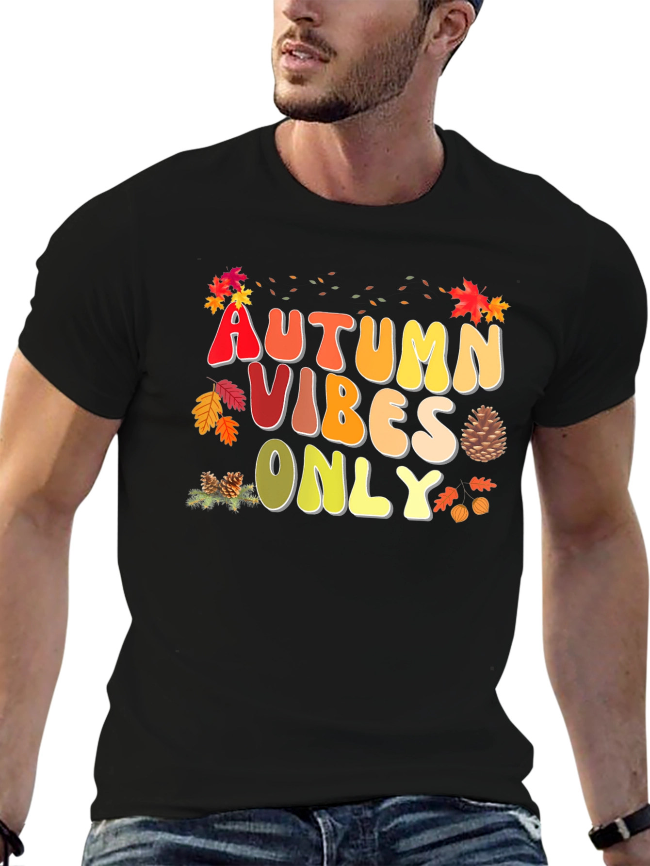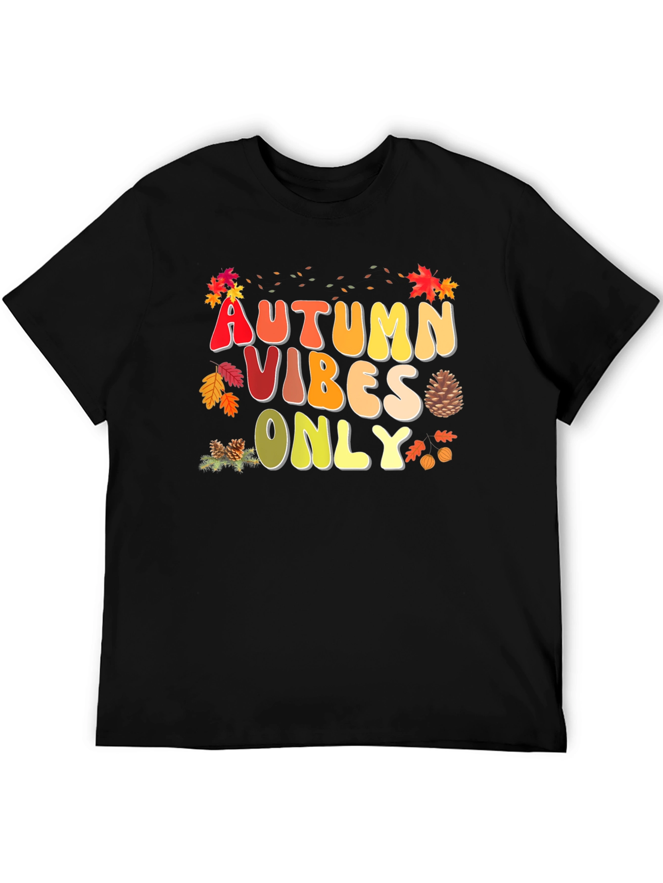 Celebra la temporada de otoño con esta vibrante camiseta negra. Presenta un llamativo diseño con las palabras "Autumn Vibes Only" en una tipografía colorida y divertida, adornada con hojas de otoño y piñas. El diseño evoca una sensación cálida y acogedora, perfecta para los amantes del otoño. Ideal para llevar en reuniones informales, paseos por el parque o simplemente para mostrar tu espíritu otoñal. Fabricada con materiales cómodos y duraderos, esta camiseta es una adición imprescindible para tu armario de temporada. Destaca entre la multitud con esta prenda única y alegre que captura la esencia del otoño. ¡Es la elección perfecta para un estilo casual y festivo!