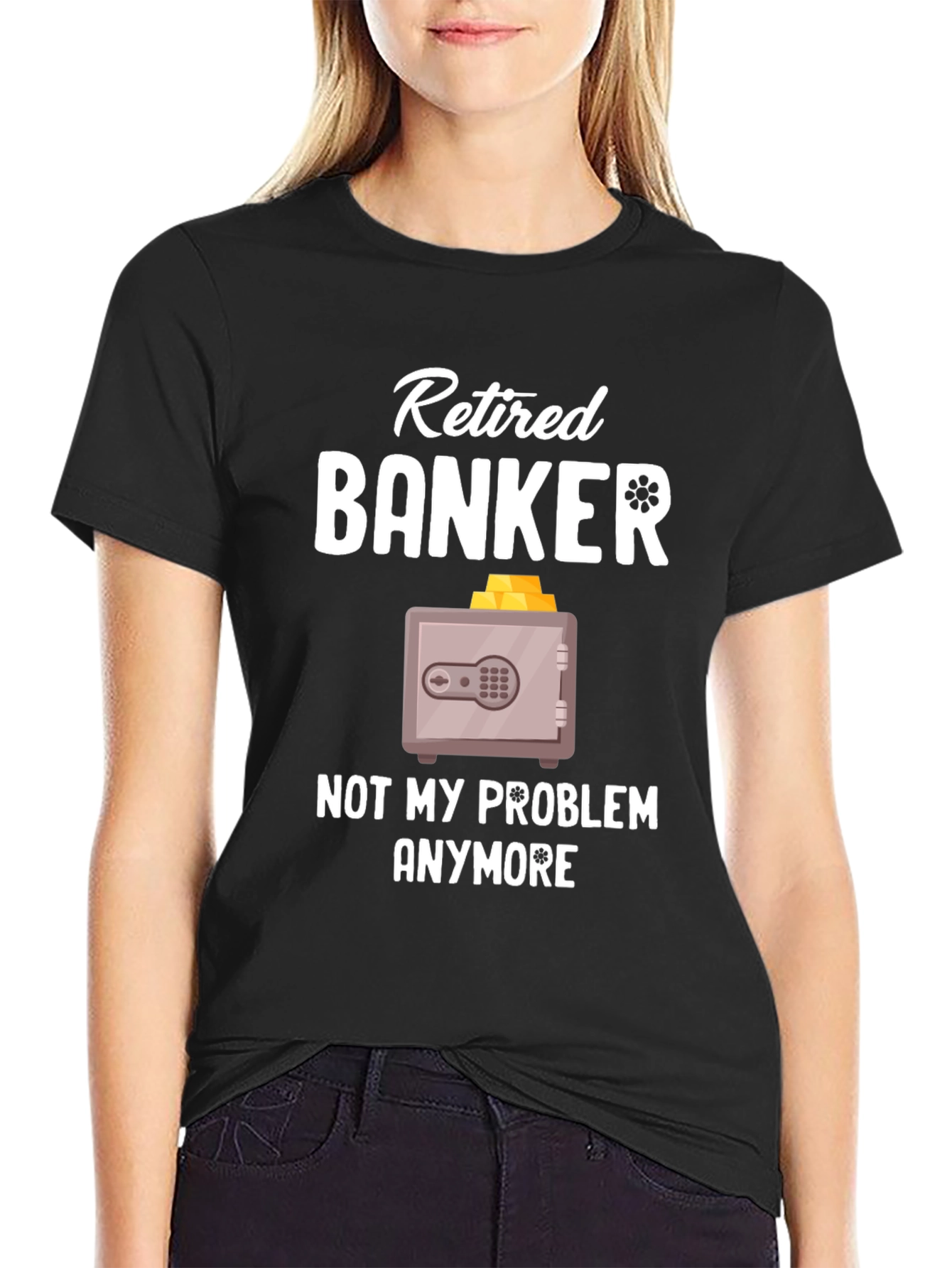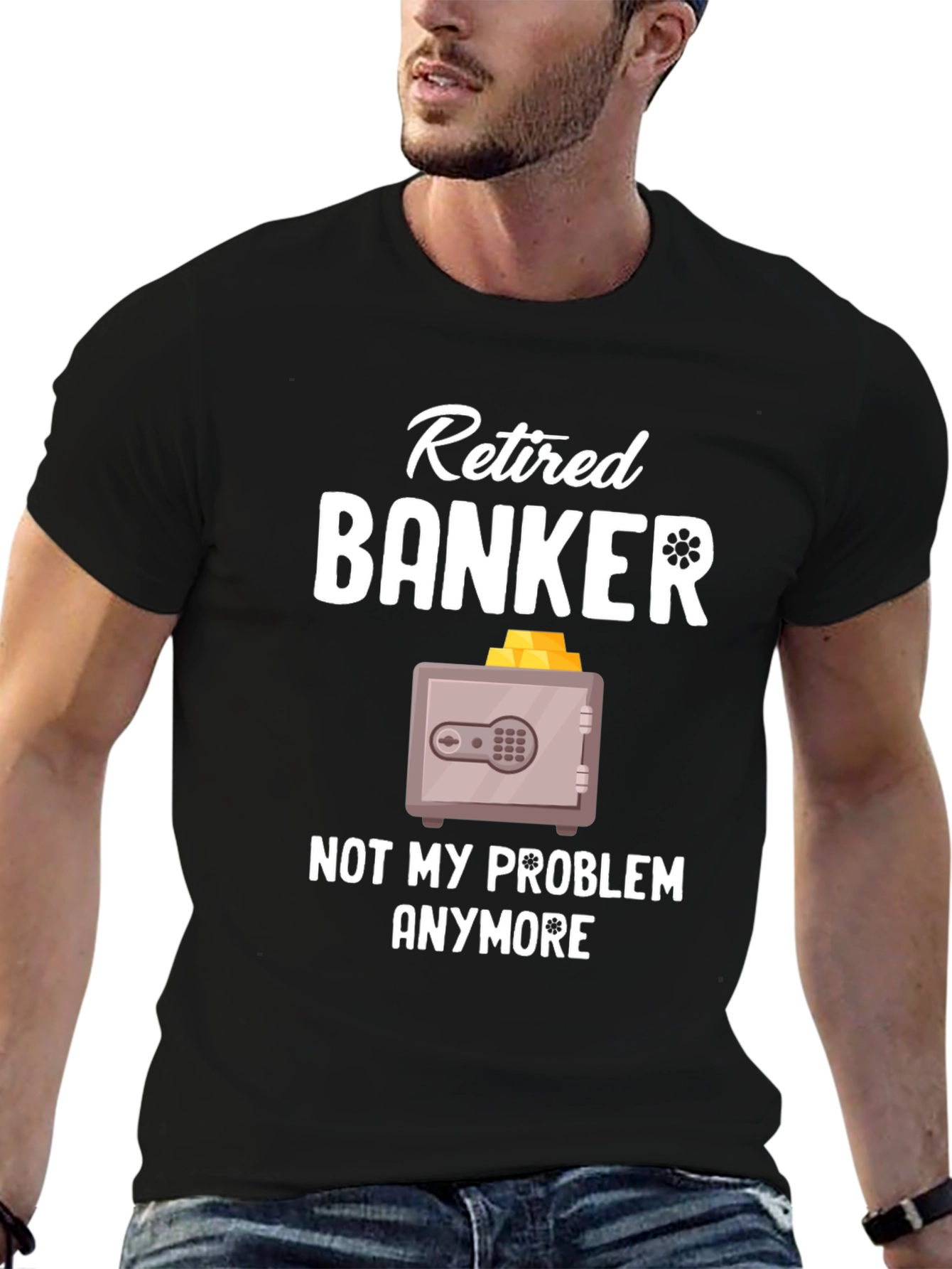 Luce esta divertida camiseta negra con un diseño ingenioso. En letras blancas destacadas, se lee "Retired BANKER" (Banquero Jubilado), acompañado de la imagen de una caja fuerte llena de lingotes de oro. Debajo, la frase "NOT MY PROBLEM ANYMORE" (Ya No Es Mi Problema) completa el mensaje con un toque humorístico. Ideal para aquellos que se han retirado de la banca y quieren mostrar su nuevo estatus con una sonrisa. Perfecta para usar en reuniones informales, salidas con amigos o simplemente para relajarse en casa. Fabricada con materiales cómodos y duraderos, esta camiseta es una excelente opción para expresar tu personalidad con estilo y buen humor.