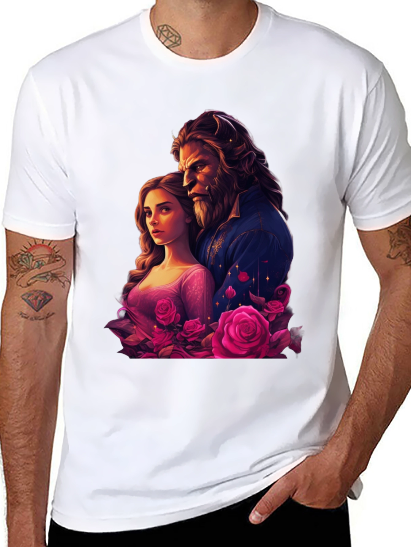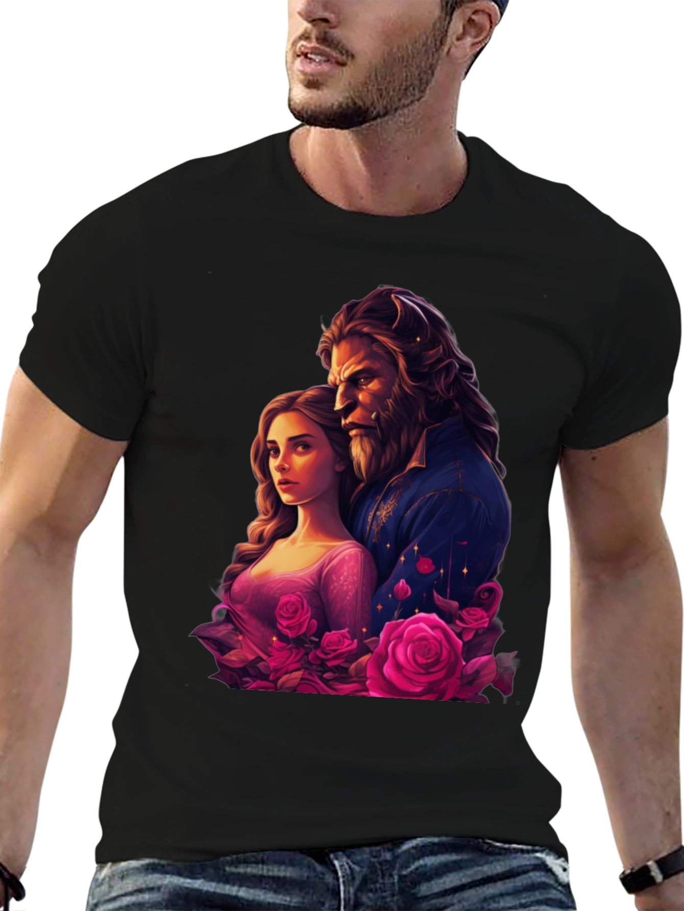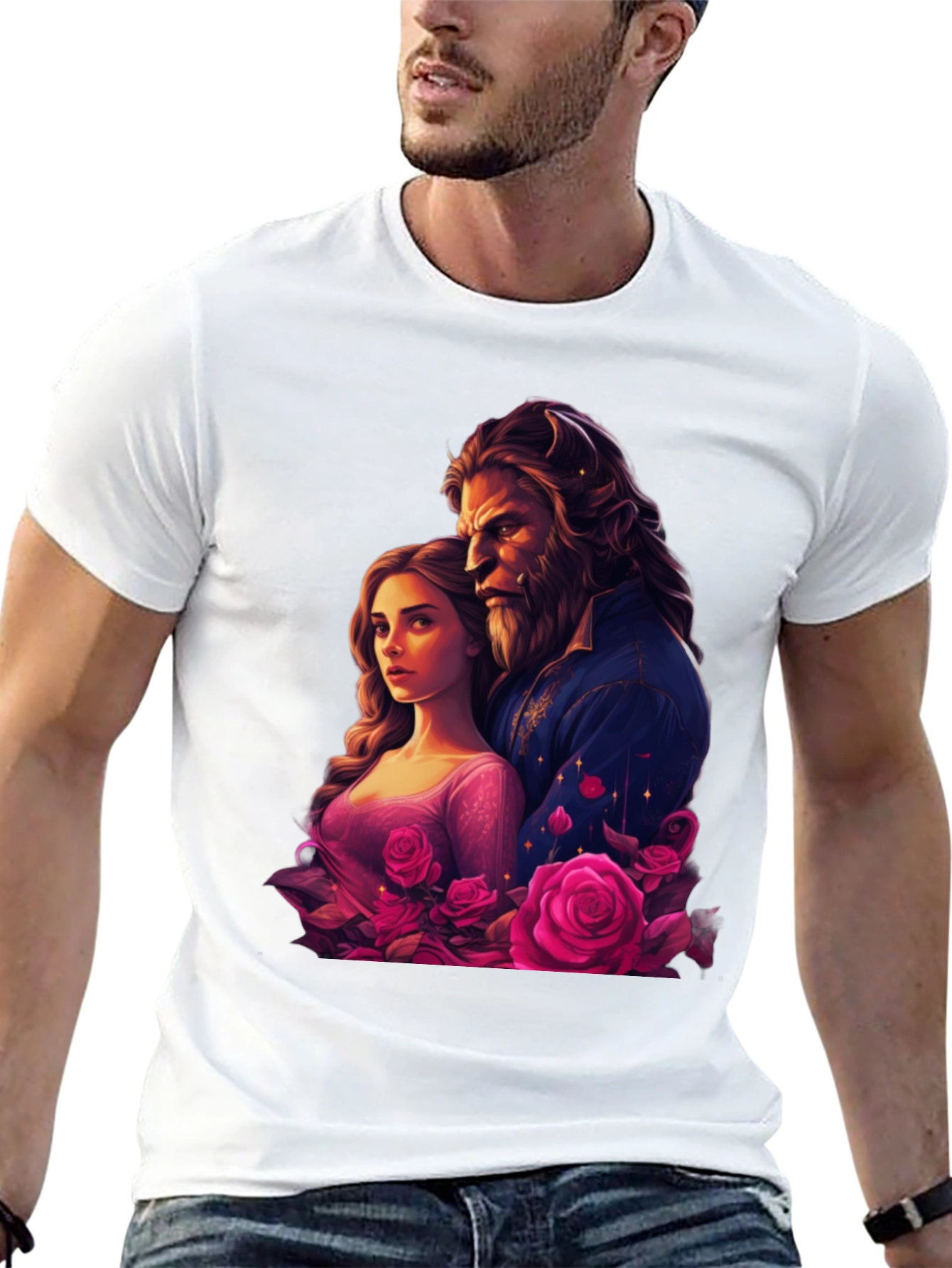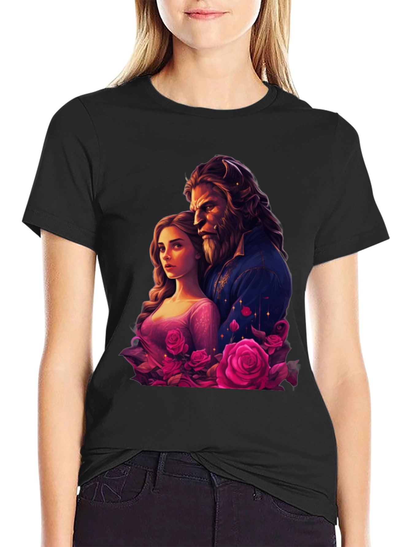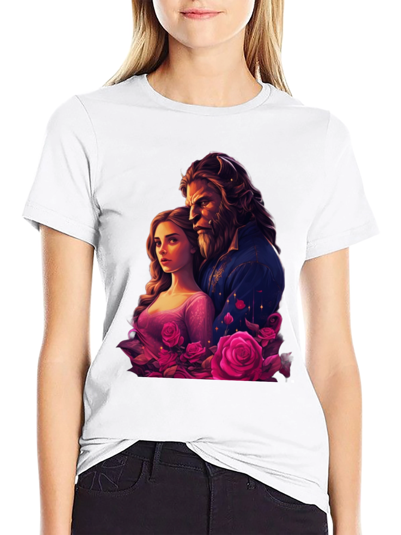 Camiseta Bella y Bestia Rosas - Diseño Romántico