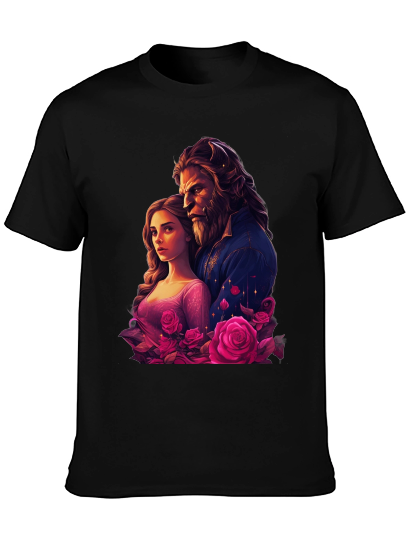 Luce esta camiseta negra con un estampado vibrante de Bella y Bestia rodeados de rosas rojas y rosadas. El diseño captura la magia y el romance de la historia, perfecto para fans. Confeccionada en tela suave y cómoda, ideal para uso diario. Muestra tu amor por los cuentos de hadas con este estilo único. Un regalo perfecto para esa persona especial o un capricho para ti. Diseño llamativo que destaca. ¡Añade un toque de fantasía a tu guardarropa!