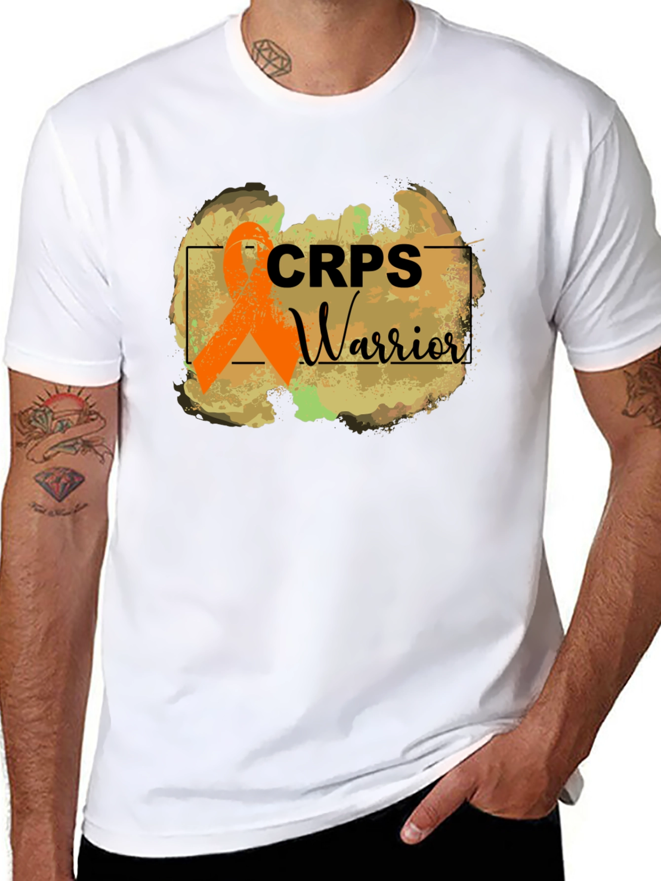 Muestra tu apoyo con esta camiseta "CRPS Warrior". Con un diseño llamativo que incluye un lazo naranja, un símbolo de conciencia del Síndrome de Dolor Regional Complejo (SDRC), esta camiseta es perfecta para crear conciencia y apoyar a quienes luchan contra esta condición. Fabricada en un material cómodo, ideal para el uso diario. Su estilo casual permite combinarla fácilmente con diferentes prendas. Lleva este mensaje de esperanza y fortaleza con orgullo. Ideal para eventos de sensibilización, caminatas de caridad o simplemente para mostrar tu apoyo diario.