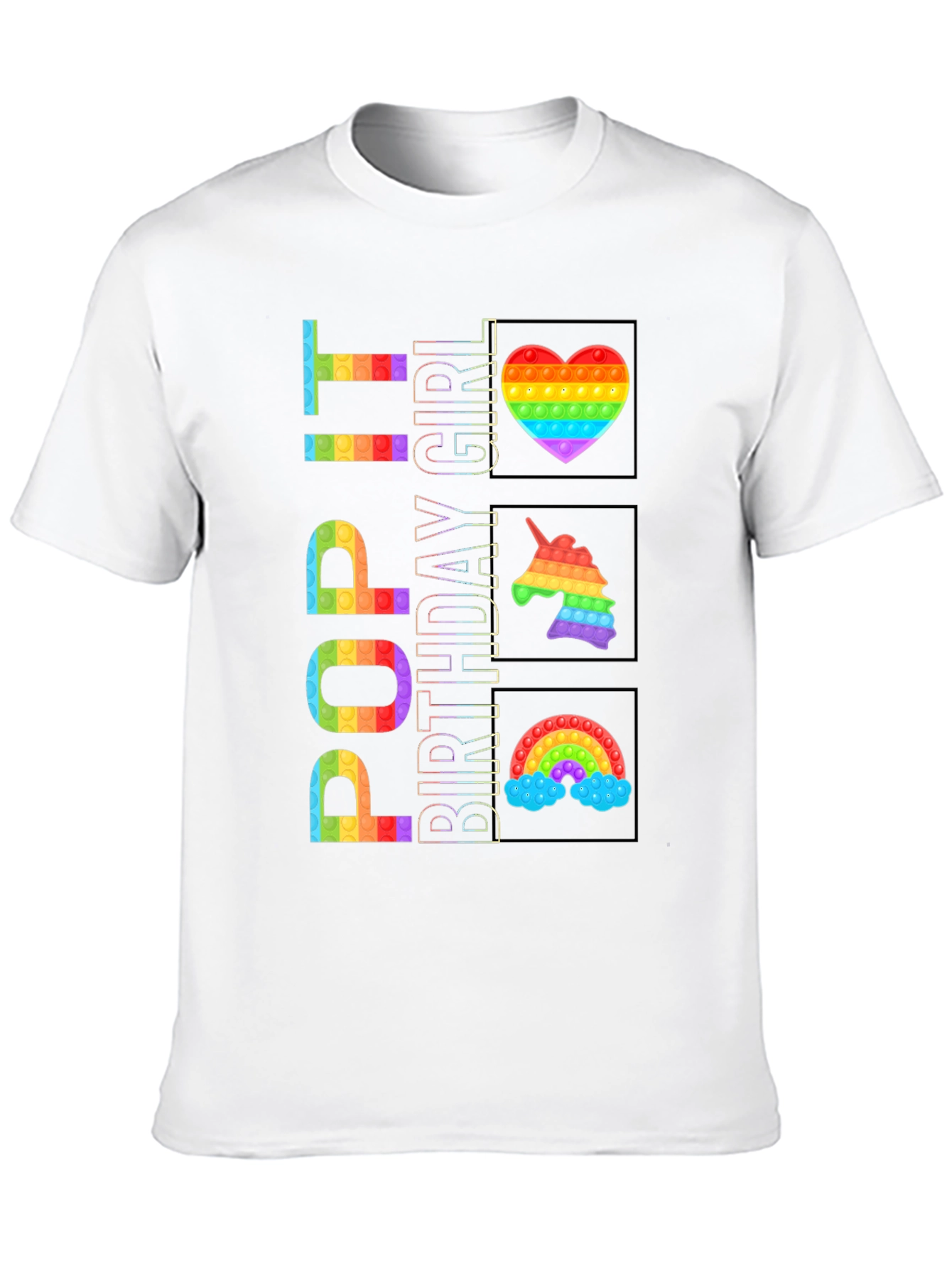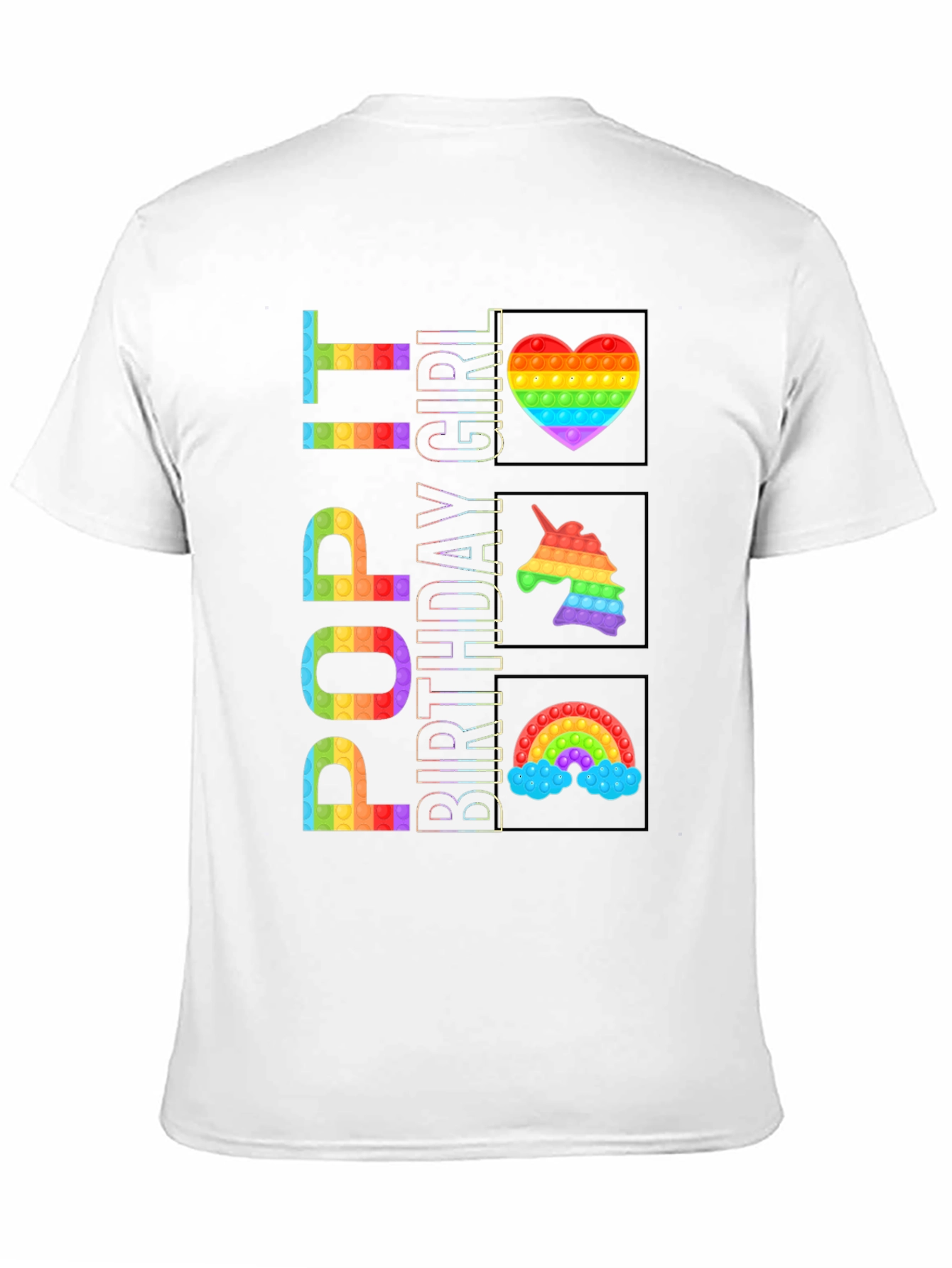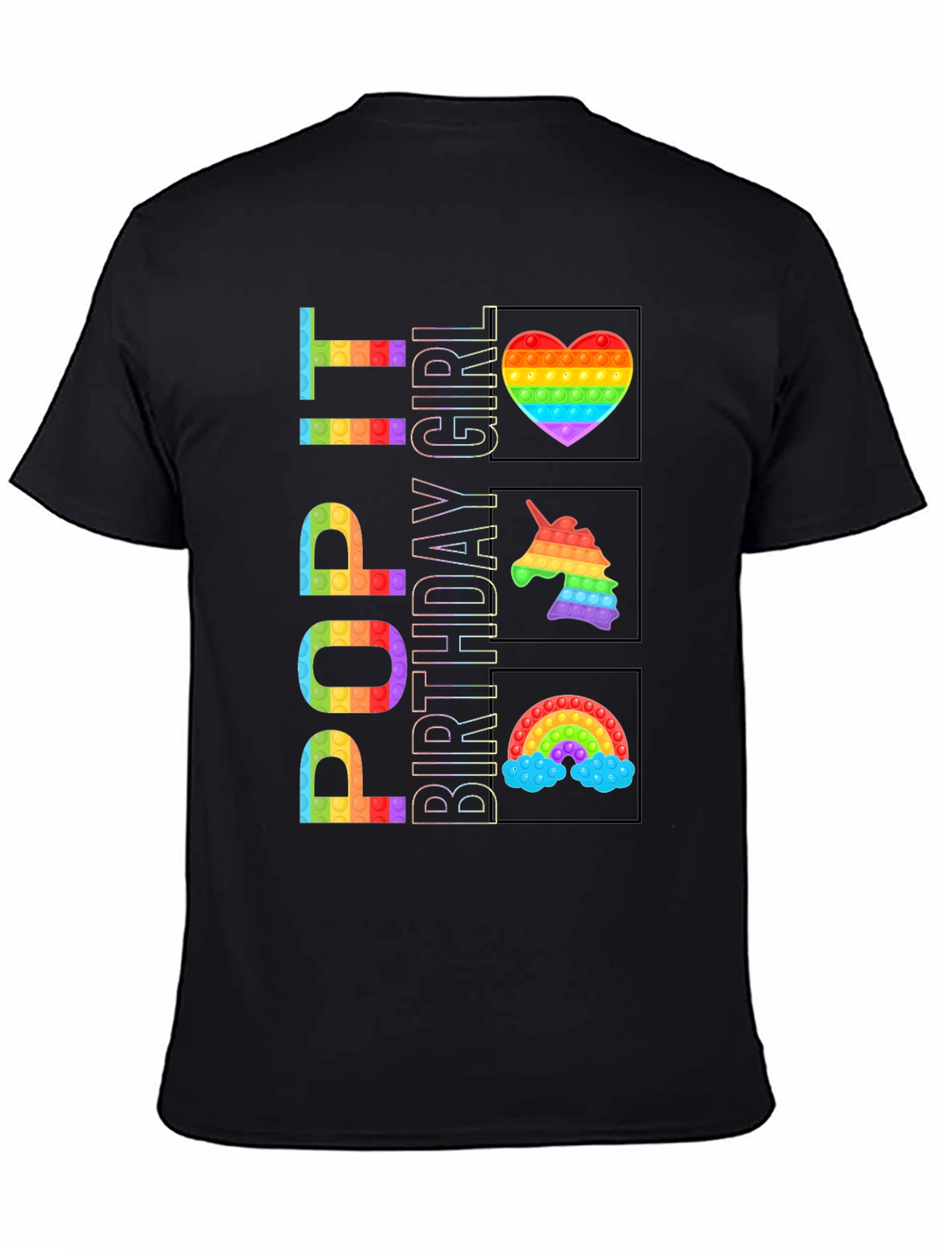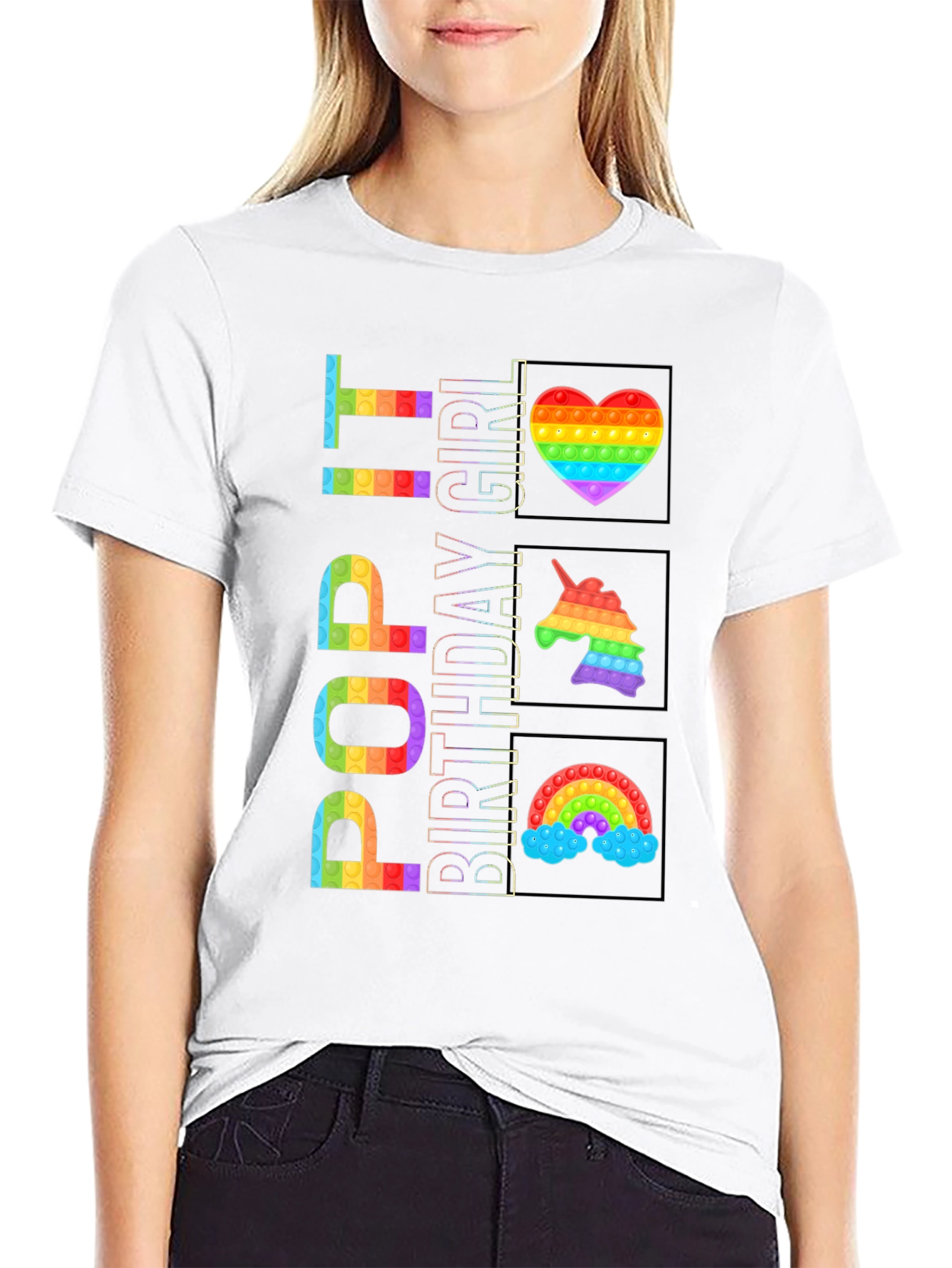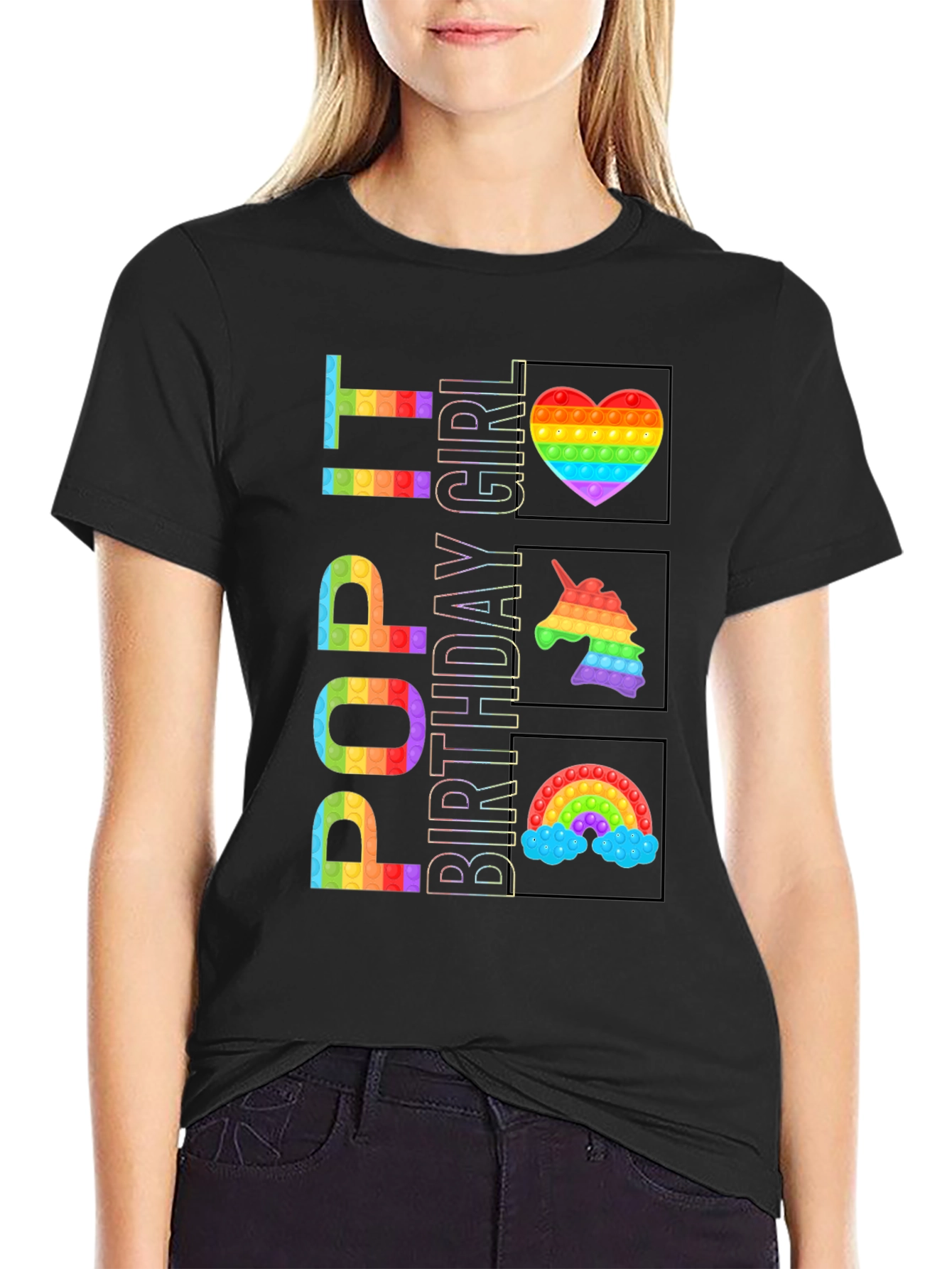 Celebra un cumpleaños lleno de color y diversión con esta original camiseta. Diseñada para las amantes del Pop It, presenta un estampado llamativo con las palabras "Pop It Birthday Girl" dispuestas verticalmente y decoradas con motivos de corazón, unicornio y arcoíris estilo Pop It. Los colores vibrantes del arcoíris hacen de esta camiseta una prenda alegre y juvenil. Ideal para llevar el día de su cumpleaños o para cualquier ocasión especial. Fabricada con materiales de alta calidad para garantizar comodidad y durabilidad. ¡Un regalo perfecto para una niña especial!