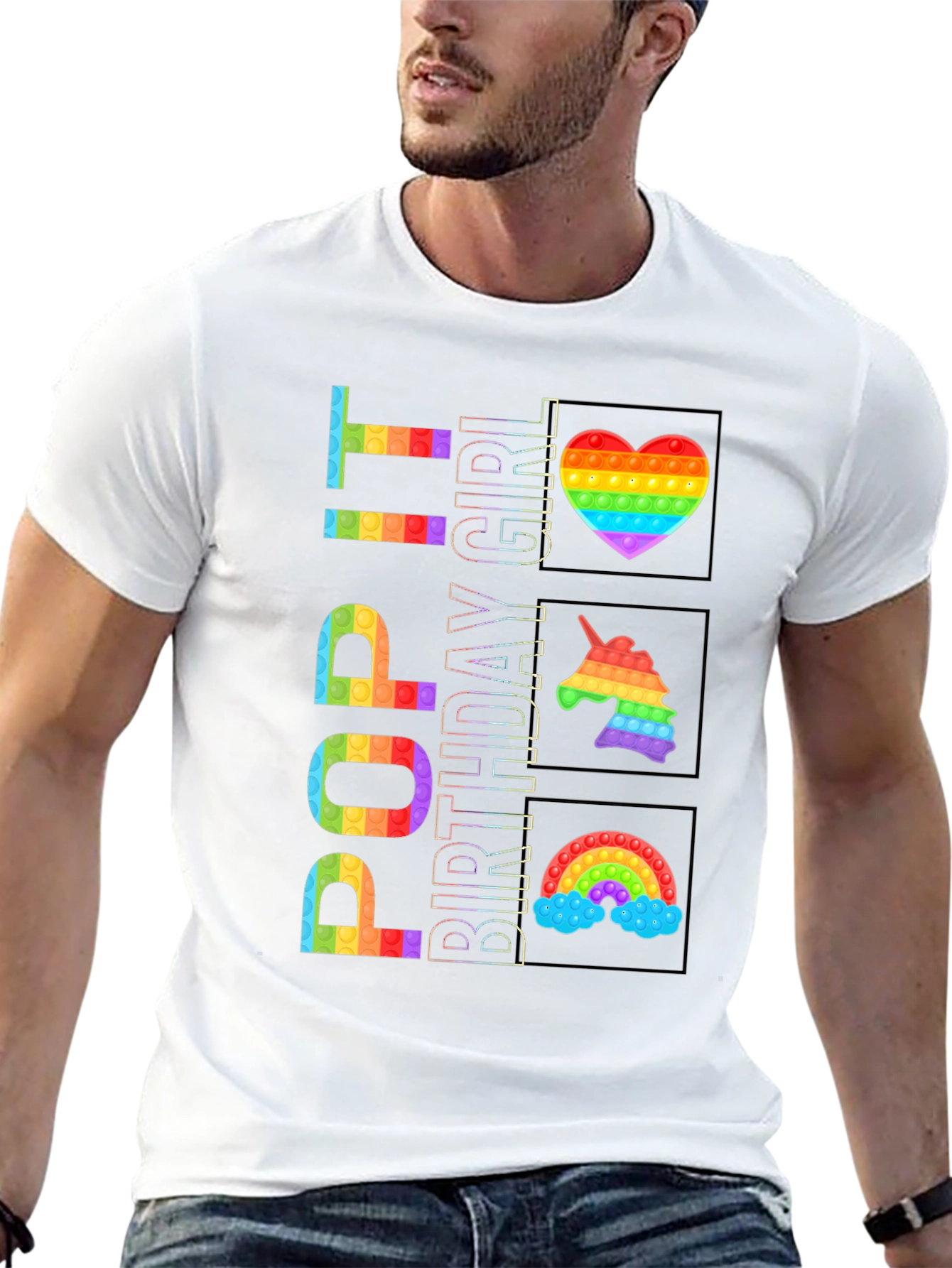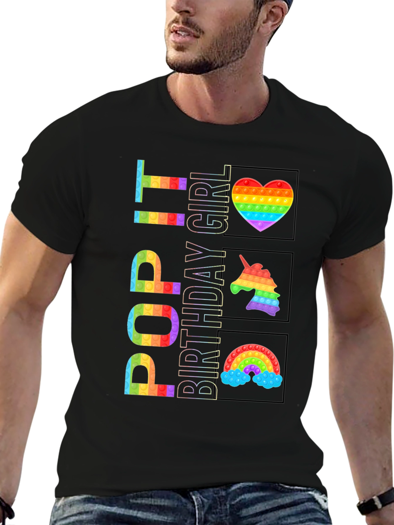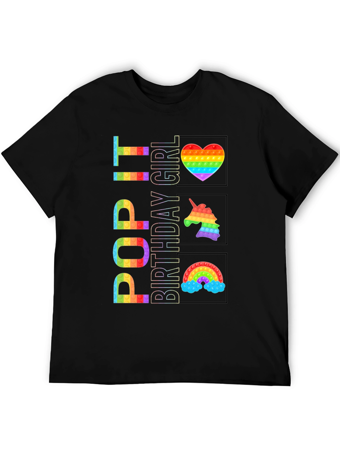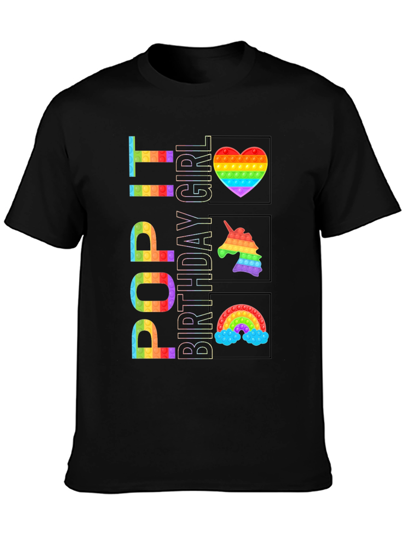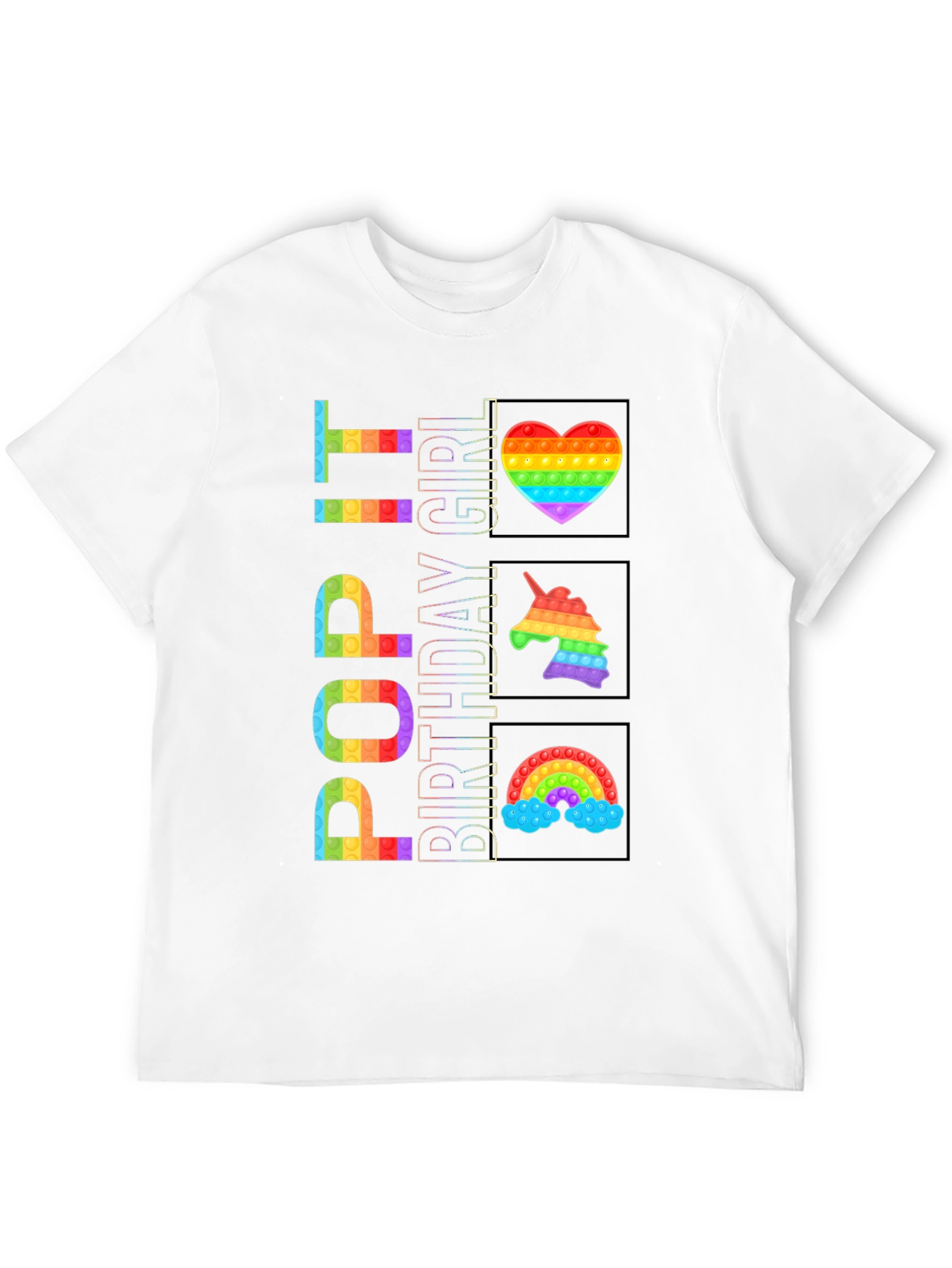 Celebra un cumpleaños lleno de color y diversión con esta original camiseta. Diseñada para las amantes del Pop It, presenta un estampado llamativo con las palabras "Pop It Birthday Girl" dispuestas verticalmente y decoradas con motivos de corazón, unicornio y arcoíris estilo Pop It. Los colores vibrantes del arcoíris hacen de esta camiseta una prenda alegre y juvenil. Ideal para llevar el día de su cumpleaños o para cualquier ocasión especial. Fabricada con materiales de alta calidad para garantizar comodidad y durabilidad. ¡Un regalo perfecto para una niña especial!