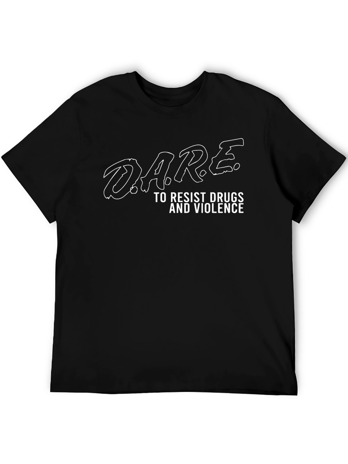 Luce un estilo con conciencia con esta camiseta negra para hombre. Presenta un diseño audaz con el logo icónico de D.A.R.E. y la frase "TO RESIST DRUGS AND VIOLENCE" en color blanco, destacando sobre el fondo negro. Esta camiseta de manga corta y corte clásico está confeccionada en un material que parece de algodón suave, ofreciendo comodidad y durabilidad. Perfecta para expresar tu apoyo a una causa importante, ya sea en eventos comunitarios, reuniones informales o simplemente en tu día a día. Combínala con jeans o pantalones casuales para un look relajado con un mensaje potente.