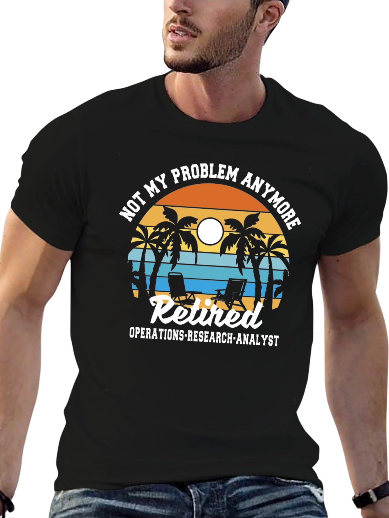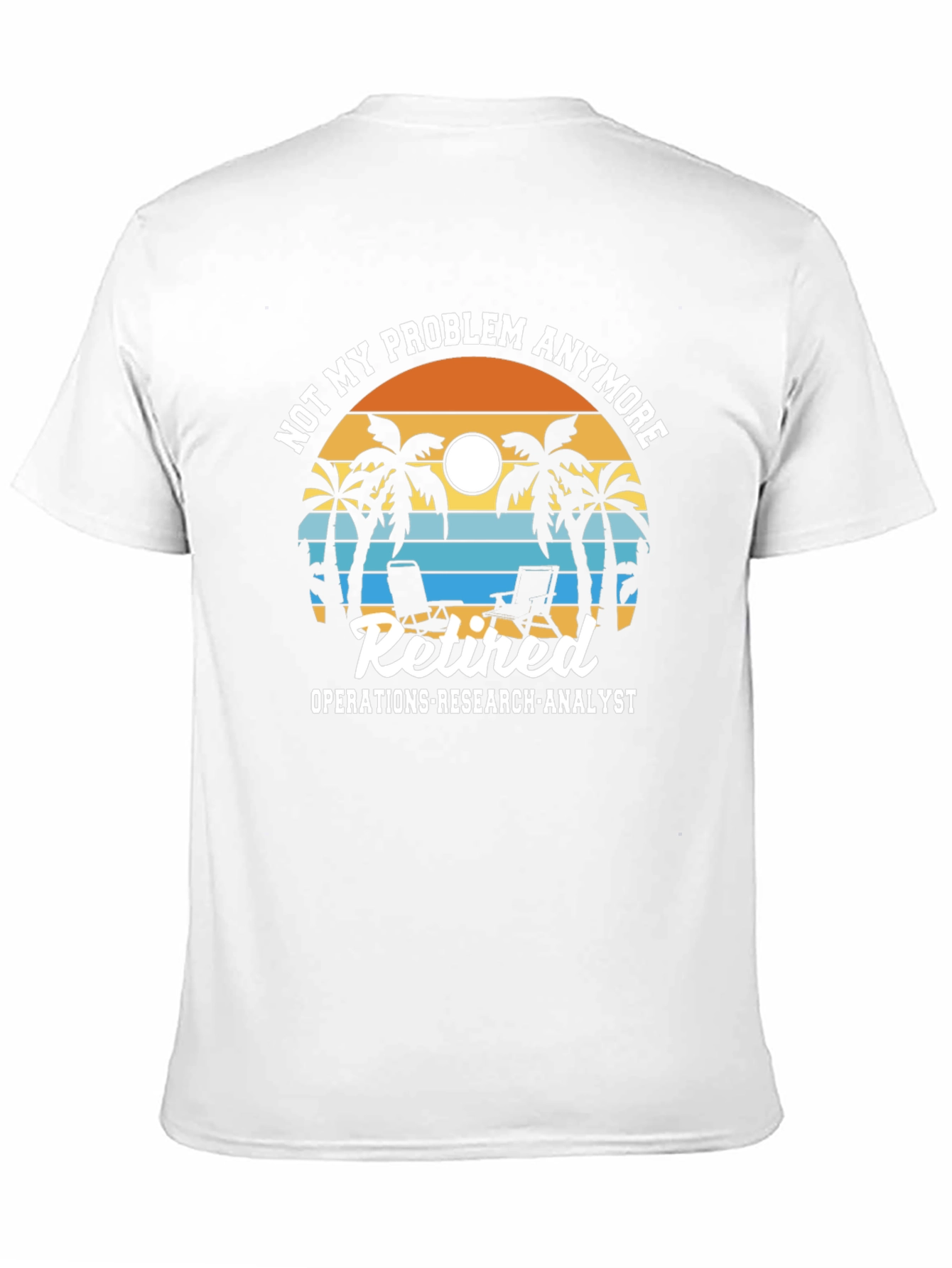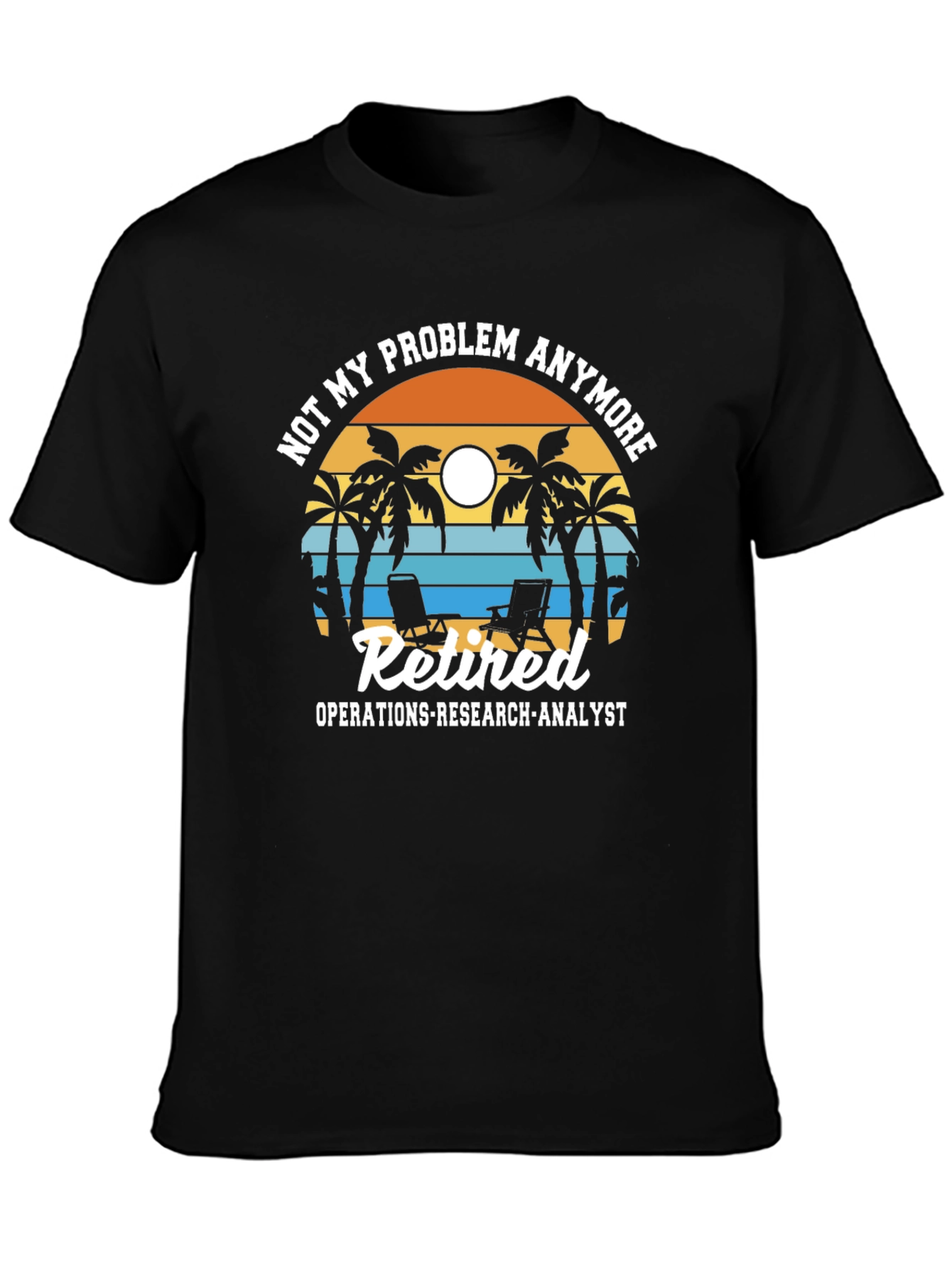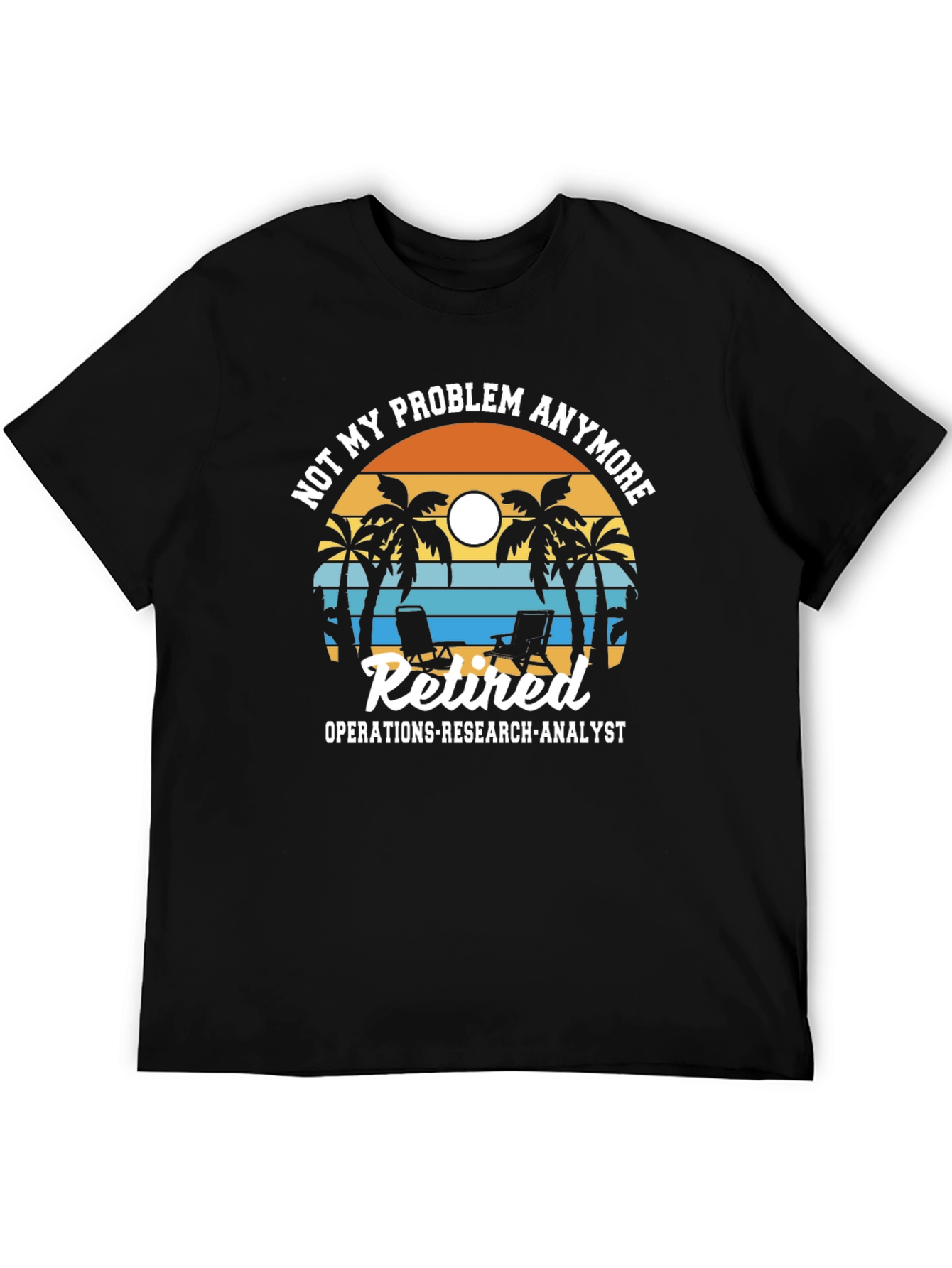 ¡Celebra la jubilación con estilo! Esta camiseta negra presenta un diseño divertido y relajante con palmeras, sillas de playa y una puesta de sol. El texto "Not my problem anymore" y "Retired Operations-Research-Analyst" indican que estás listo para disfrutar de tu tiempo libre. Perfecta para usar en la playa, en casa o en cualquier lugar donde quieras mostrar tu espíritu jubilado. Confeccionada con materiales cómodos y duraderos, esta camiseta se convertirá en tu favorita. ¡Consigue la tuya hoy y relájate!