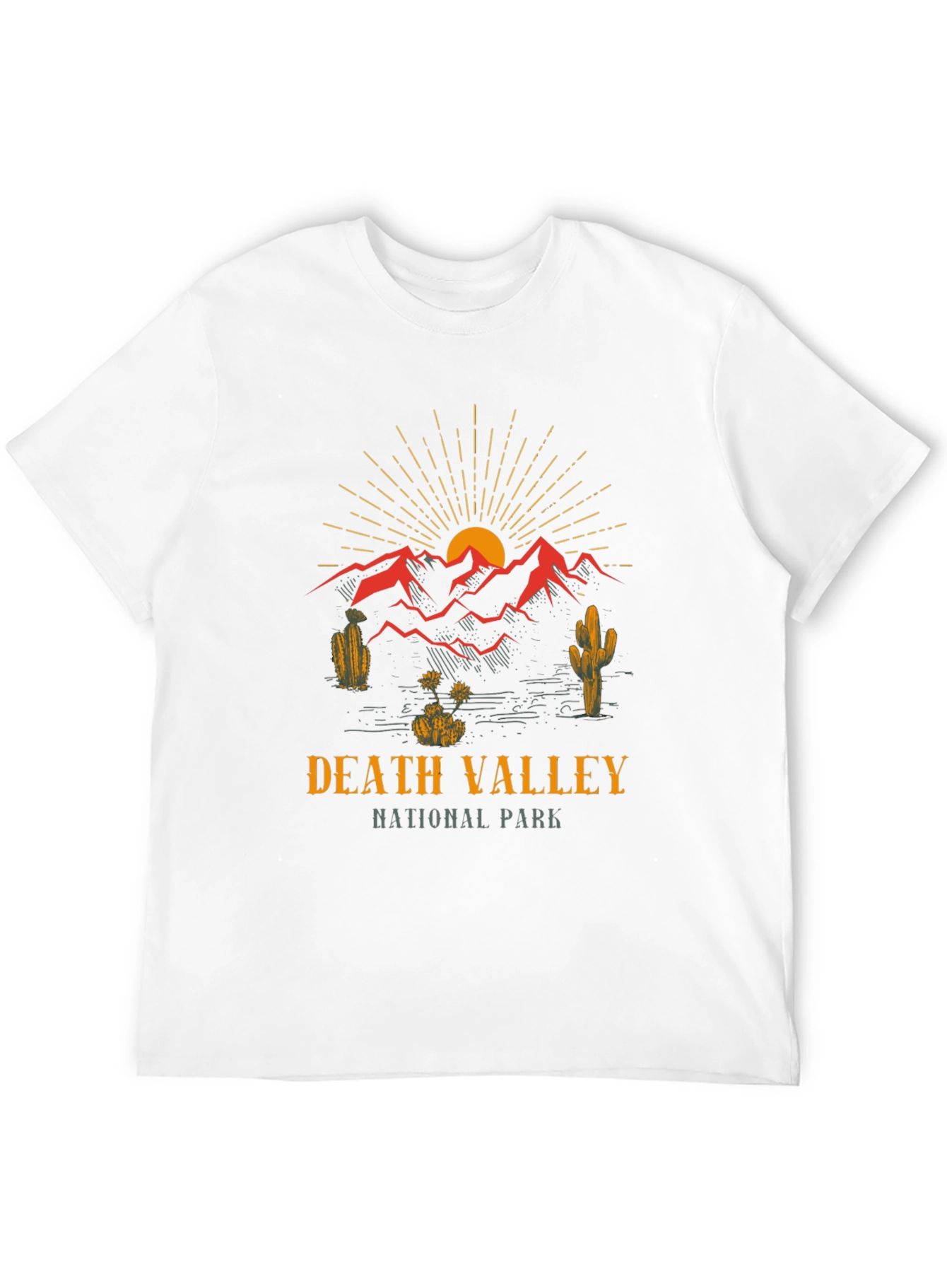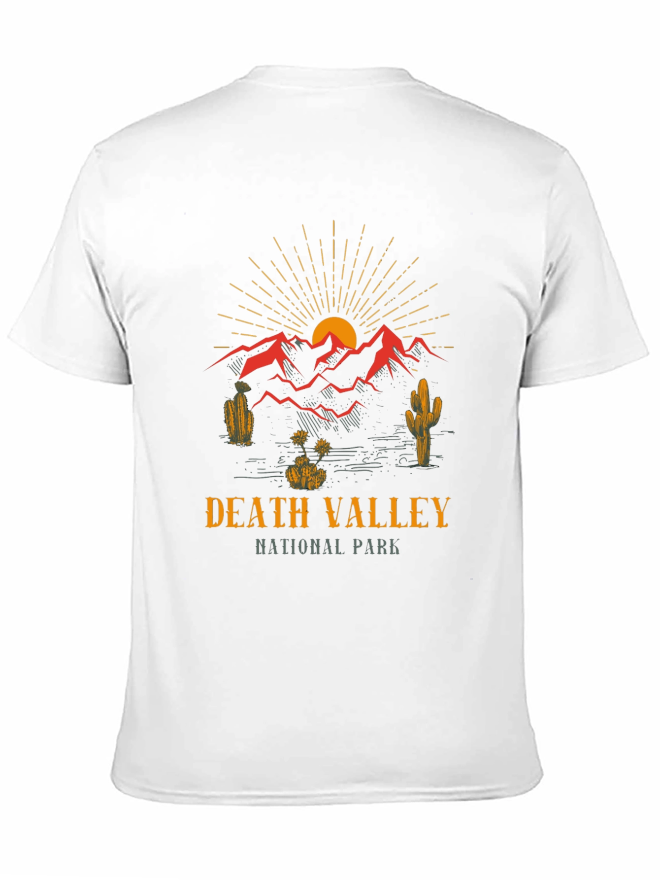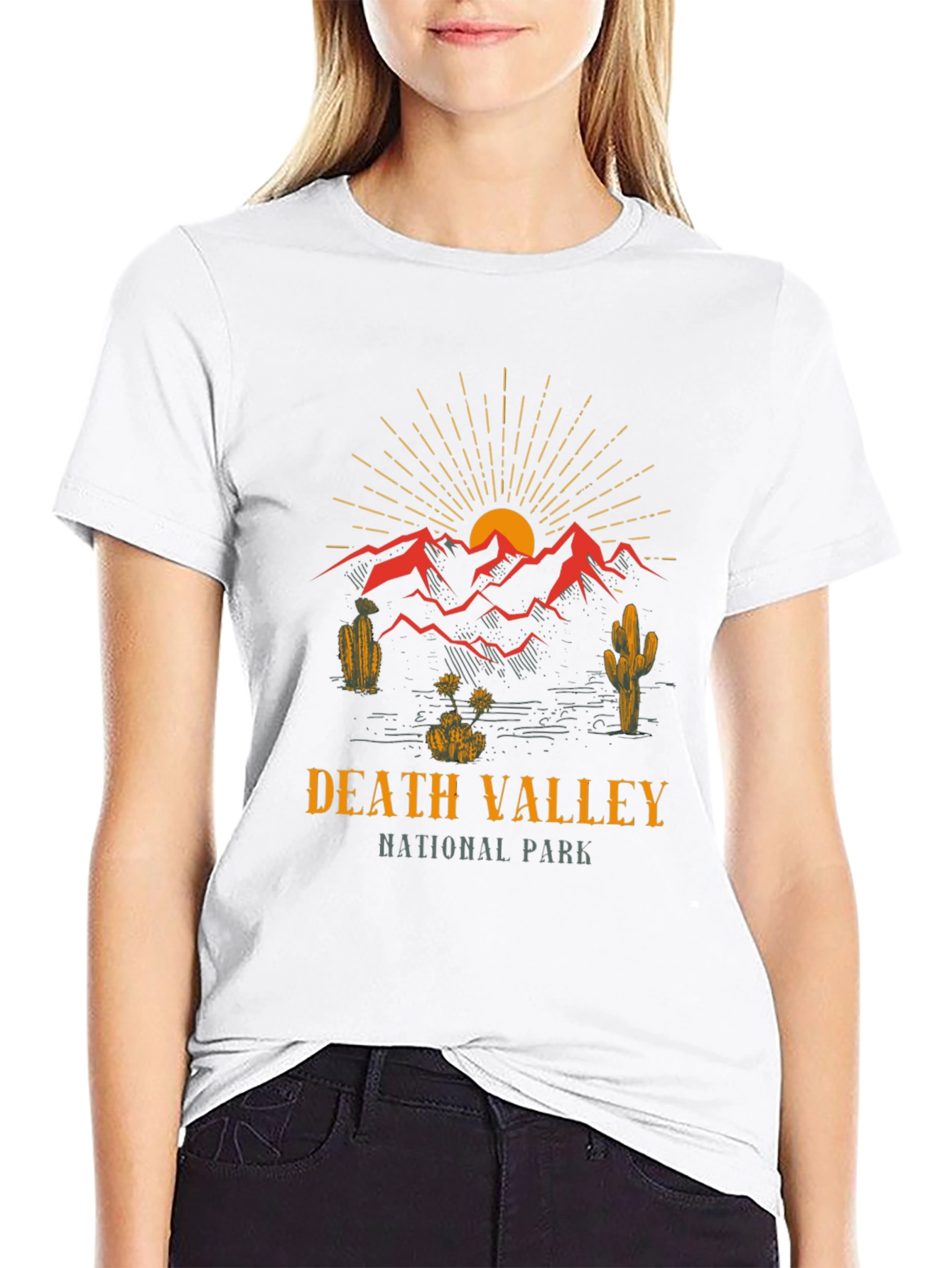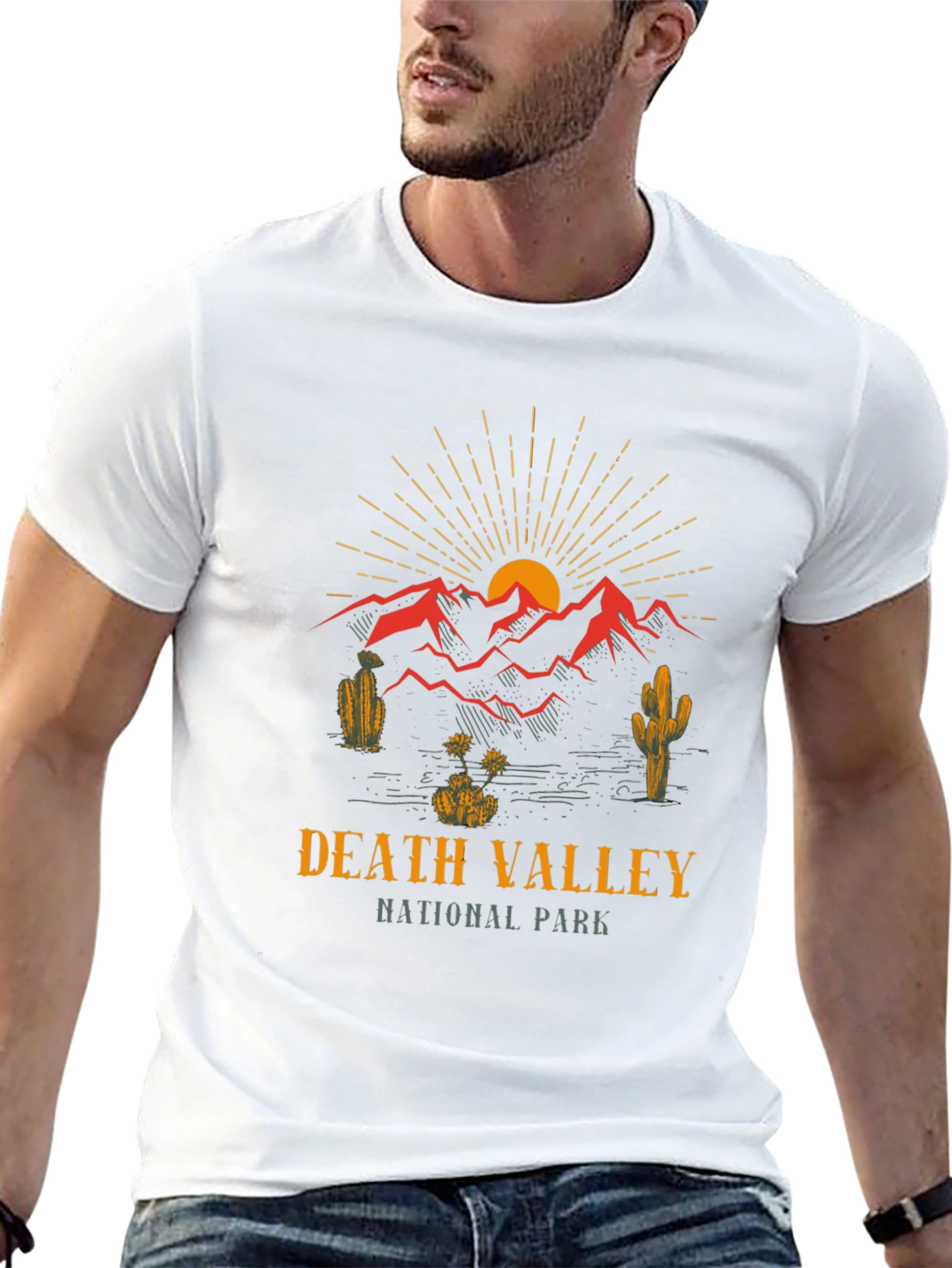 Luce esta camiseta negra con un diseño vibrante del Parque Nacional Death Valley. Presenta un paisaje desértico estilizado con montañas rojizas, cactus y un sol radiante, todo impreso con detalles nítidos. El texto "DEATH VALLEY NATIONAL PARK" resalta en color naranja, evocando la belleza árida y única del parque. Perfecta para los amantes de la naturaleza, los aventureros y aquellos que aprecian los diseños originales. Esta camiseta es ideal para el uso diario, excursiones y como un recuerdo especial de este impresionante lugar. Su diseño llamativo y cómodo la convierte en una excelente opción para expresar tu pasión por los paisajes desérticos.