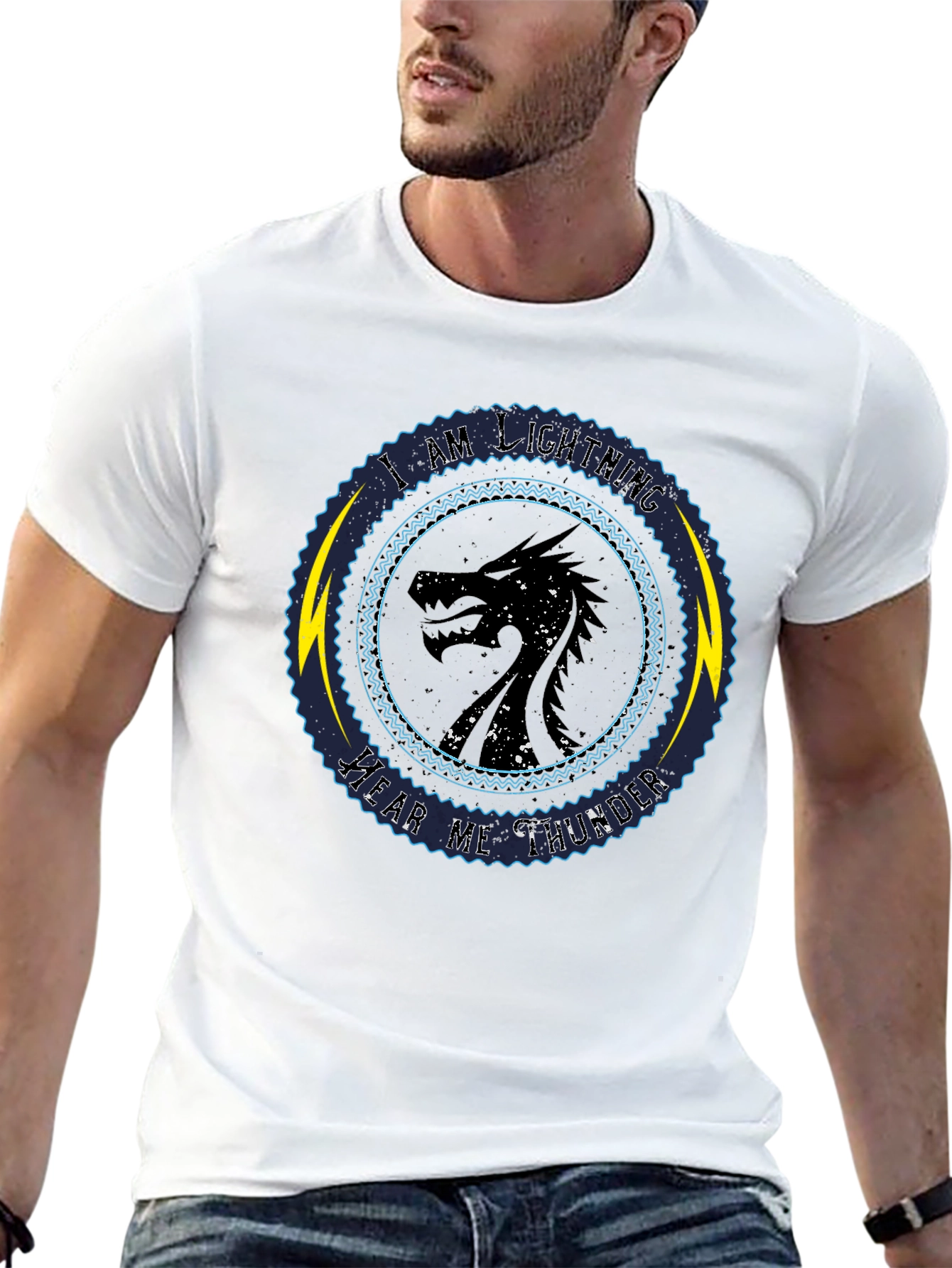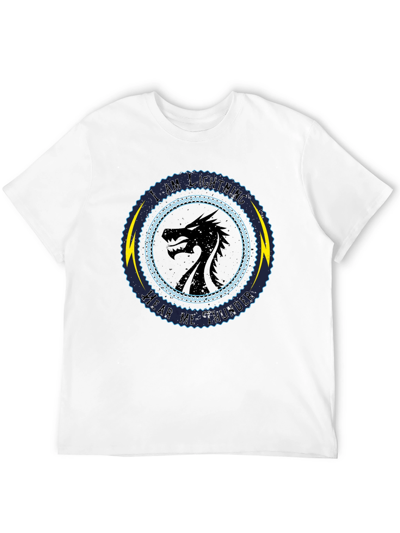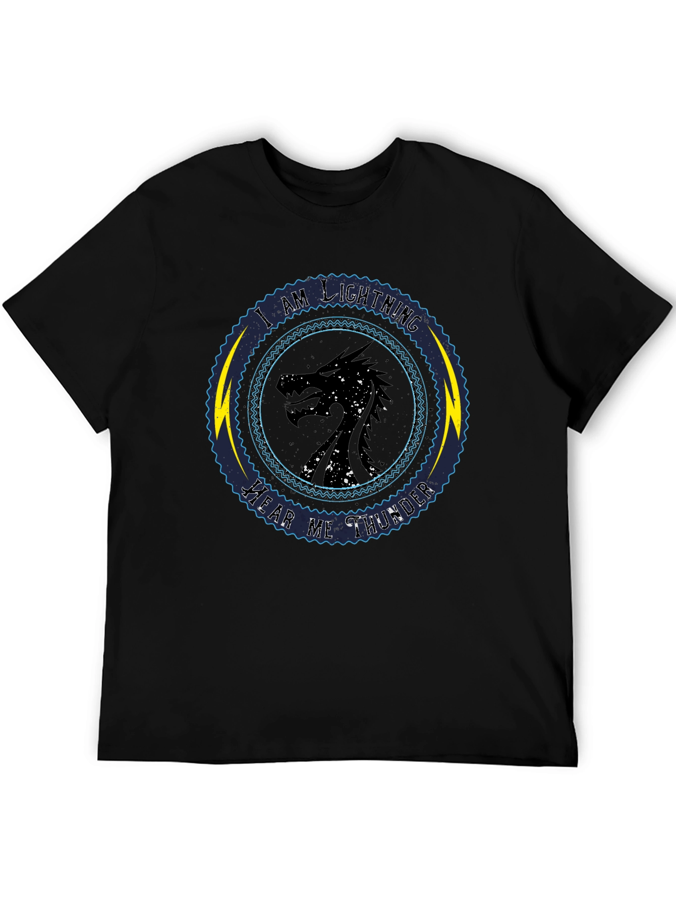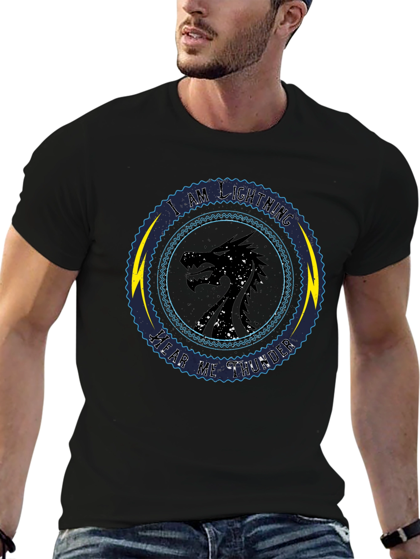 Luce esta llamativa camiseta negra con un diseño audaz. Presenta un dragón estilizado en un círculo con las palabras "Soy Relámpago, Oye mi Trueno", ideal para quienes buscan expresar su individualidad con un toque de rebeldía y originalidad. El diseño incluye detalles de rayos que aportan dinamismo y energía. Perfecta para uso casual, conciertos o simplemente para destacar entre la multitud. Su corte clásico y material cómodo la hacen ideal para el uso diario. Un imprescindible para los amantes de los dragones y la moda alternativa.