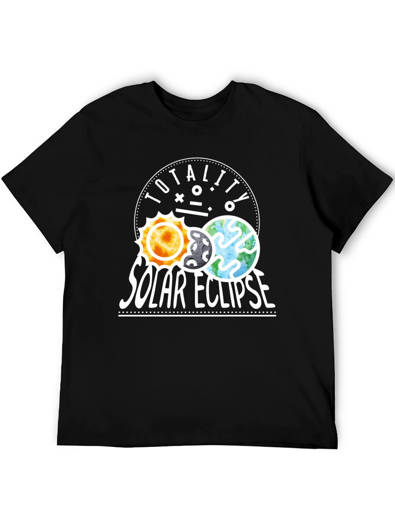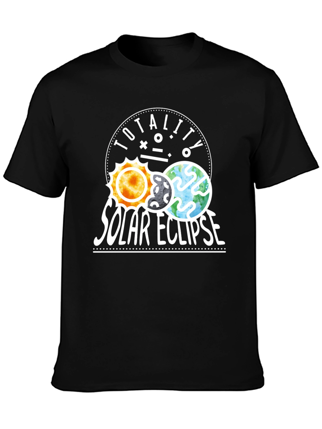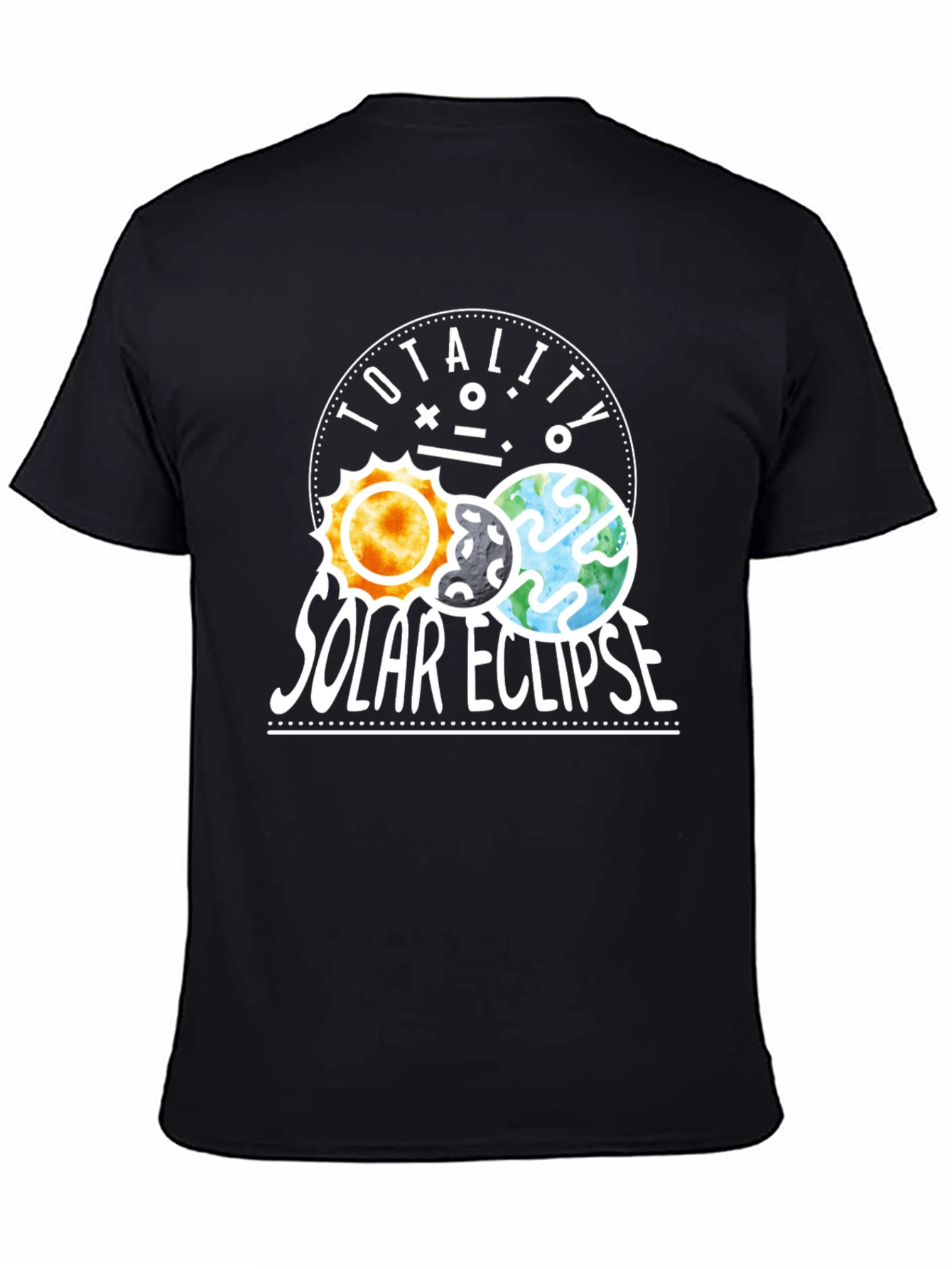 Luce esta original camiseta negra con un diseño llamativo del eclipse solar. El estampado muestra el sol, la luna y la tierra alineados, acompañados del texto "TOTALITY SOLAR ECLIPSE" en letras blancas. Ideal para los amantes de la astronomía, los eclipses y los fenómenos naturales. Esta prenda es perfecta para usar en eventos astronómicos, salidas casuales o como un regalo único y significativo para cualquier entusiasta del espacio. Su diseño moderno y atractivo te hará destacar entre la multitud. ¡No te pierdas la oportunidad de llevar contigo un pedazo del universo!