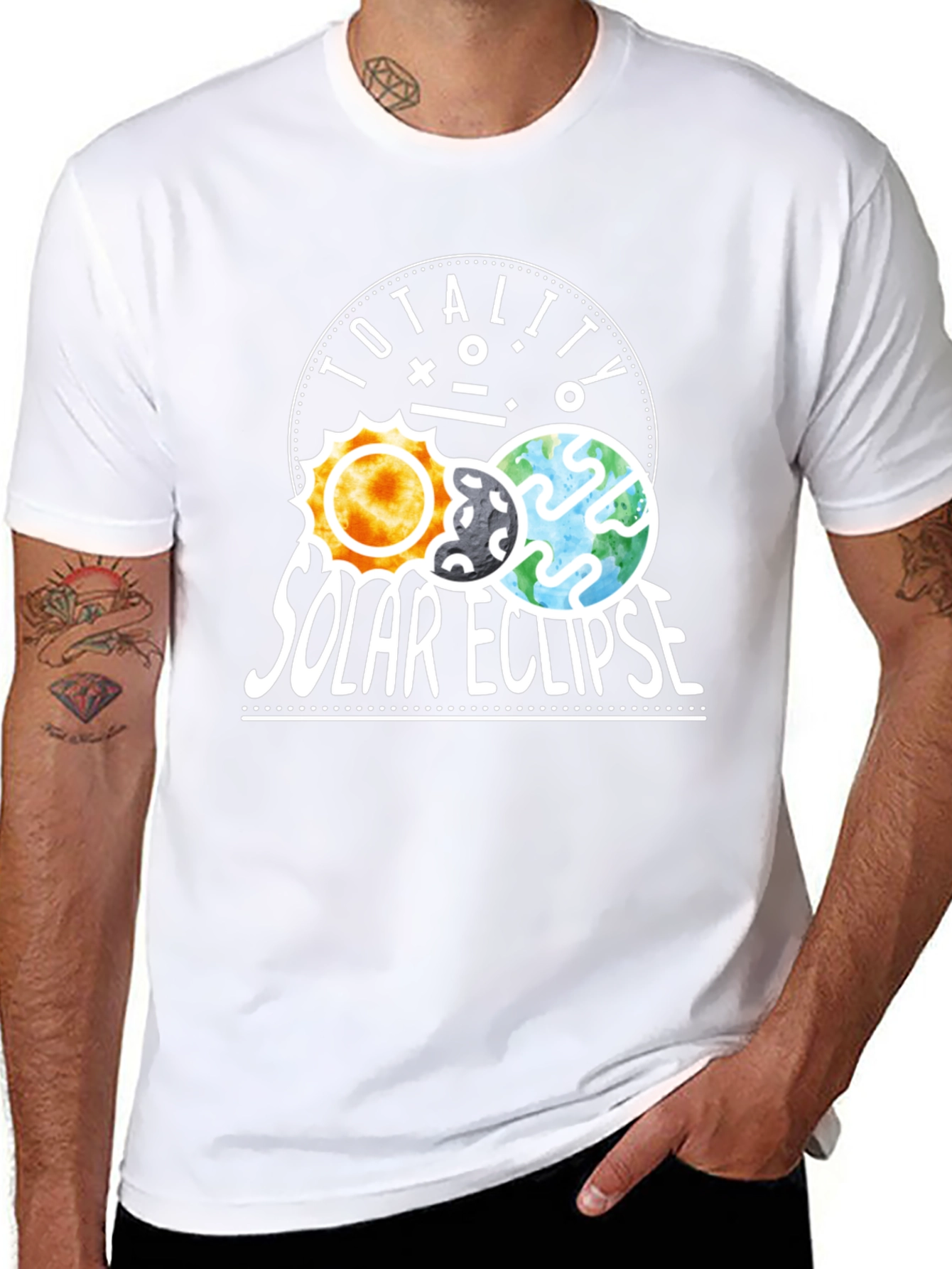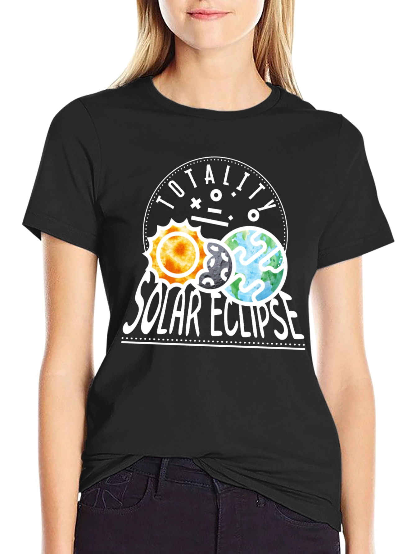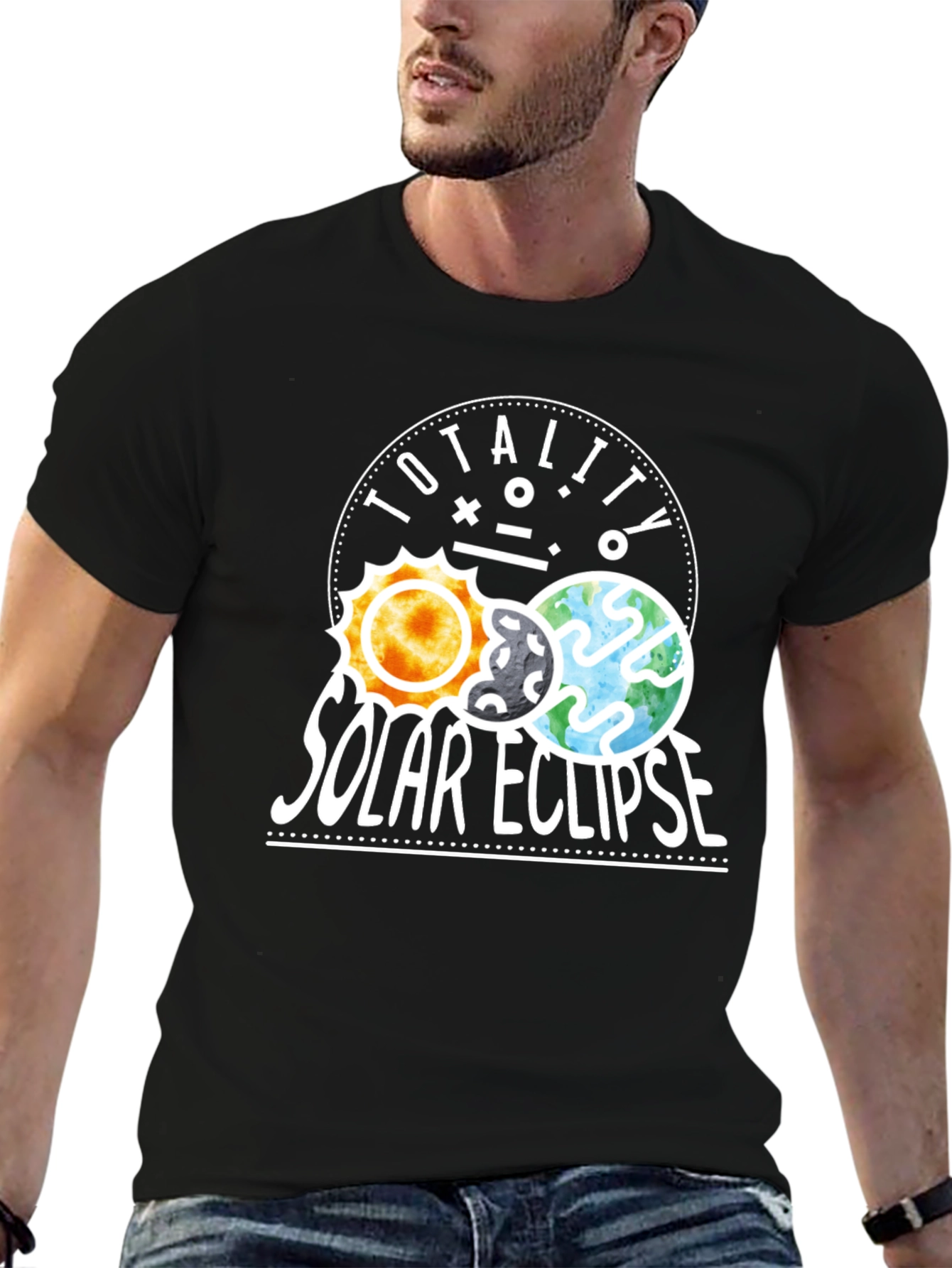 Luce esta original camiseta negra con un diseño llamativo del eclipse solar. El estampado muestra el sol, la luna y la tierra alineados, acompañados del texto "TOTALITY SOLAR ECLIPSE" en letras blancas. Ideal para los amantes de la astronomía, los eclipses y los fenómenos naturales. Esta prenda es perfecta para usar en eventos astronómicos, salidas casuales o como un regalo único y significativo para cualquier entusiasta del espacio. Su diseño moderno y atractivo te hará destacar entre la multitud. ¡No te pierdas la oportunidad de llevar contigo un pedazo del universo!