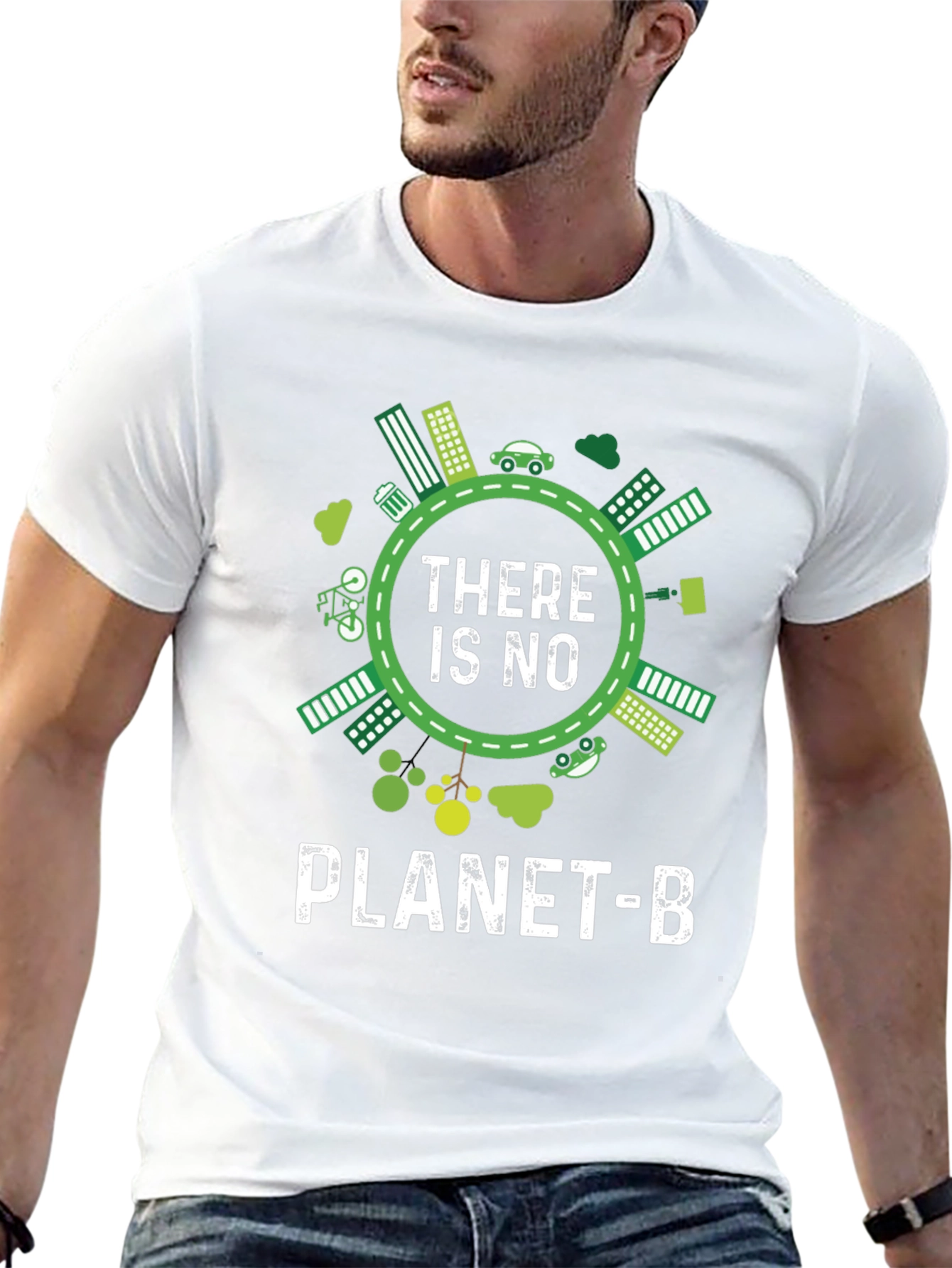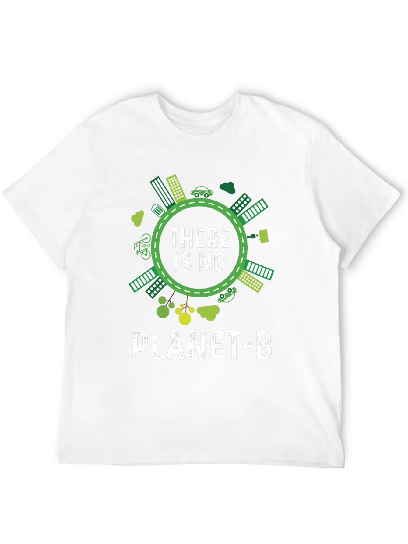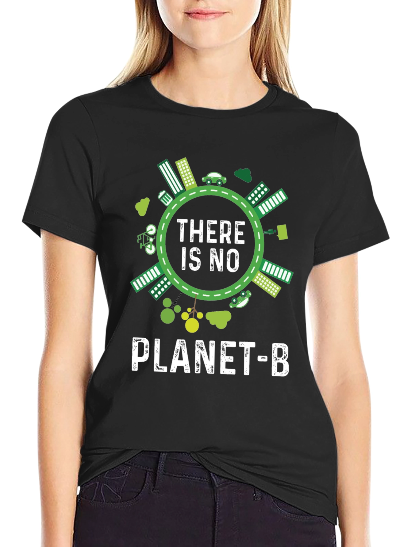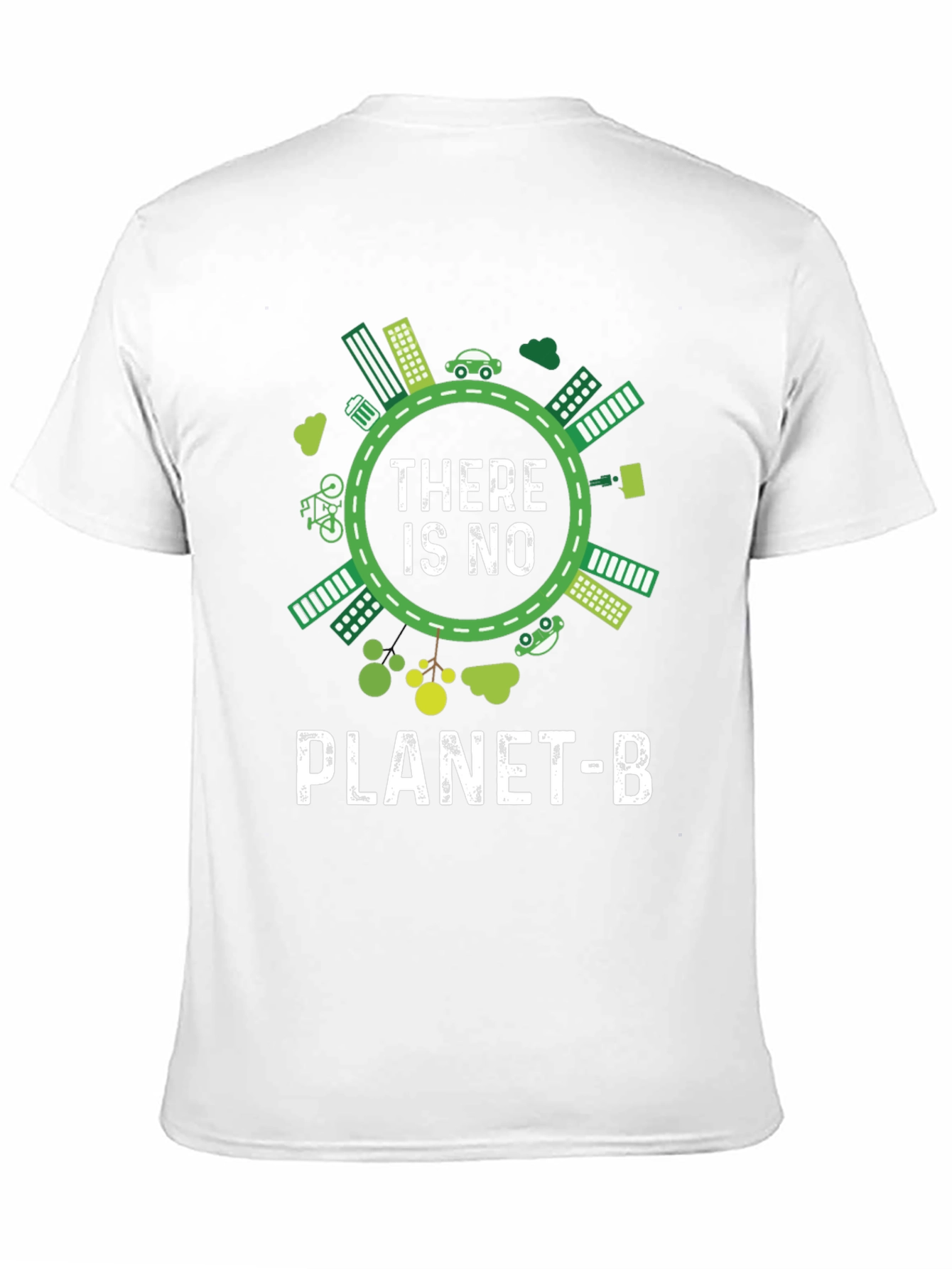 Luce esta llamativa camiseta negra con un diseño impactante que promueve la conciencia ambiental. El diseño presenta una ilustración circular con elementos ecológicos como edificios verdes, coches eléctricos y vegetación, rodeando el mensaje 'THERE IS NO PLANET-B' en letras blancas. Perfecta para expresar tu compromiso con el medio ambiente con estilo. Ideal para llevar en eventos ecológicos, manifestaciones o simplemente para el día a día, esta camiseta es una declaración de principios y una invitación a la reflexión sobre nuestro planeta. Fabricada con materiales suaves y cómodos, te asegura un ajuste perfecto y durabilidad.
