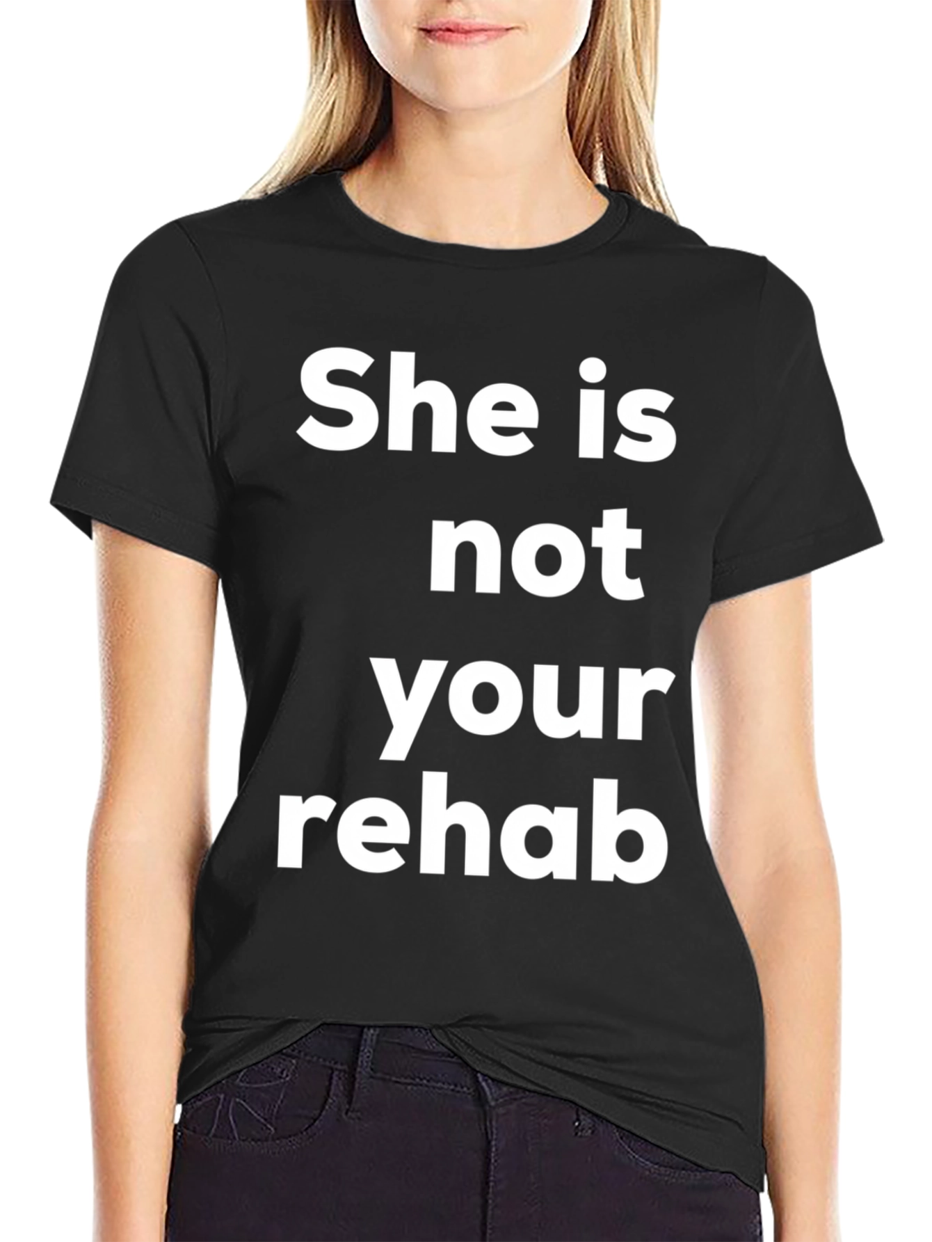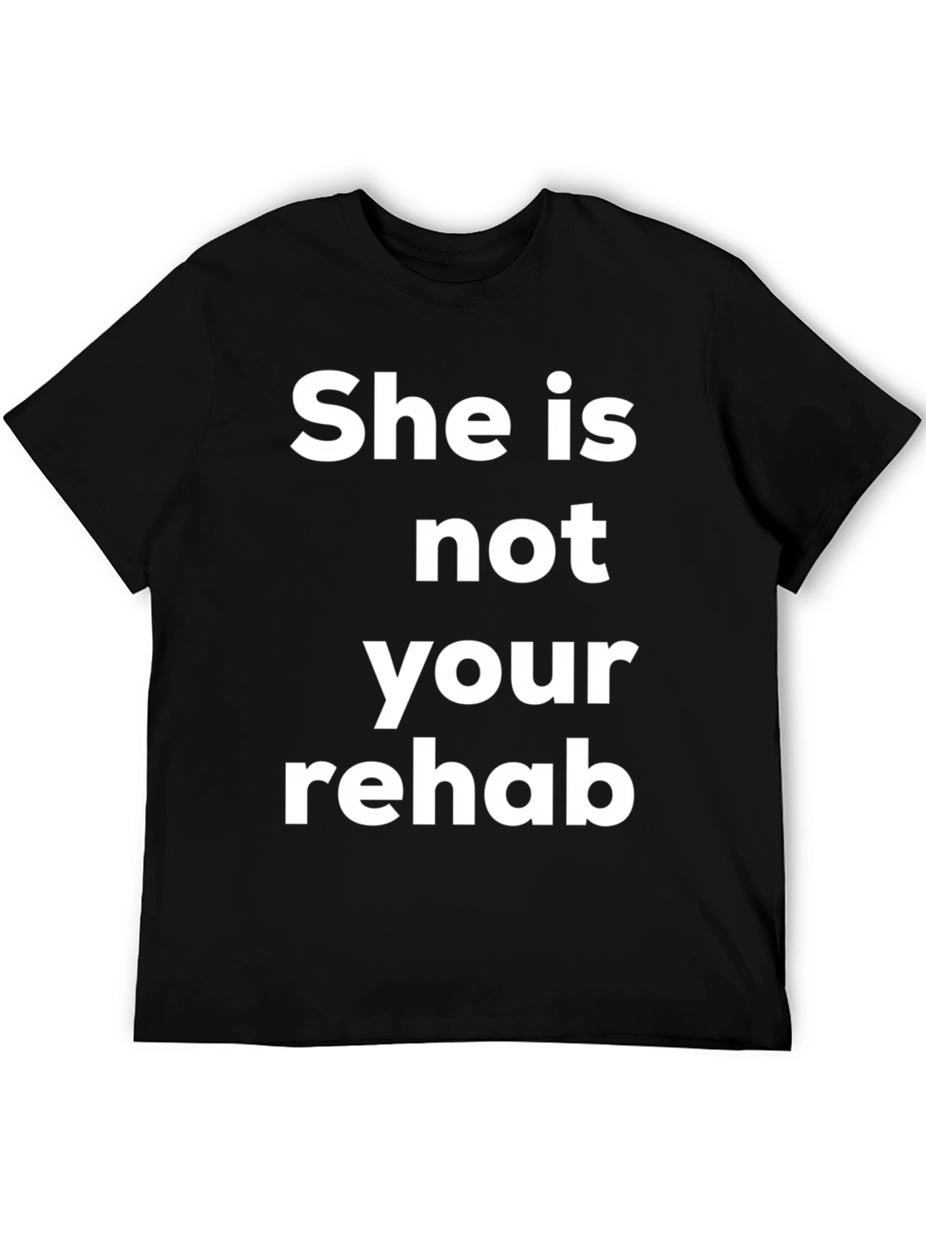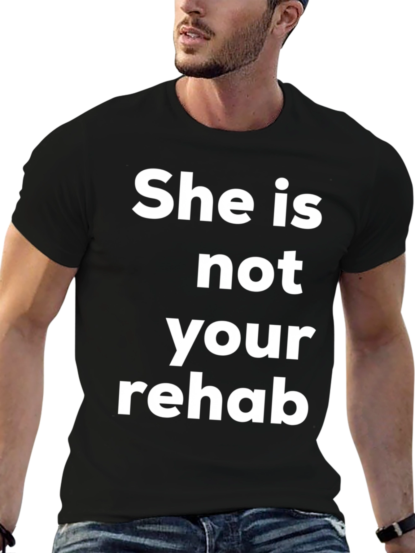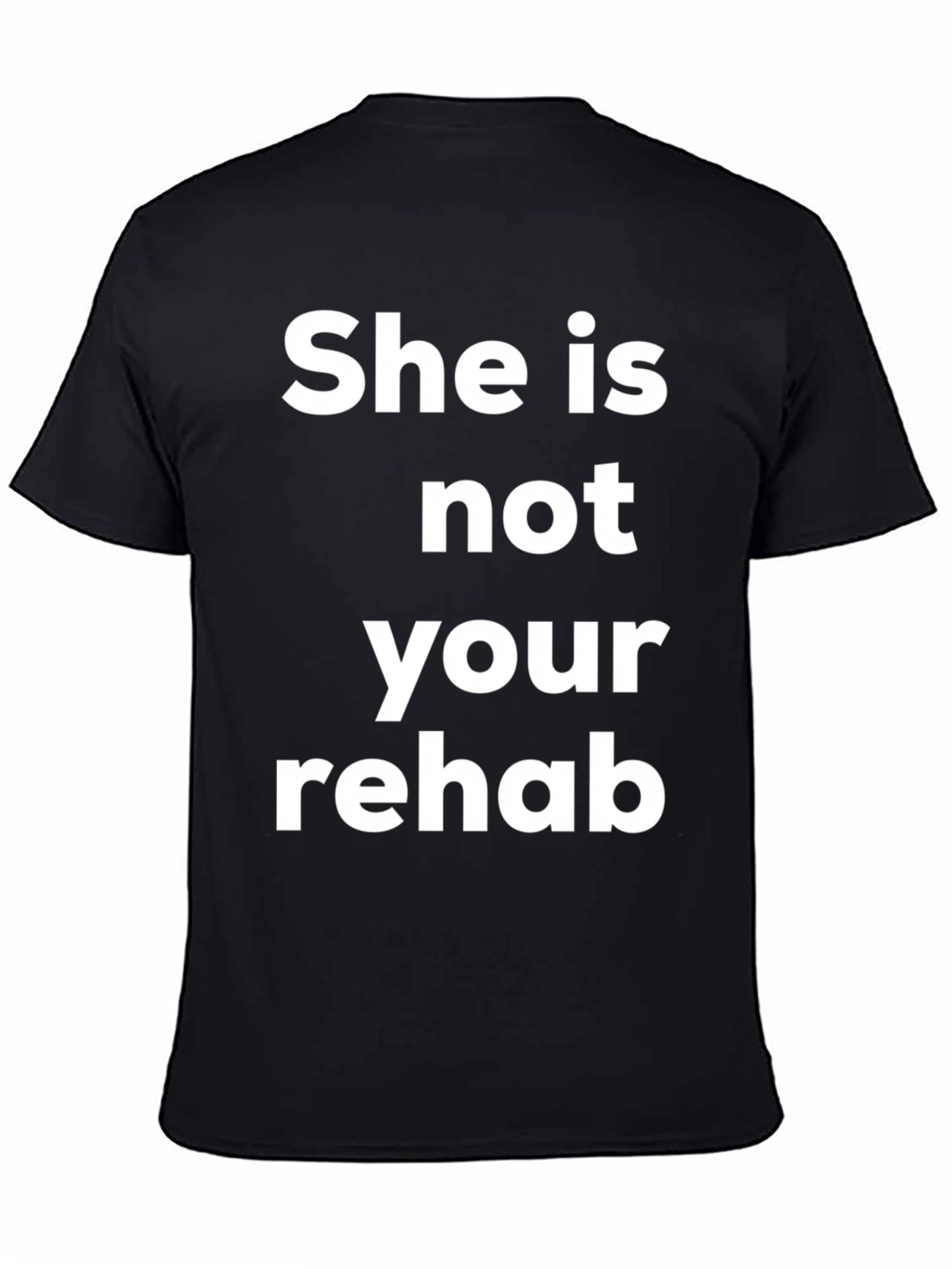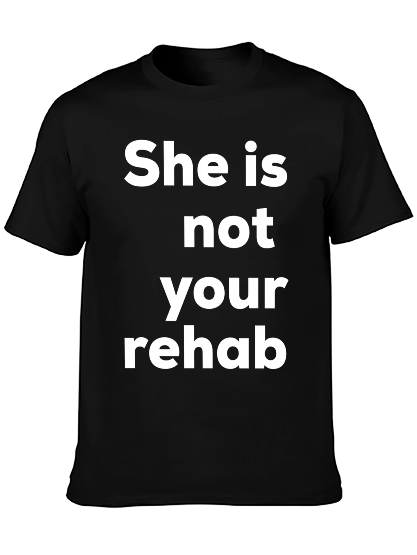 Luce esta camiseta negra de corte clásico con un mensaje contundente y llamativo en color blanco: "Ella no es tu rehabilitación". Fabricada en un tejido suave y cómodo, ideal para el uso diario. Perfecta para expresar tu opinión con estilo y marcar la diferencia. Úsala para salir con amigos, en eventos informales o simplemente para relajarte en casa. Esta camiseta es una declaración de principios, cómoda y con un diseño que no pasa desapercibido.