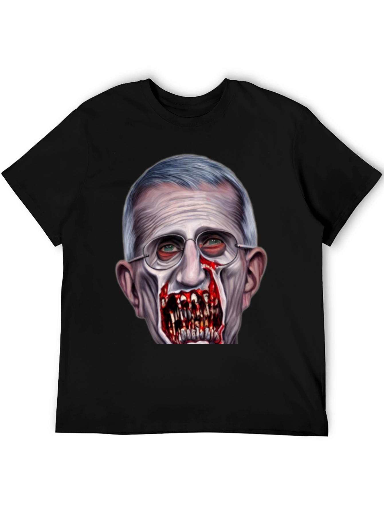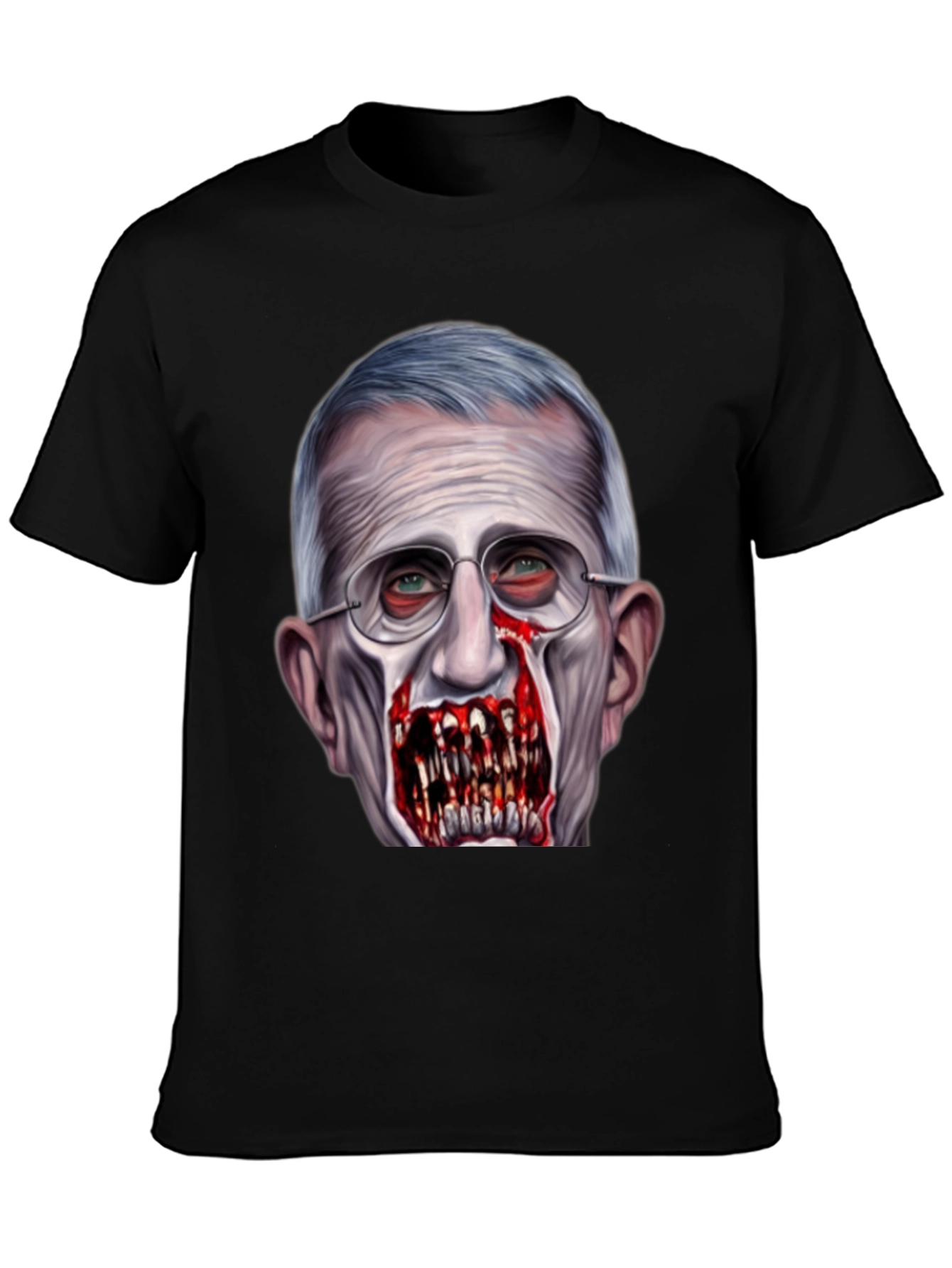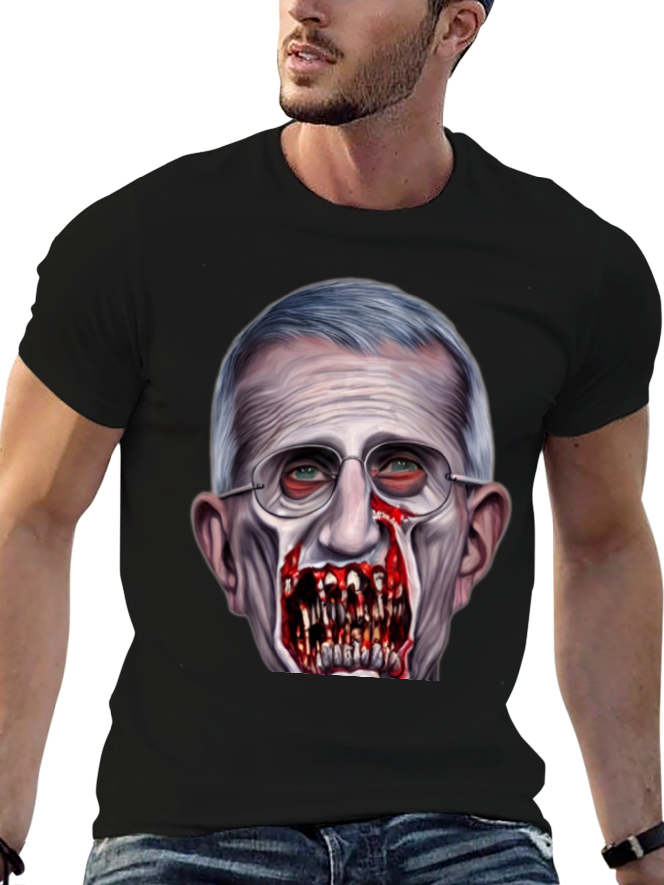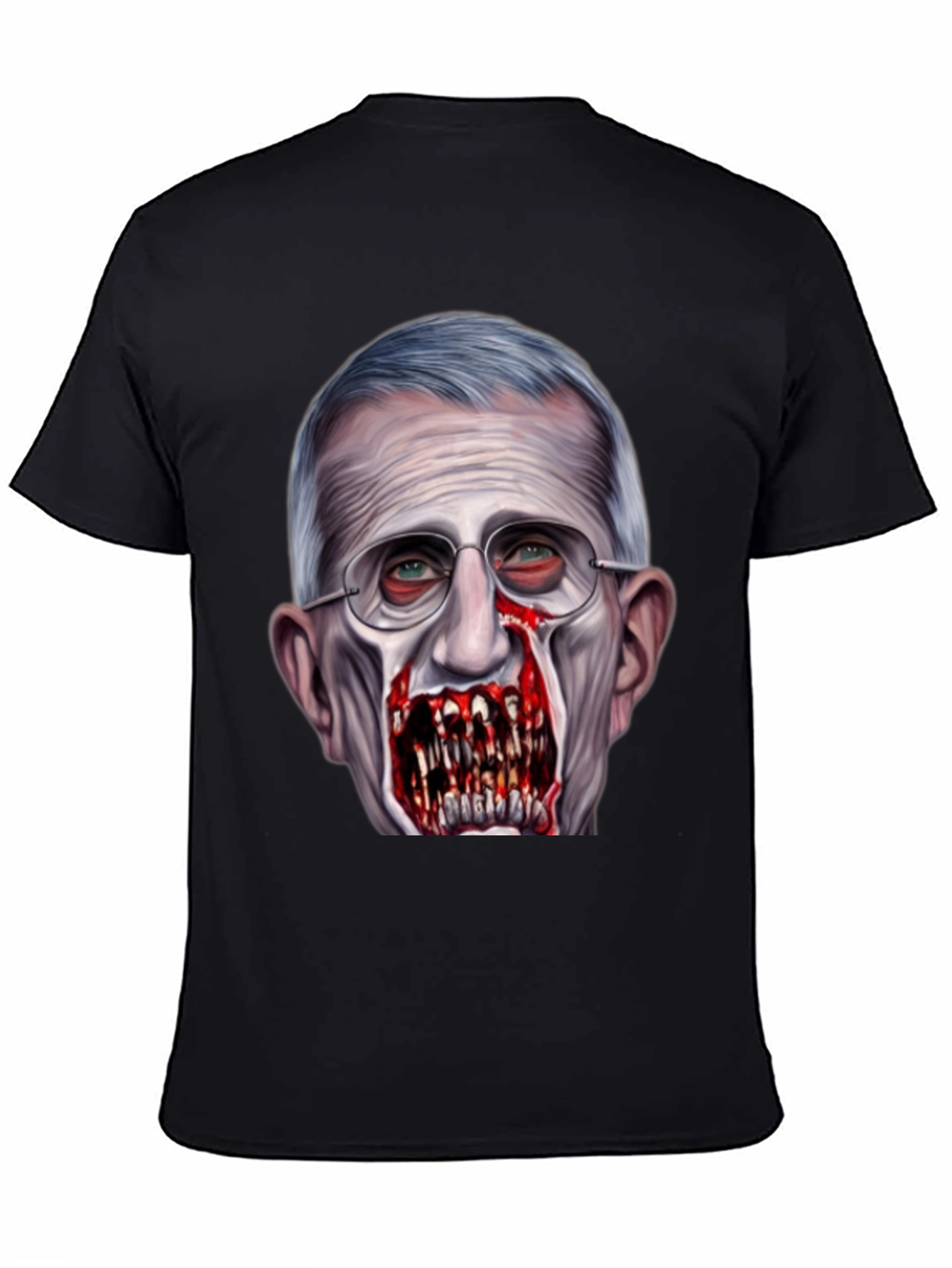 Luce esta camiseta negra con un diseño impactante de Anthony Fauci transformado en zombi. La impresión de alta calidad captura detalles escalofriantes, desde los ojos inyectados en sangre hasta los dientes afilados y sangrientos. Perfecta para aquellos con un sentido del humor audaz y un gusto por lo inusual. Confeccionada con materiales cómodos y duraderos, esta camiseta es ideal para destacar en eventos, fiestas temáticas o simplemente para expresar tu estilo único. ¡Atrévete a llevar un diseño que no pasará desapercibido!