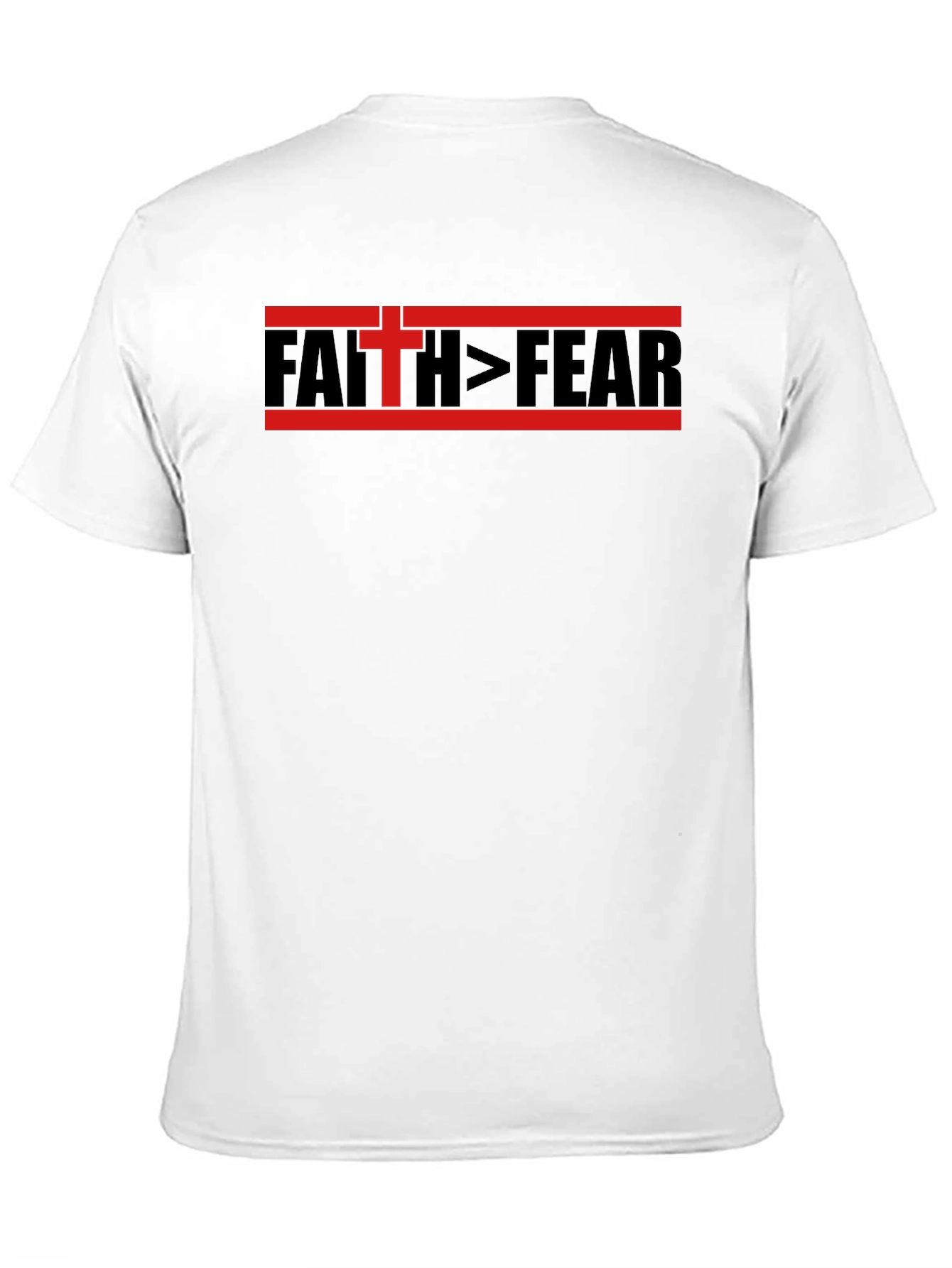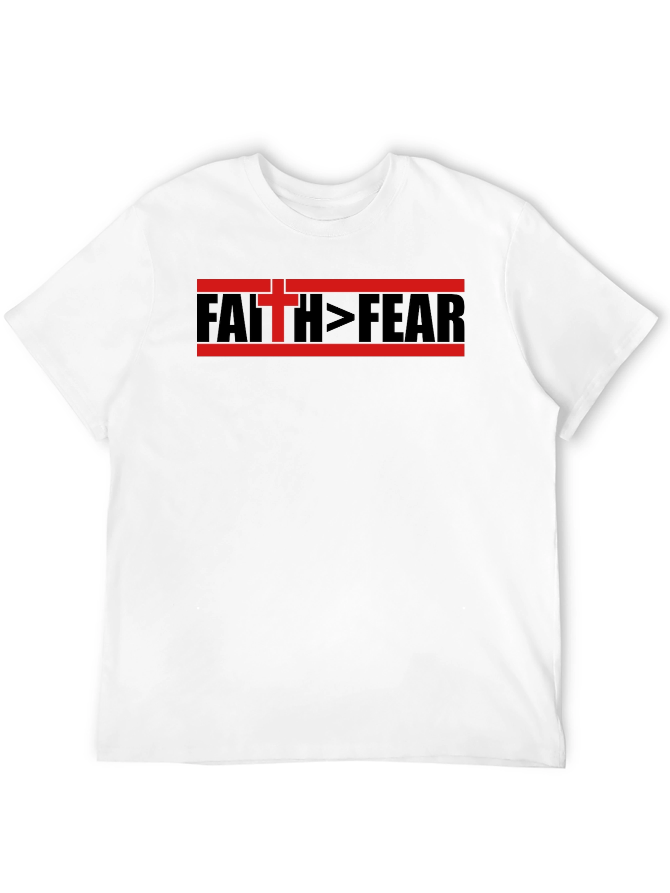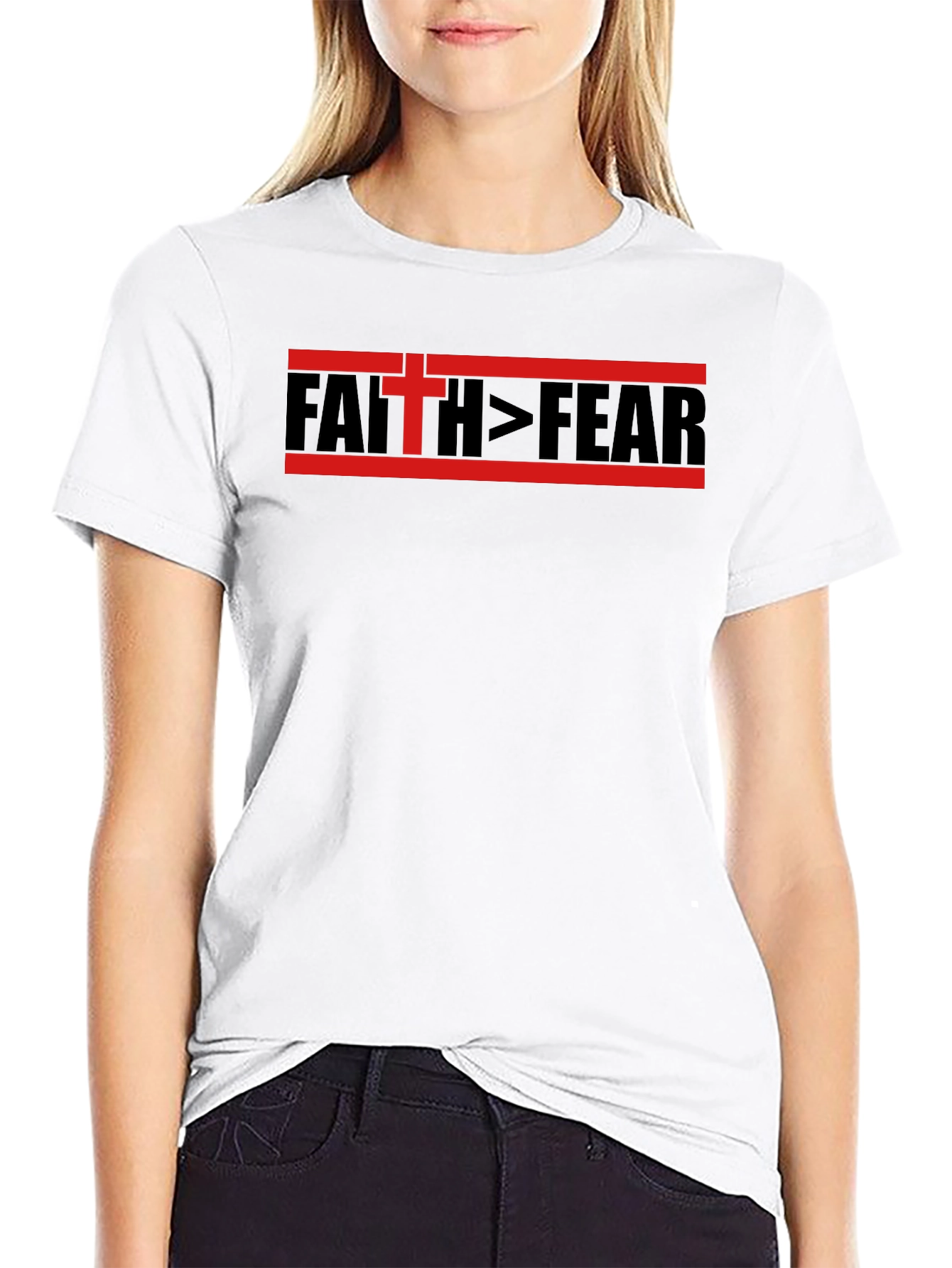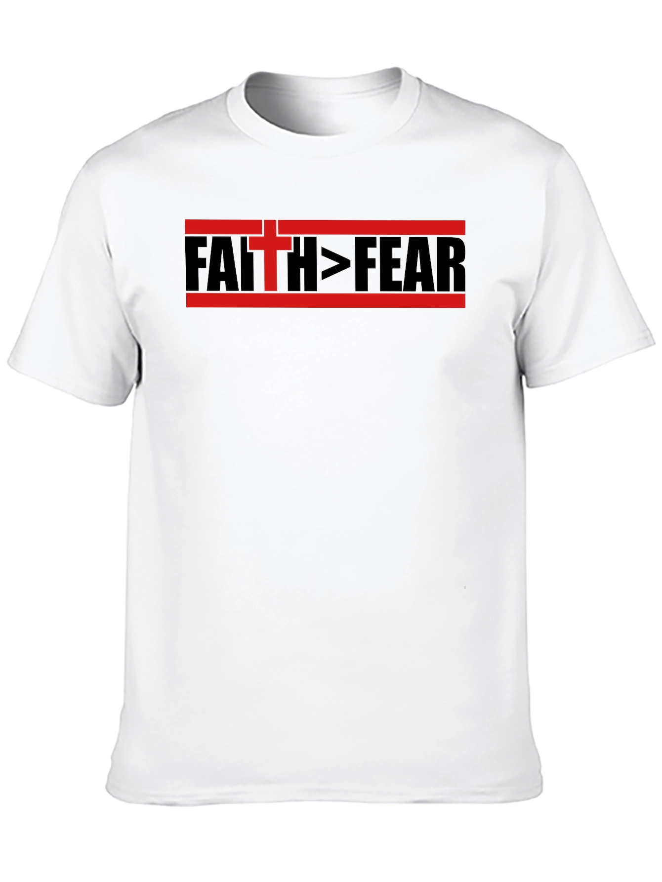 Luce tu fe con esta llamativa camiseta negra. El diseño presenta la frase 'FAITH > FEAR' (Fe > Miedo) en letras negras, enmarcada con líneas horizontales rojas, creando un contraste impactante. El símbolo de la cruz se integra creativamente en la palabra 'FAITH'. Esta camiseta es ideal para expresar tus creencias con estilo y comodidad. Perfecta para uso diario, eventos religiosos o como un regalo significativo para alguien especial. Fabricada con materiales suaves al tacto, garantiza confort y durabilidad. Su corte clásico favorece la figura y permite combinarla fácilmente con diferentes estilos. Destaca tu fe y valentía con esta prenda única. ¡Un mensaje poderoso en una prenda de vestir!