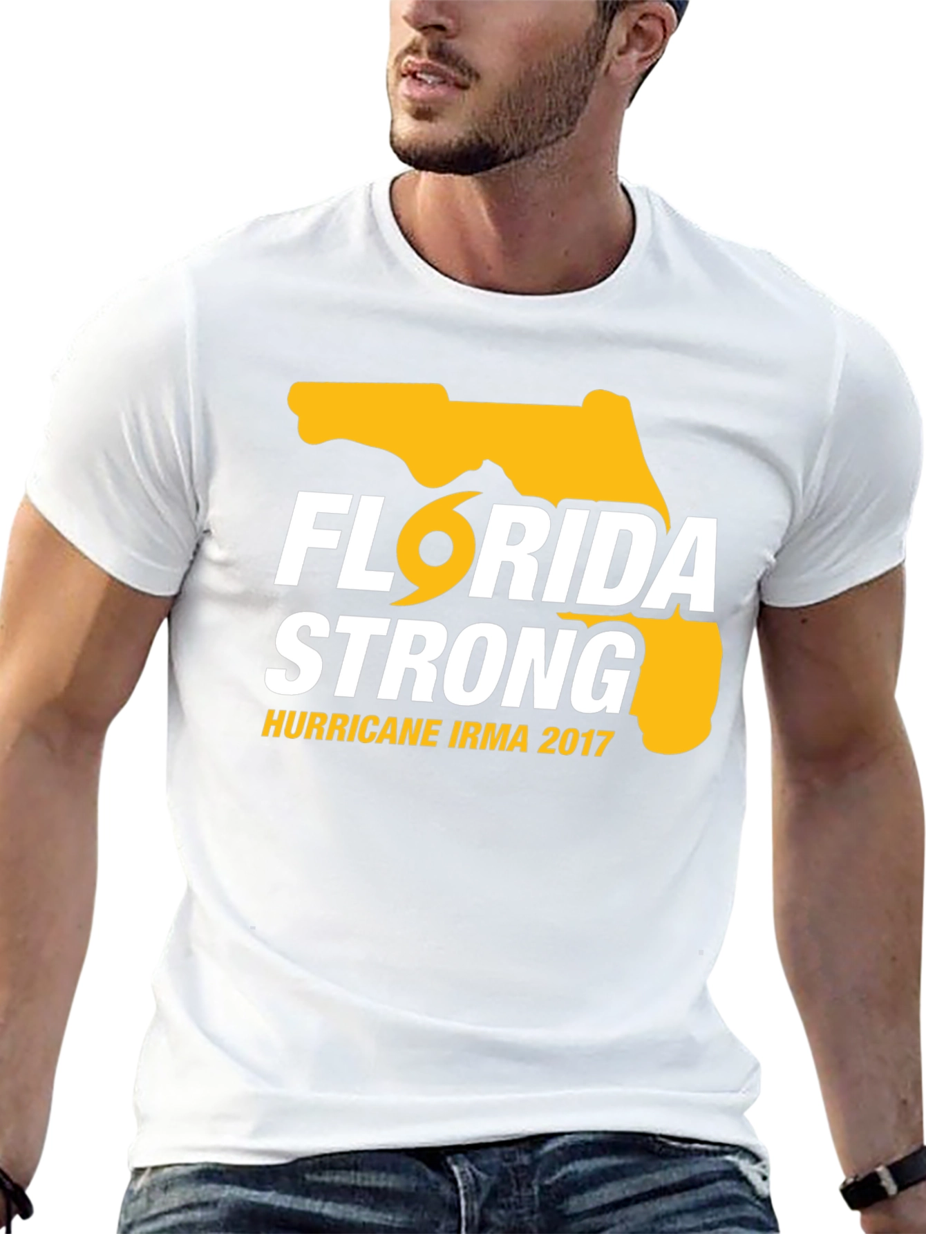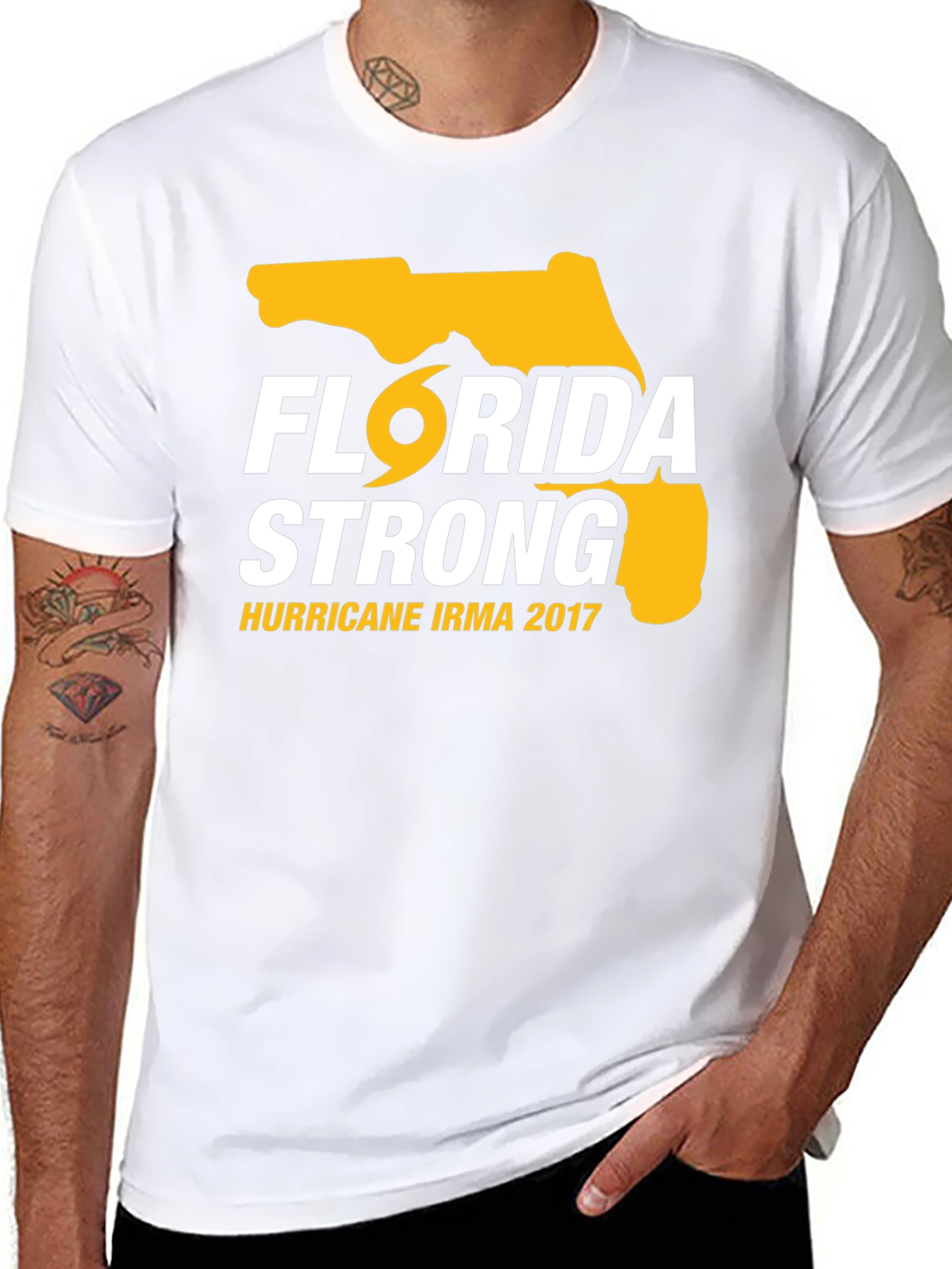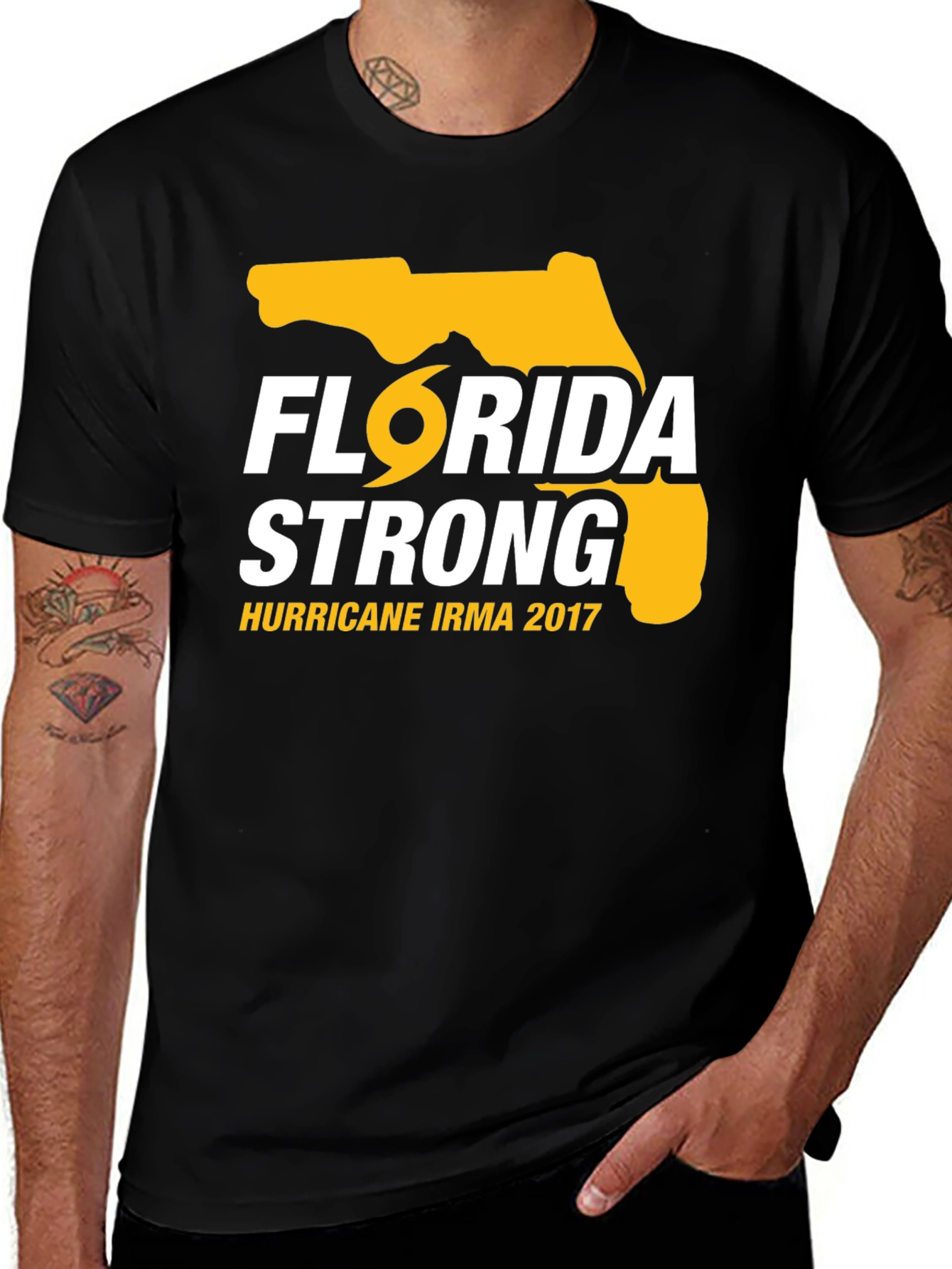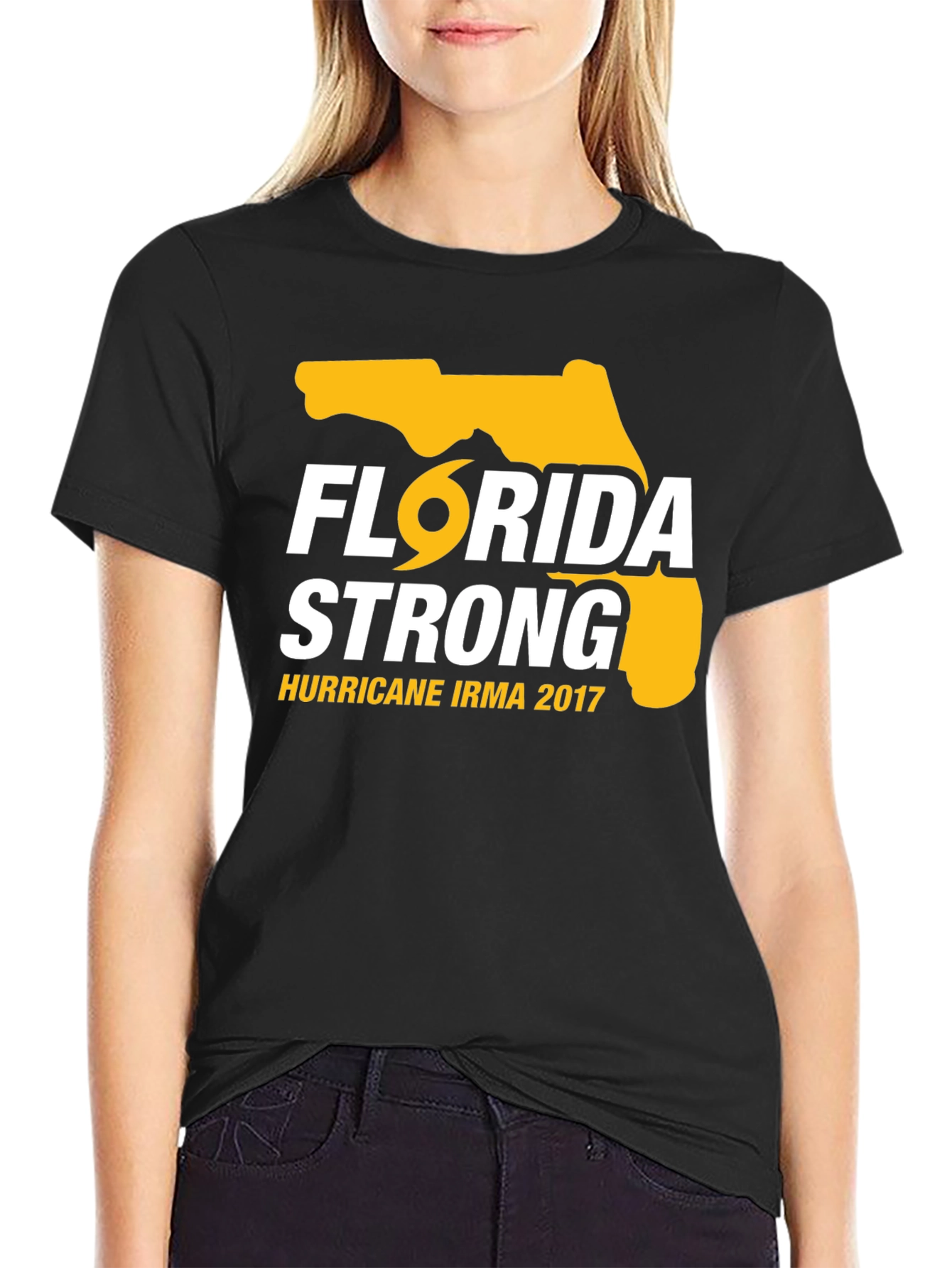 Lleva contigo esta camiseta negra con un diseño único que muestra tu apoyo a Florida. Destacando el contorno amarillo del estado, la frase "Florida Strong" en letras blancas resalta con fuerza, junto con un símbolo de huracán estilizado. Debajo, se lee "Hurricane Irma 2017", recordando un momento crucial en la historia de Florida. Ideal para mostrar orgullo estatal, esta camiseta es perfecta para cualquier ocasión casual. Su diseño llamativo la convierte en una excelente pieza para iniciar conversaciones y mostrar solidaridad con la comunidad de Florida. Fabricada con materiales de alta calidad, garantiza comodidad y durabilidad. ¡Muestra tu espíritu fuerte de Florida con esta camiseta!