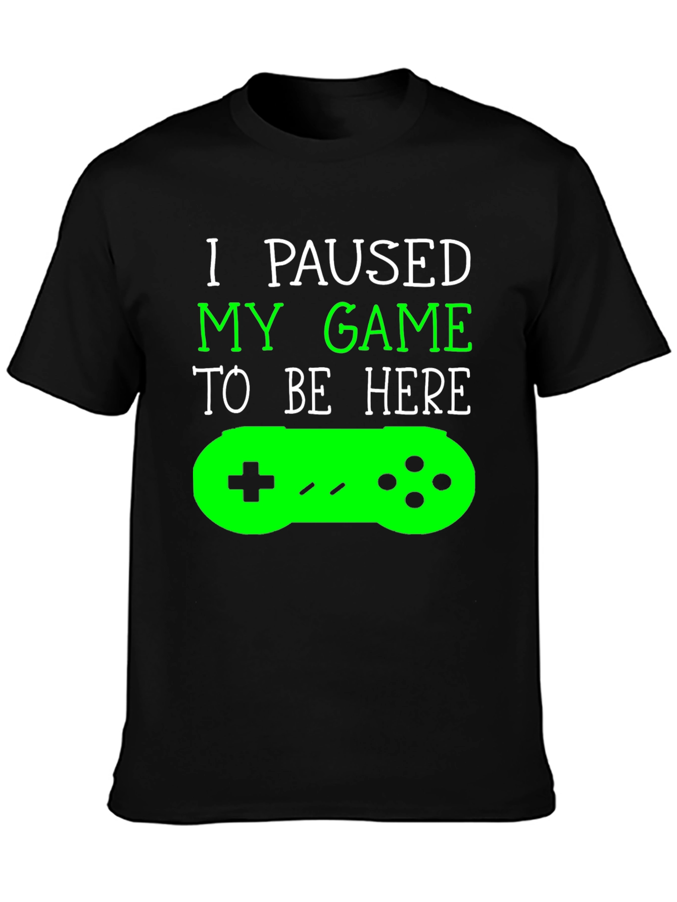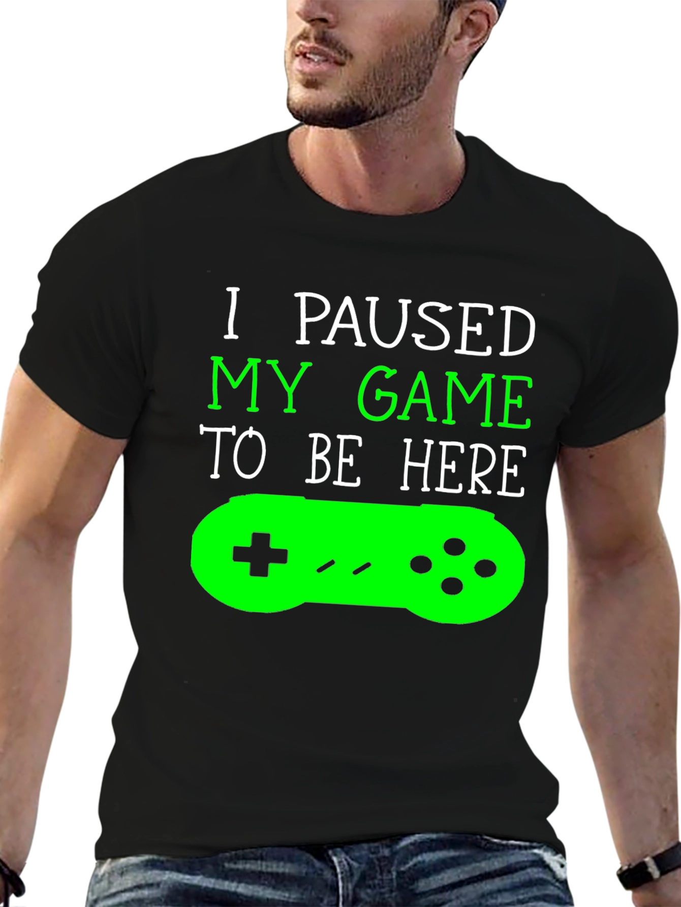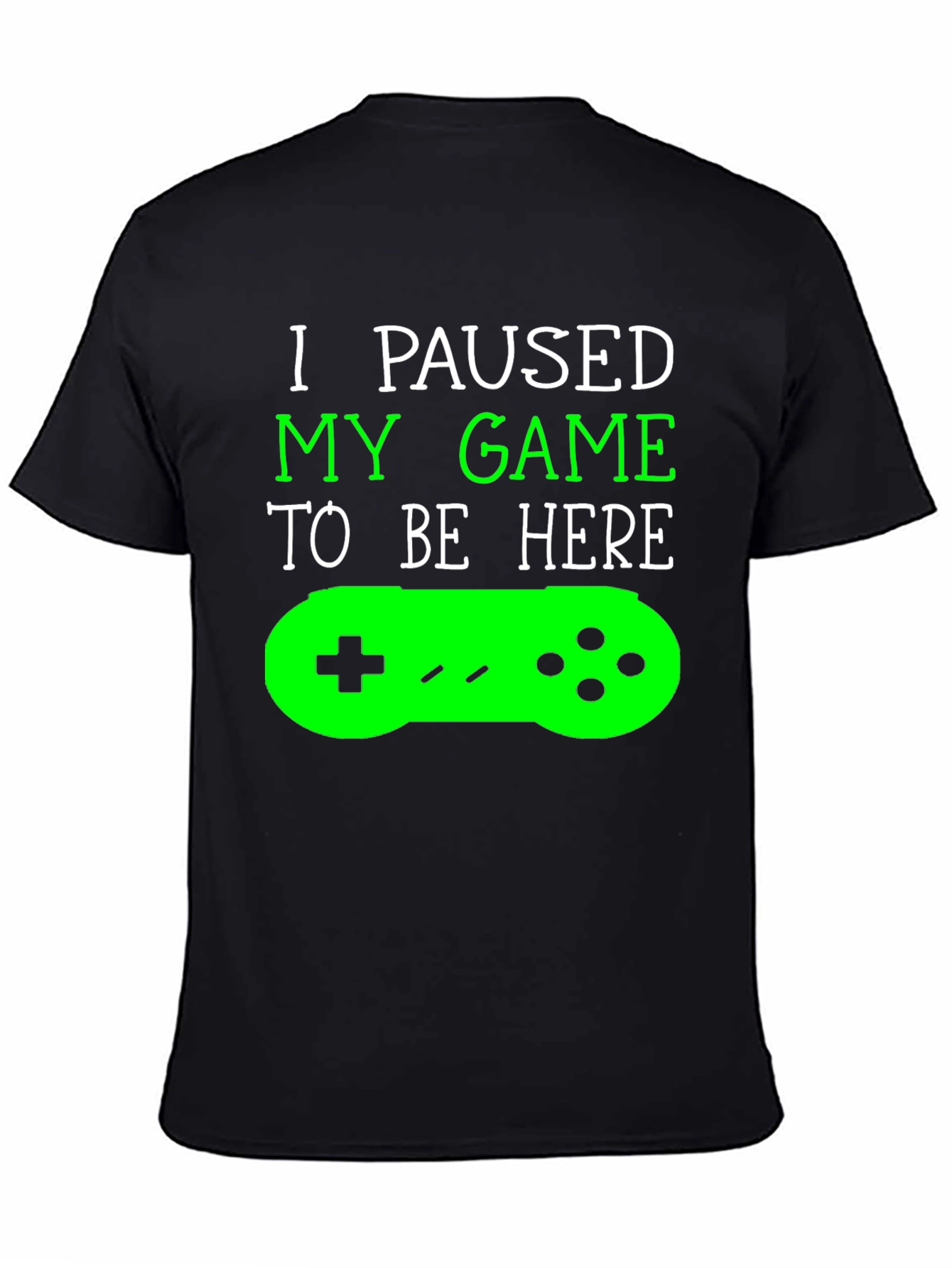 ¡Muestra tu pasión por los videojuegos con esta divertida camiseta! De color negro clásico, esta camiseta de manga corta presenta un diseño llamativo con la frase "I PAUSED MY GAME TO BE HERE" (Pausé mi juego para estar aquí) en letras blancas y verdes vibrantes. Debajo, un control de videojuegos verde completa el diseño, ideal para cualquier gamer. Perfecta para usar en convenciones de videojuegos, reuniones con amigos o simplemente para relajarte en casa mientras juegas. Fabricada con materiales cómodos y duraderos, esta camiseta es una excelente adición al guardarropa de cualquier entusiasta de los videojuegos. ¡Consigue la tuya hoy y demuestra tu amor por los juegos con estilo!