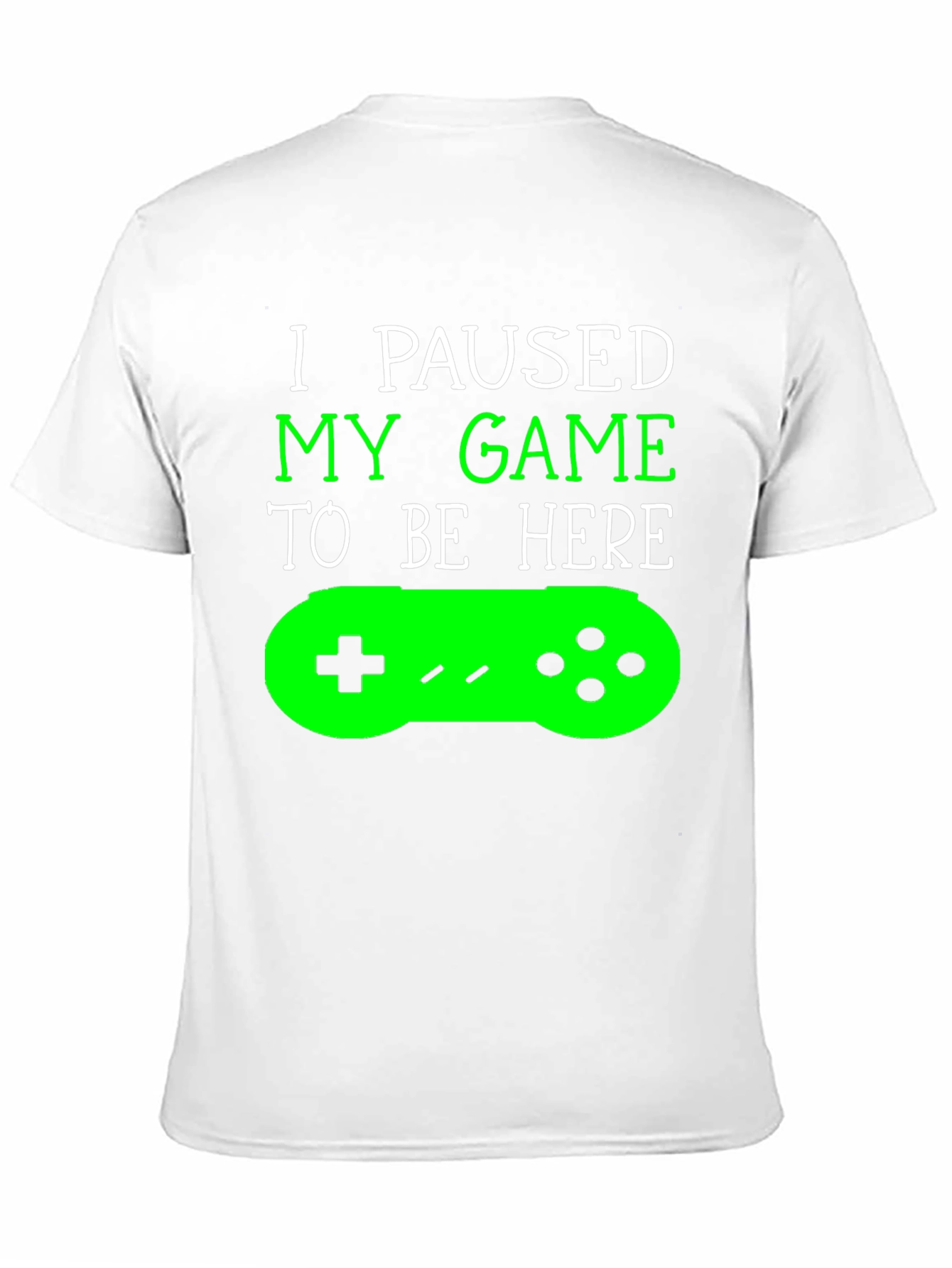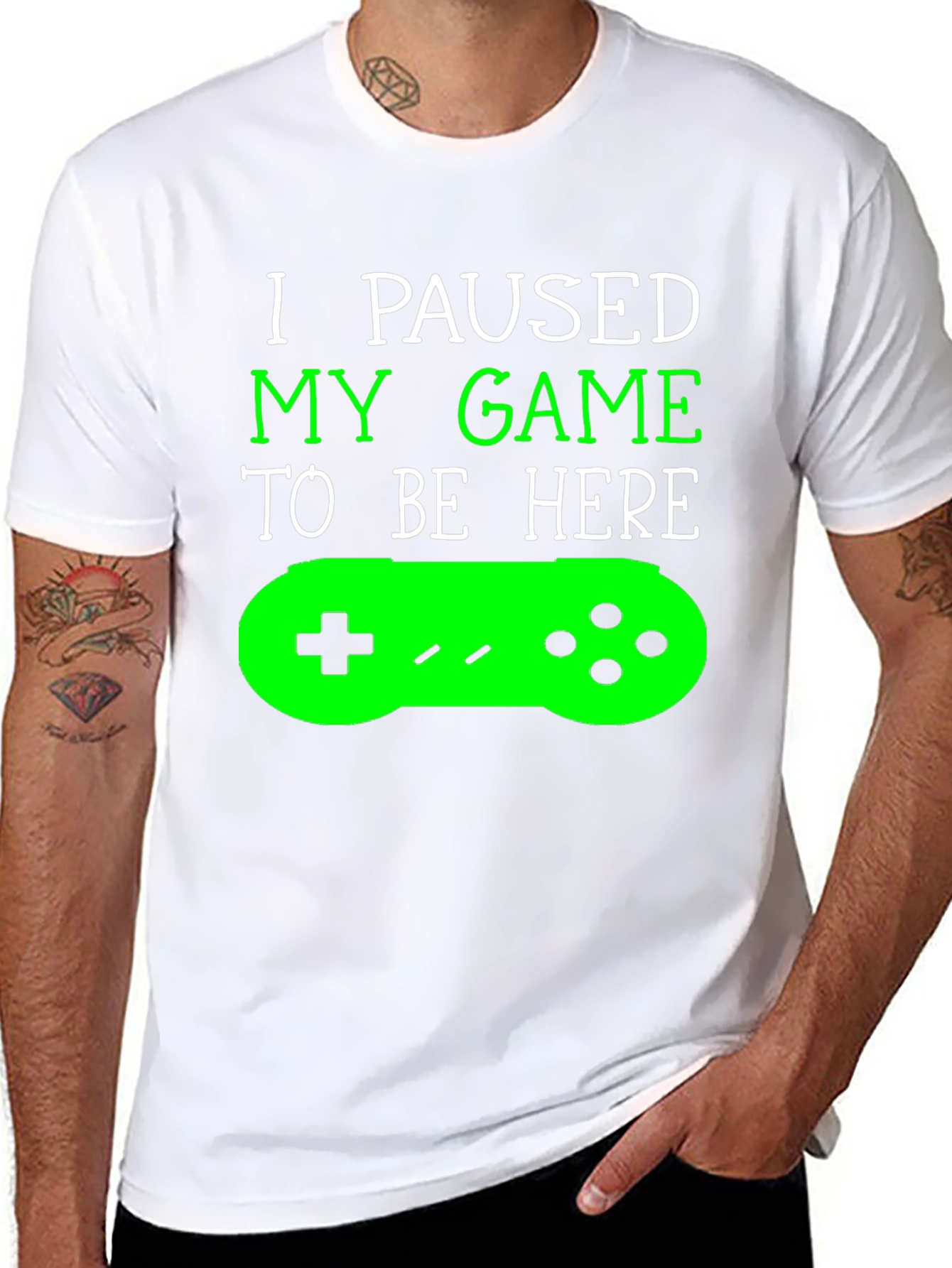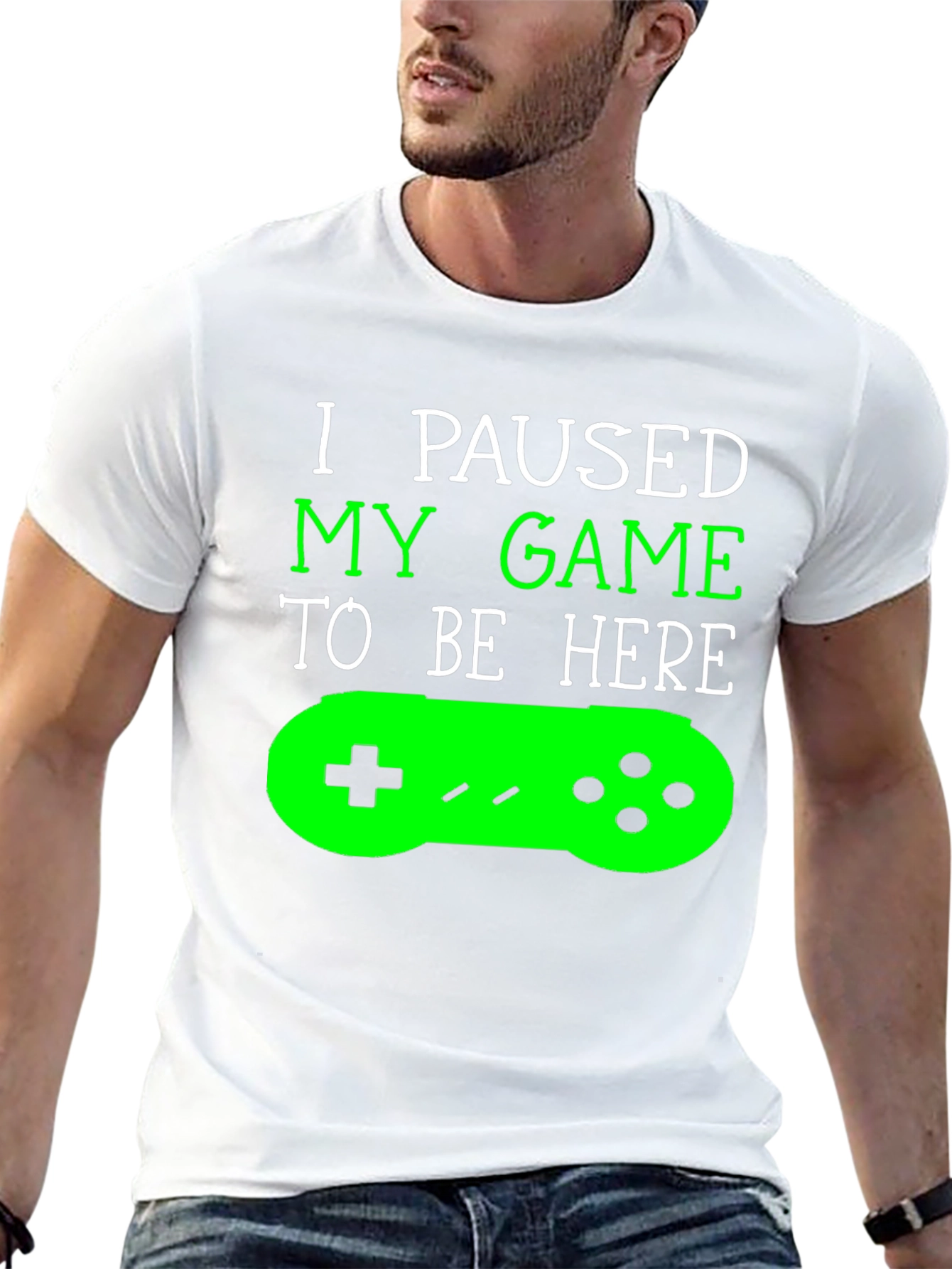 ¡Muestra tu pasión por los videojuegos con esta divertida camiseta! De color negro clásico, esta camiseta de manga corta presenta un diseño llamativo con la frase "I PAUSED MY GAME TO BE HERE" (Pausé mi juego para estar aquí) en letras blancas y verdes vibrantes. Debajo, un control de videojuegos verde completa el diseño, ideal para cualquier gamer. Perfecta para usar en convenciones de videojuegos, reuniones con amigos o simplemente para relajarte en casa mientras juegas. Fabricada con materiales cómodos y duraderos, esta camiseta es una excelente adición al guardarropa de cualquier entusiasta de los videojuegos. ¡Consigue la tuya hoy y demuestra tu amor por los juegos con estilo!