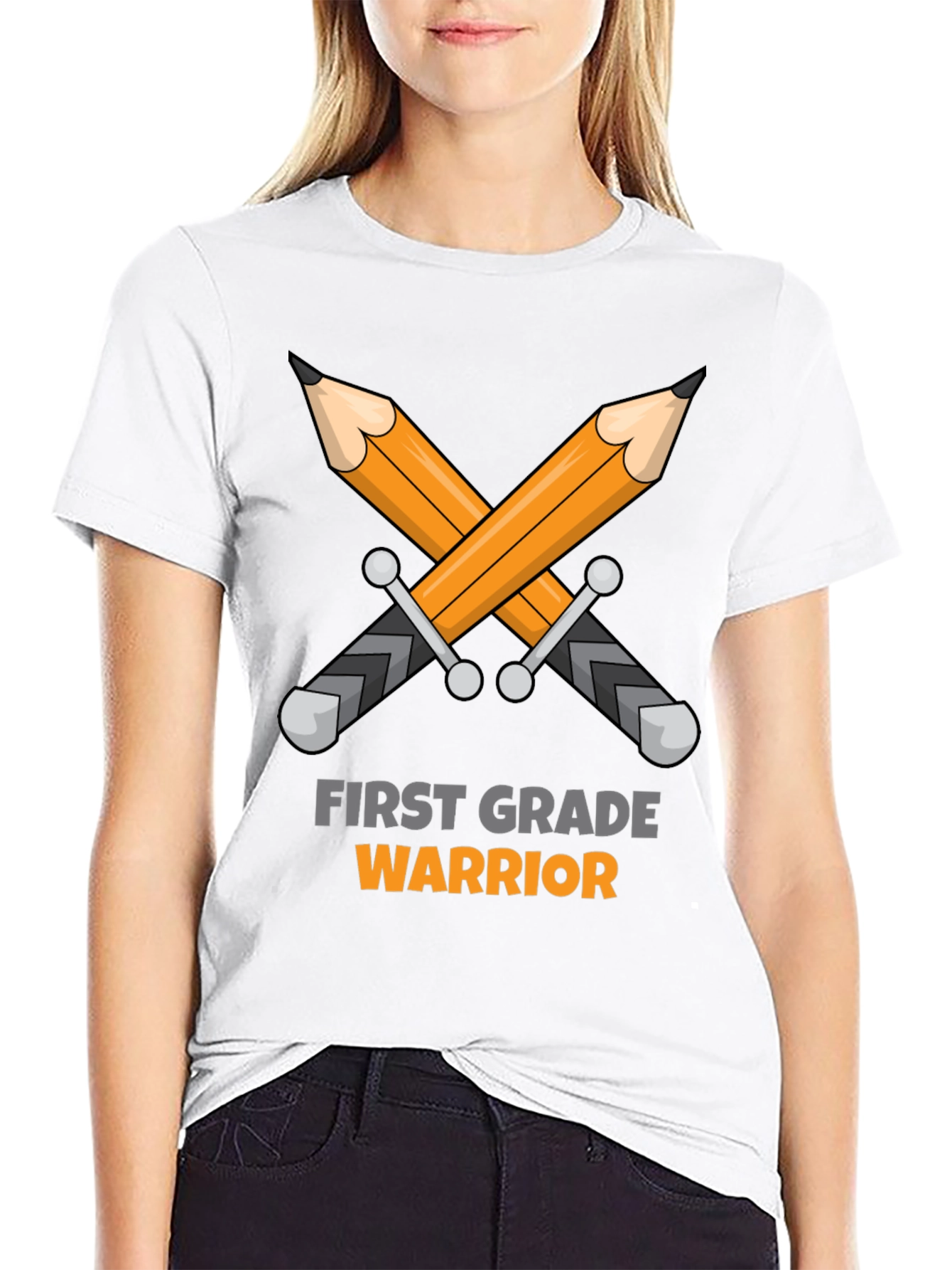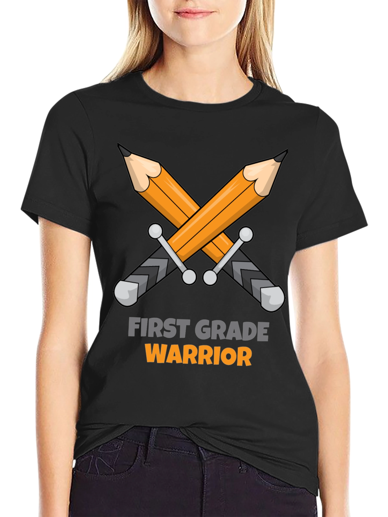 ¡Desata el guerrero interior de tu pequeño estudiante con esta divertida camiseta! Con un diseño llamativo de lápices cruzados como espadas y el texto "First Grade Warrior" (Guerrero de Primer Grado) en colores contrastantes, esta camiseta negra es perfecta para los primeros días de clases, eventos escolares o simplemente para mostrar orgullo académico. Fabricada con un tejido suave y cómodo, es ideal para el uso diario y resistirá las aventuras de cualquier joven guerrero. Ideal para estudiantes de primer grado que aman aprender y enfrentarse a nuevos desafíos. ¡Prepárate para la batalla del aprendizaje con estilo!