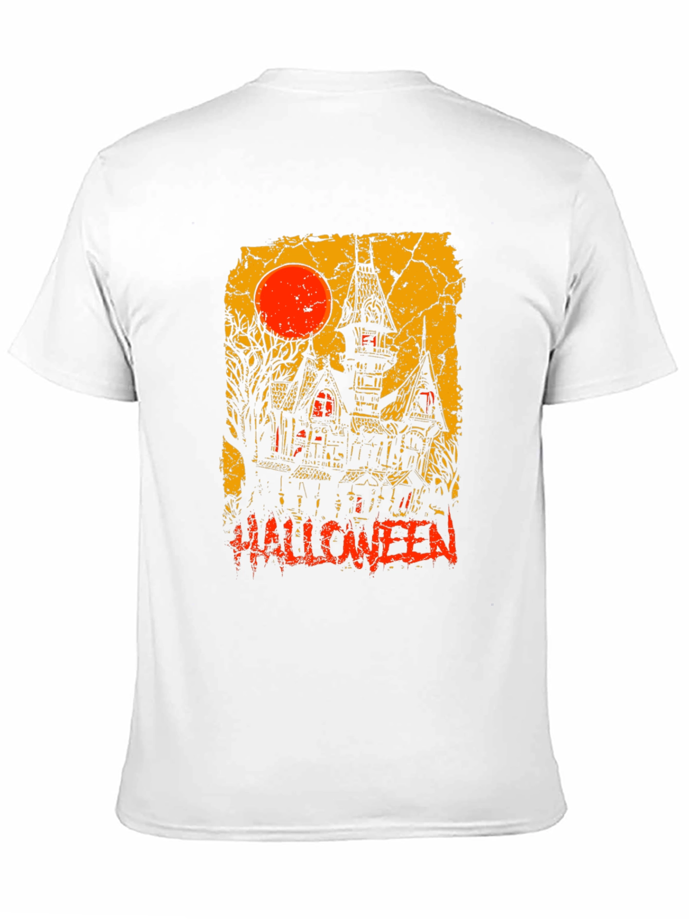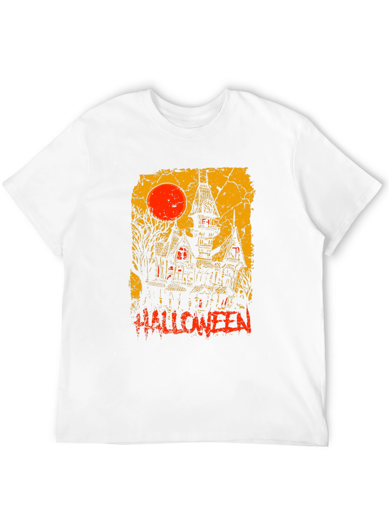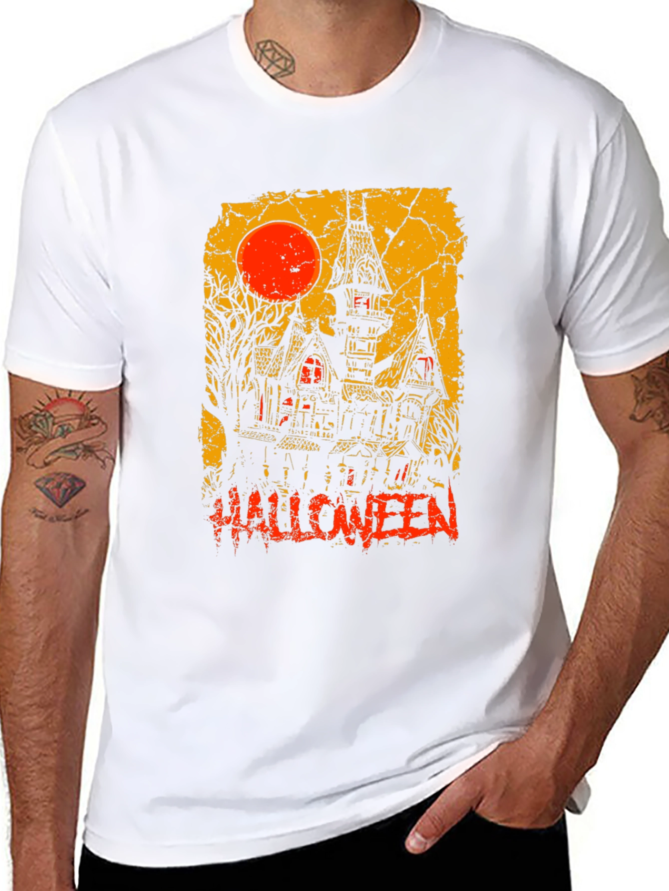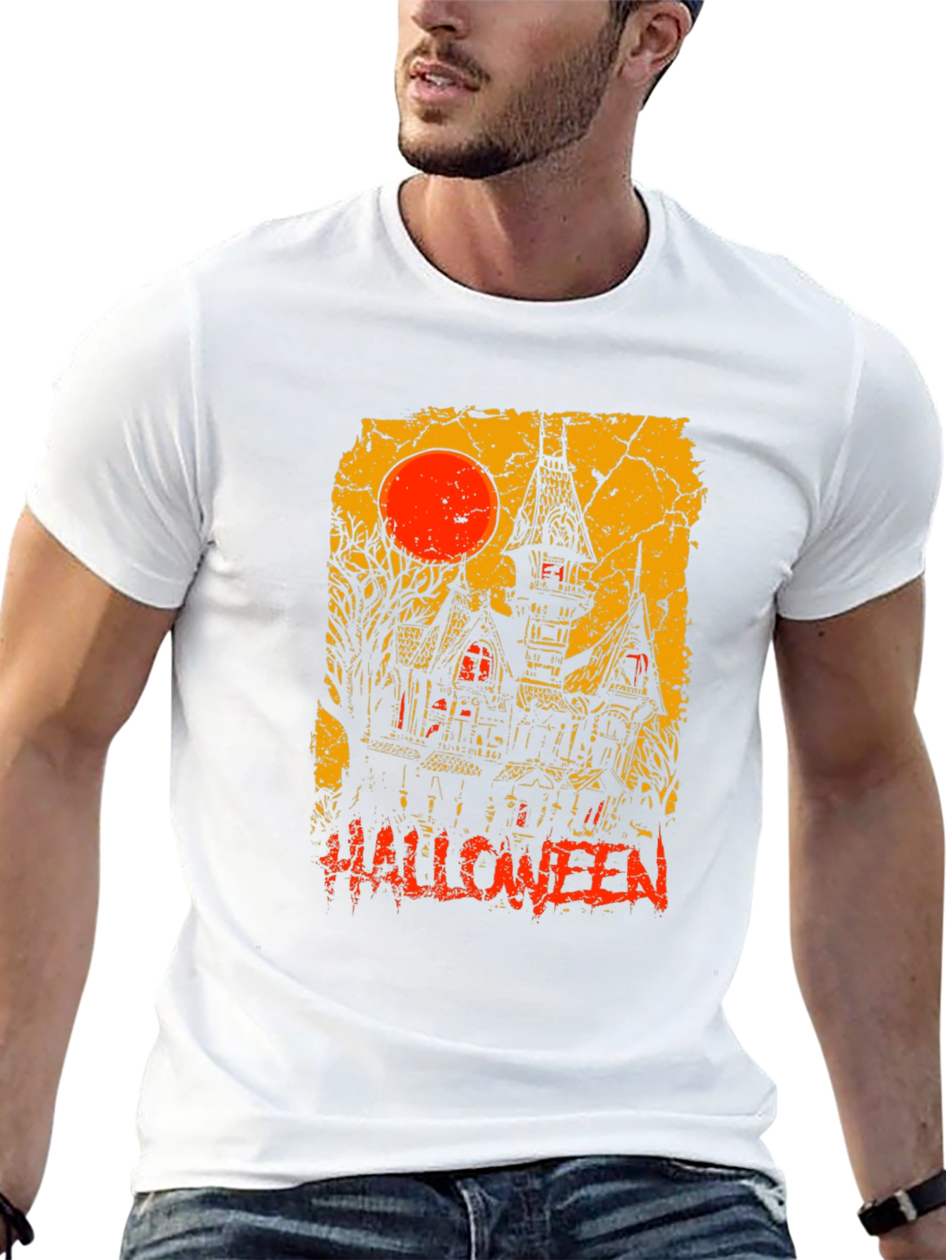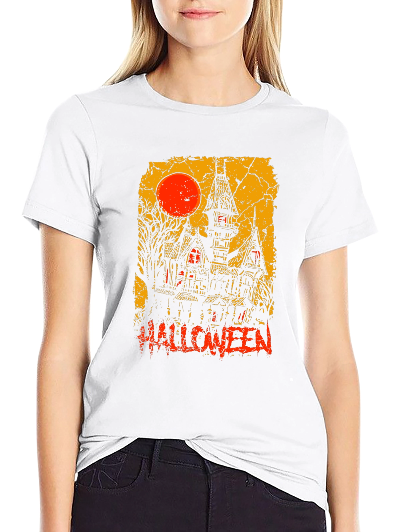 ¡Prepárate para Halloween con esta increíble camiseta de manga corta! Presenta un diseño llamativo de una casa embrujada con una luna roja de fondo, todo sobre un marco amarillo texturizado que le da un toque retro y espeluznante. Perfecta para llevar a fiestas de disfraces, pedir dulces o simplemente para mostrar tu espíritu de Halloween con estilo. Fabricada en un material suave y cómodo, esta camiseta negra es ideal para cualquier fanático de Halloween. ¡Añade un toque de terror a tu armario y destaca entre la multitud!