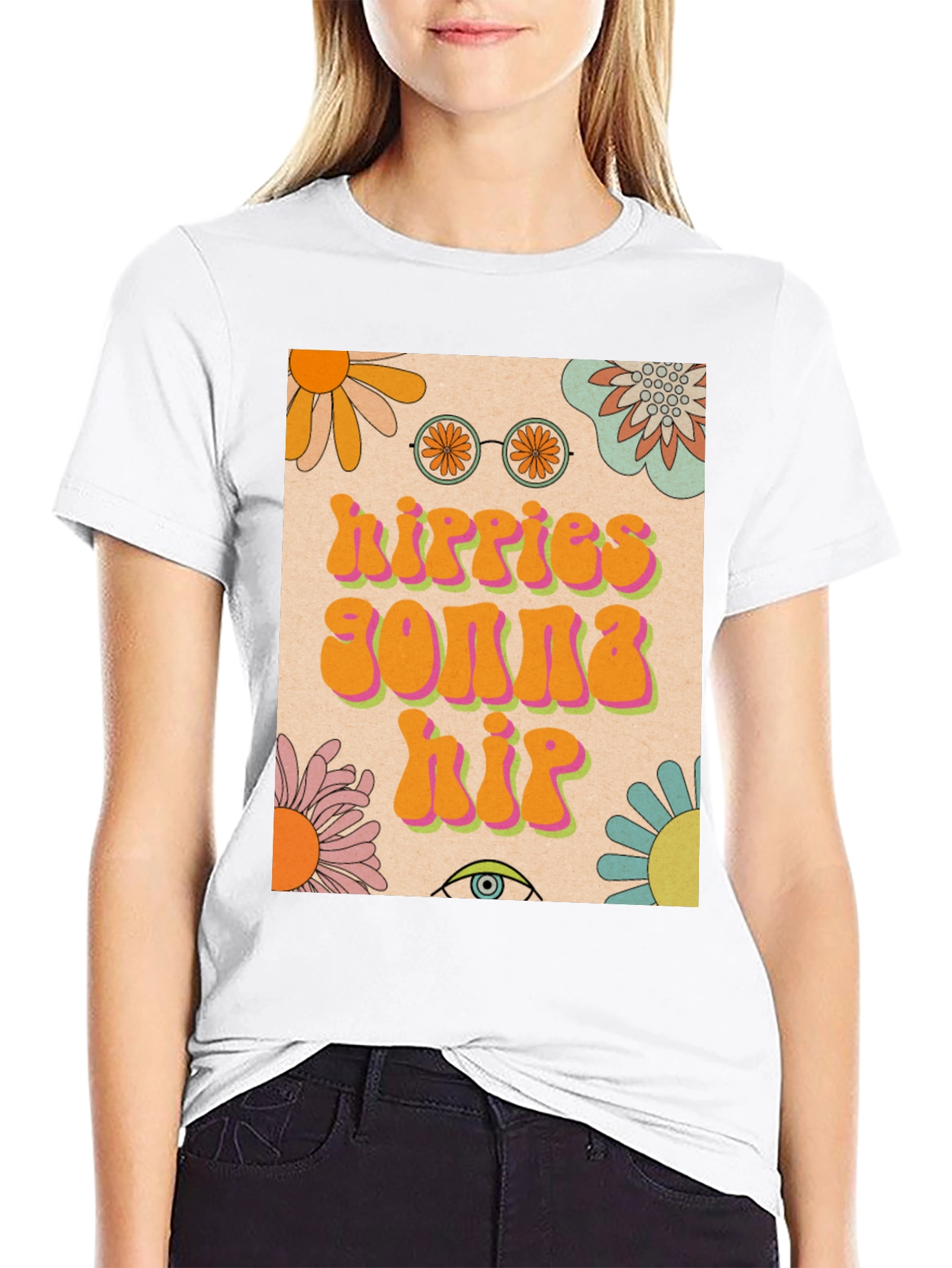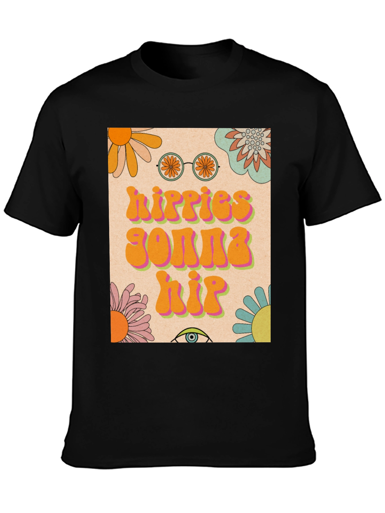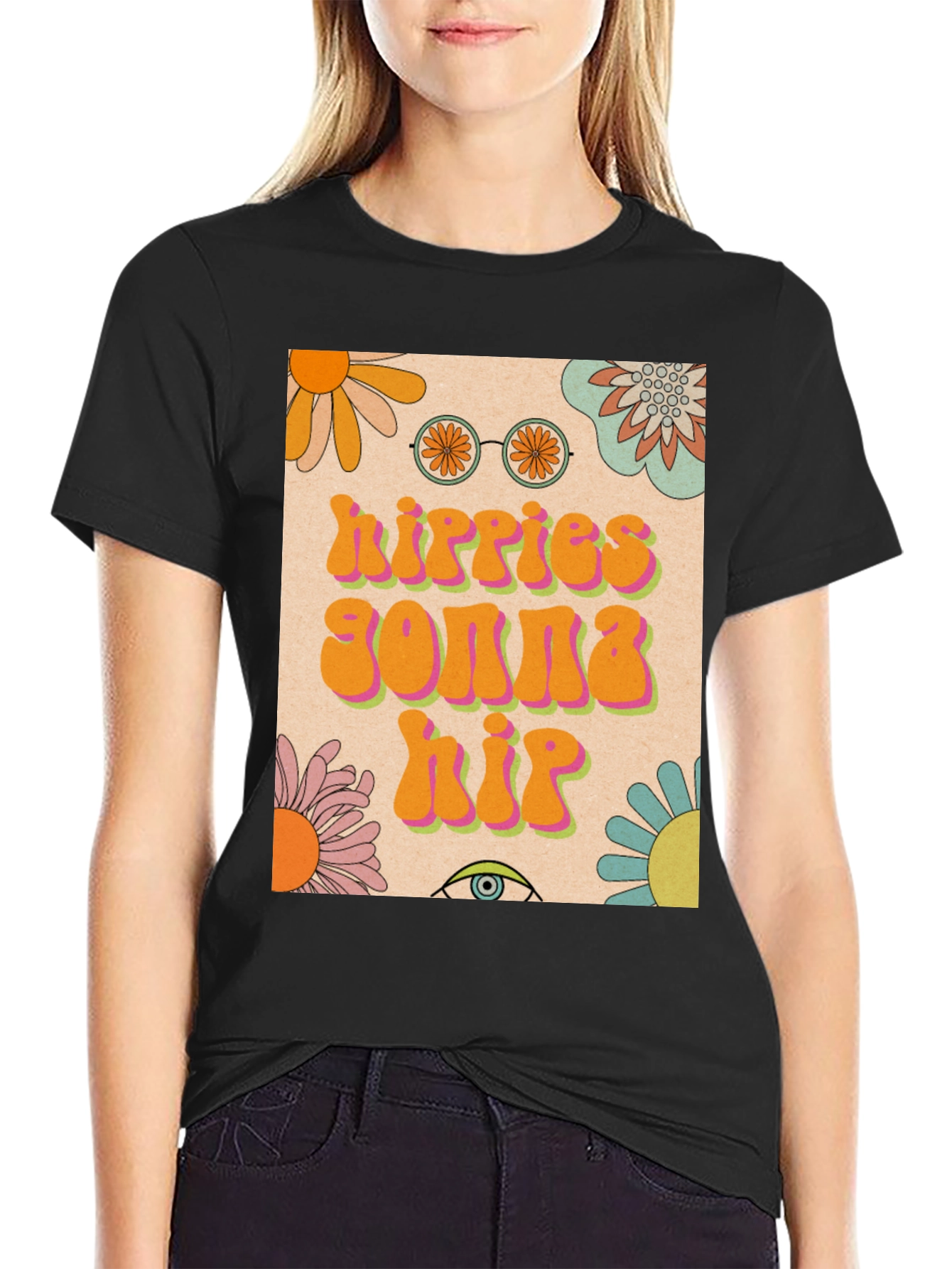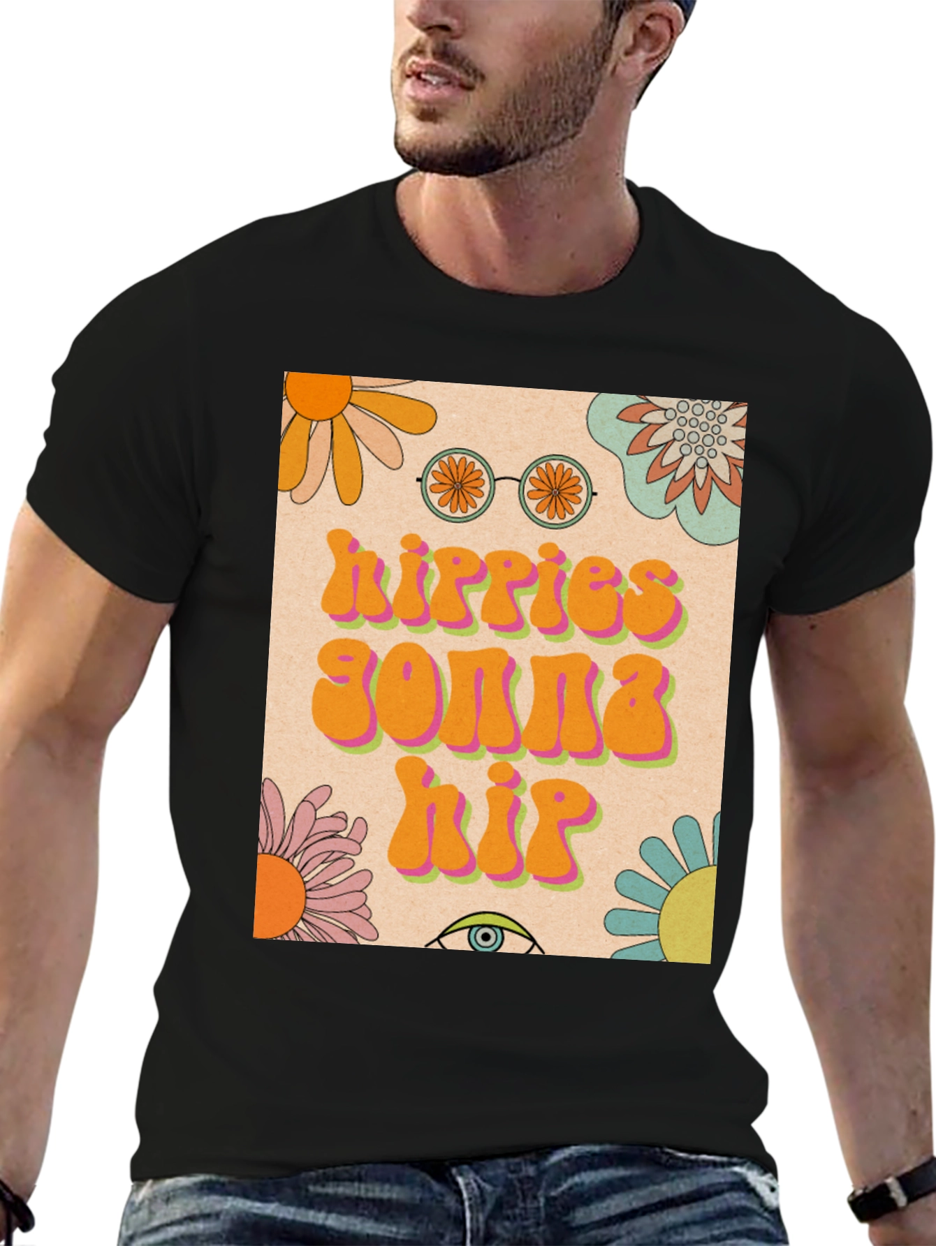 Sumérgete en la onda retro con esta camiseta negra de diseño hippie. Presenta un estampado llamativo con flores vibrantes, gafas de sol redondas y la frase "hippies gonna hip" con un estilo vintage muy colorido. Ideal para expresar tu espíritu libre y tu amor por la moda de los años 60 y 70. Perfecta para festivales, conciertos, o simplemente para añadir un toque original a tu look diario. Su diseño único y llamativo te garantiza destacar entre la multitud. Una prenda cómoda y con estilo que te transportará a una época llena de paz y amor. ¡Atrévete a lucir este diseño auténtico y revive la magia de los hippies!