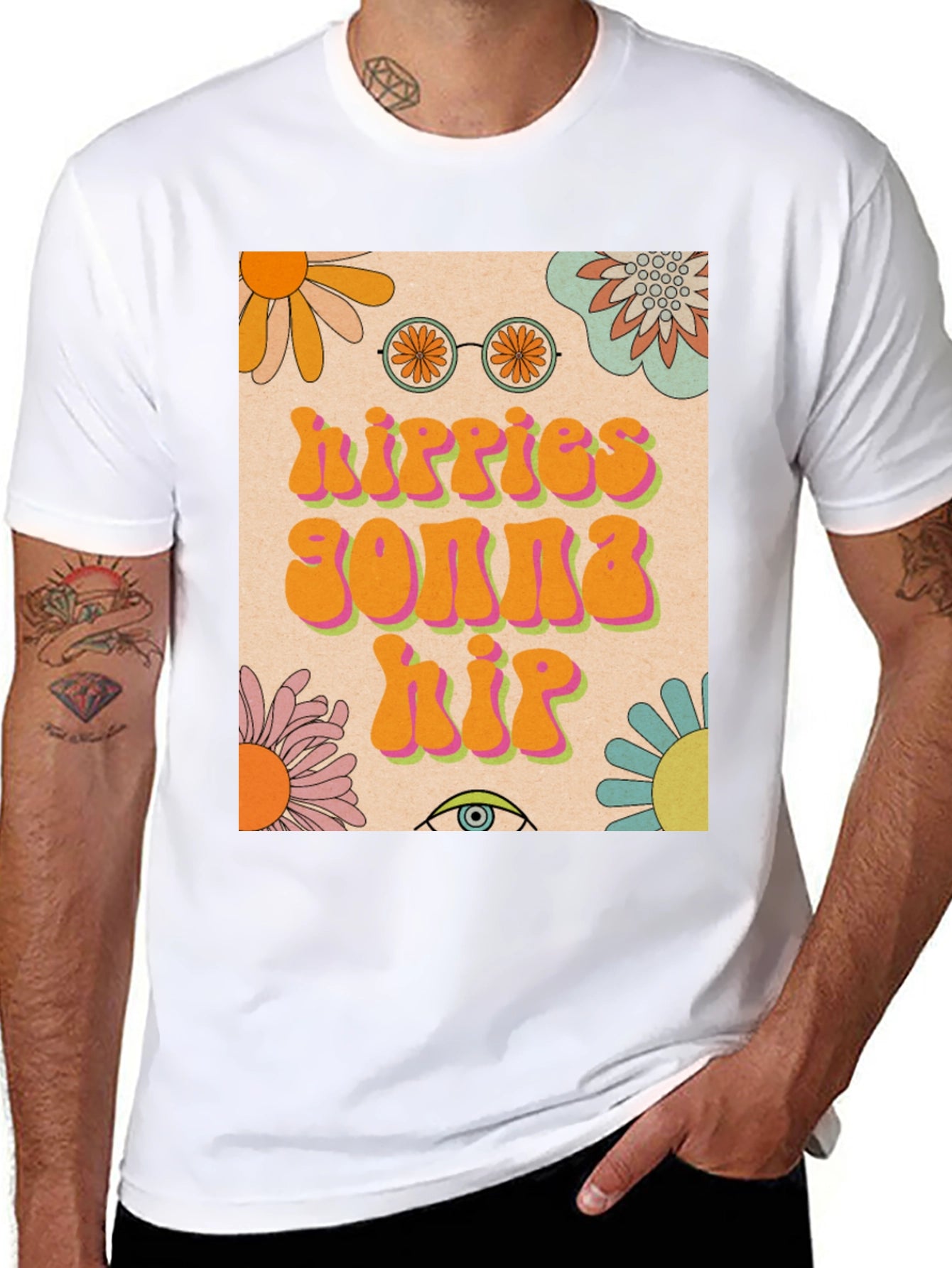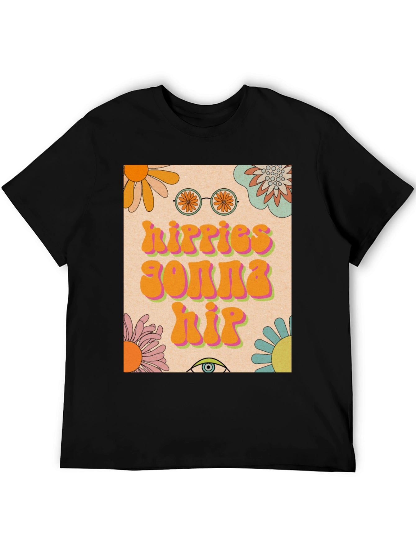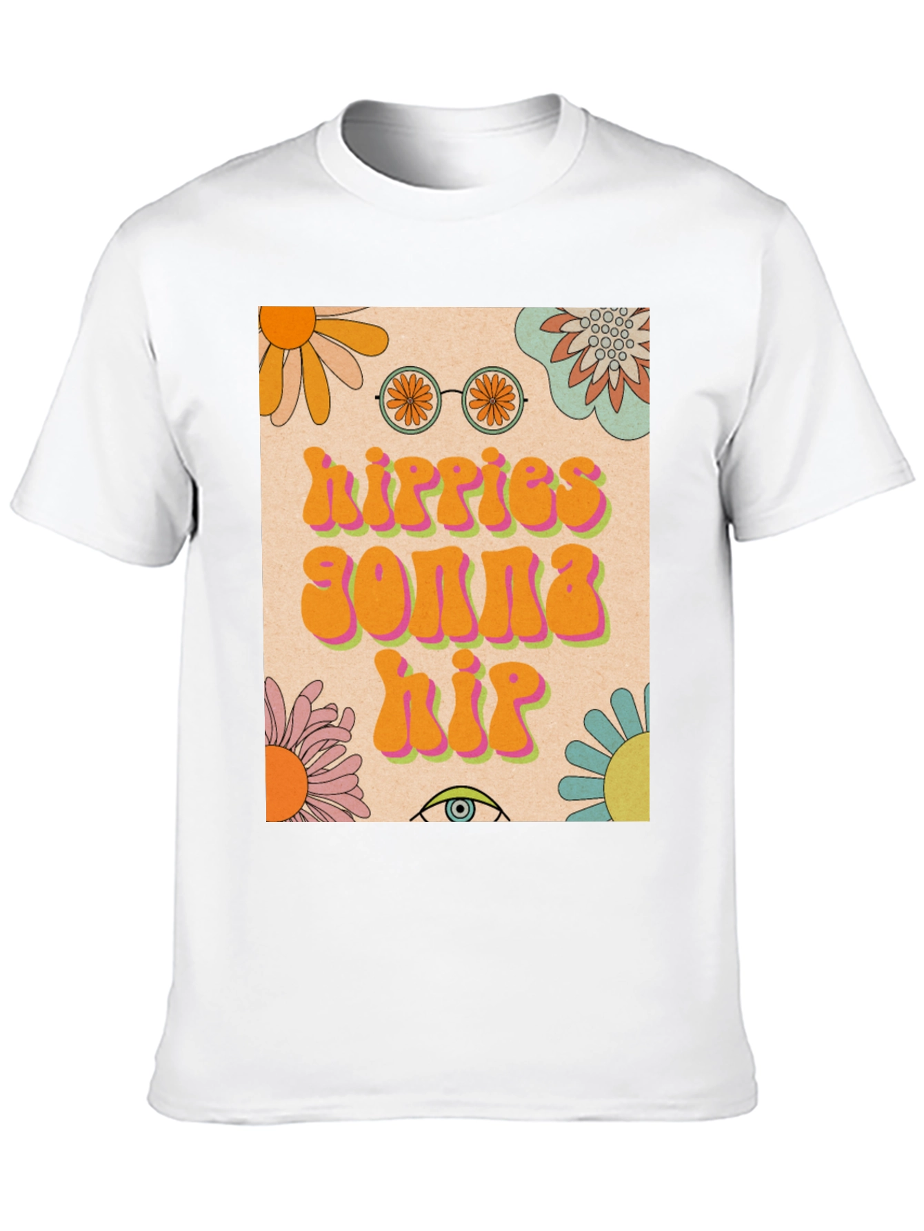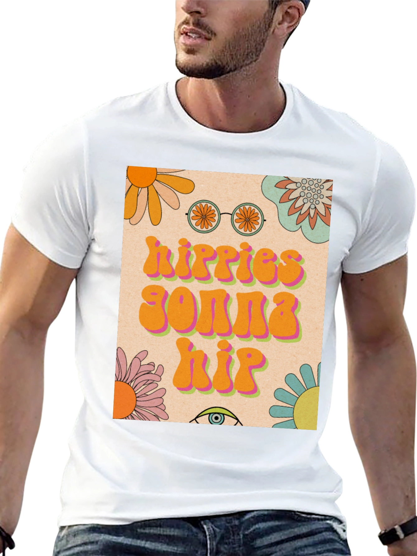 Sumérgete en la onda retro con esta camiseta negra de diseño hippie. Presenta un estampado llamativo con flores vibrantes, gafas de sol redondas y la frase "hippies gonna hip" con un estilo vintage muy colorido. Ideal para expresar tu espíritu libre y tu amor por la moda de los años 60 y 70. Perfecta para festivales, conciertos, o simplemente para añadir un toque original a tu look diario. Su diseño único y llamativo te garantiza destacar entre la multitud. Una prenda cómoda y con estilo que te transportará a una época llena de paz y amor. ¡Atrévete a lucir este diseño auténtico y revive la magia de los hippies!