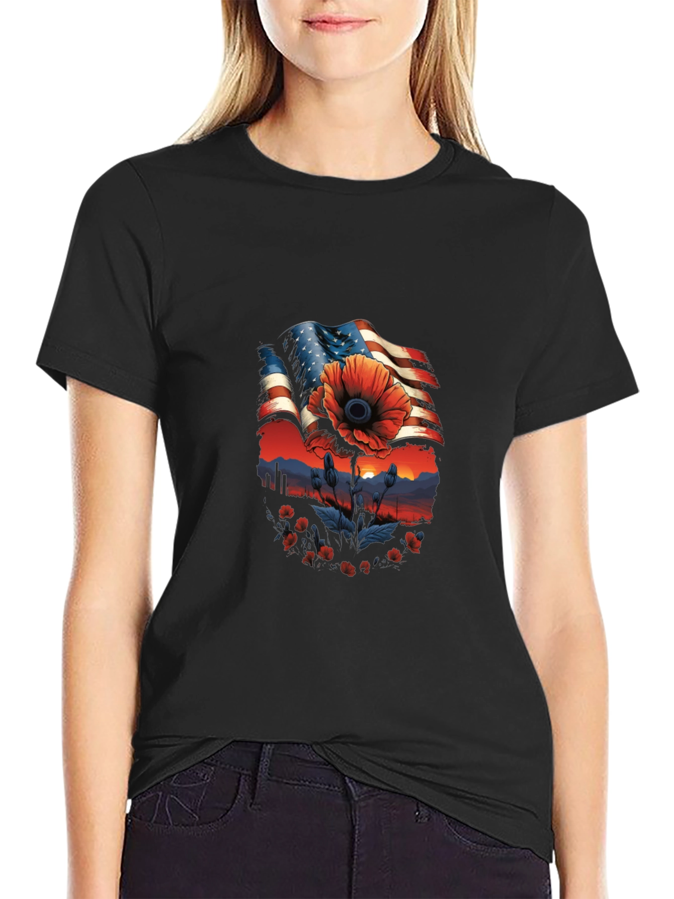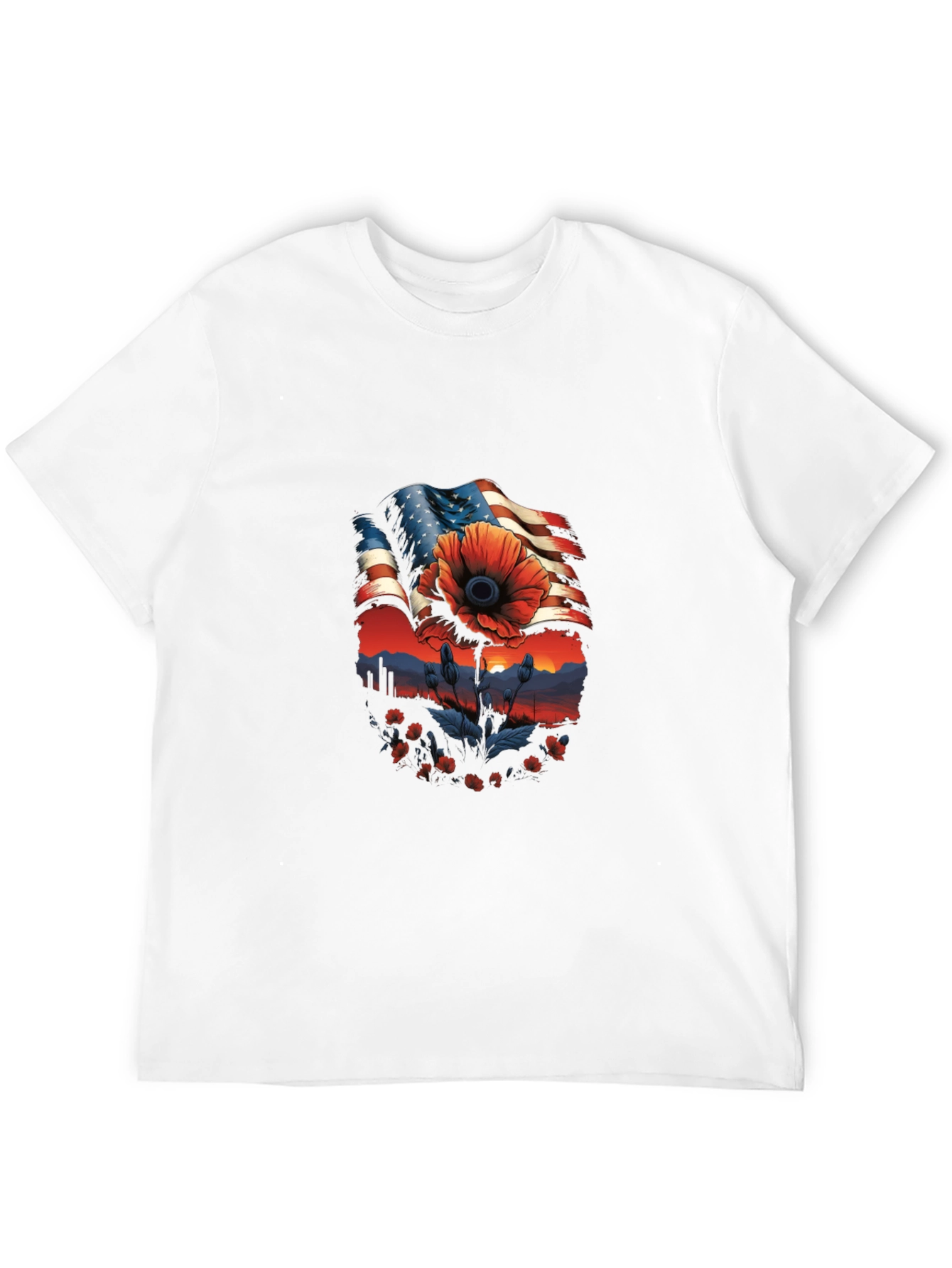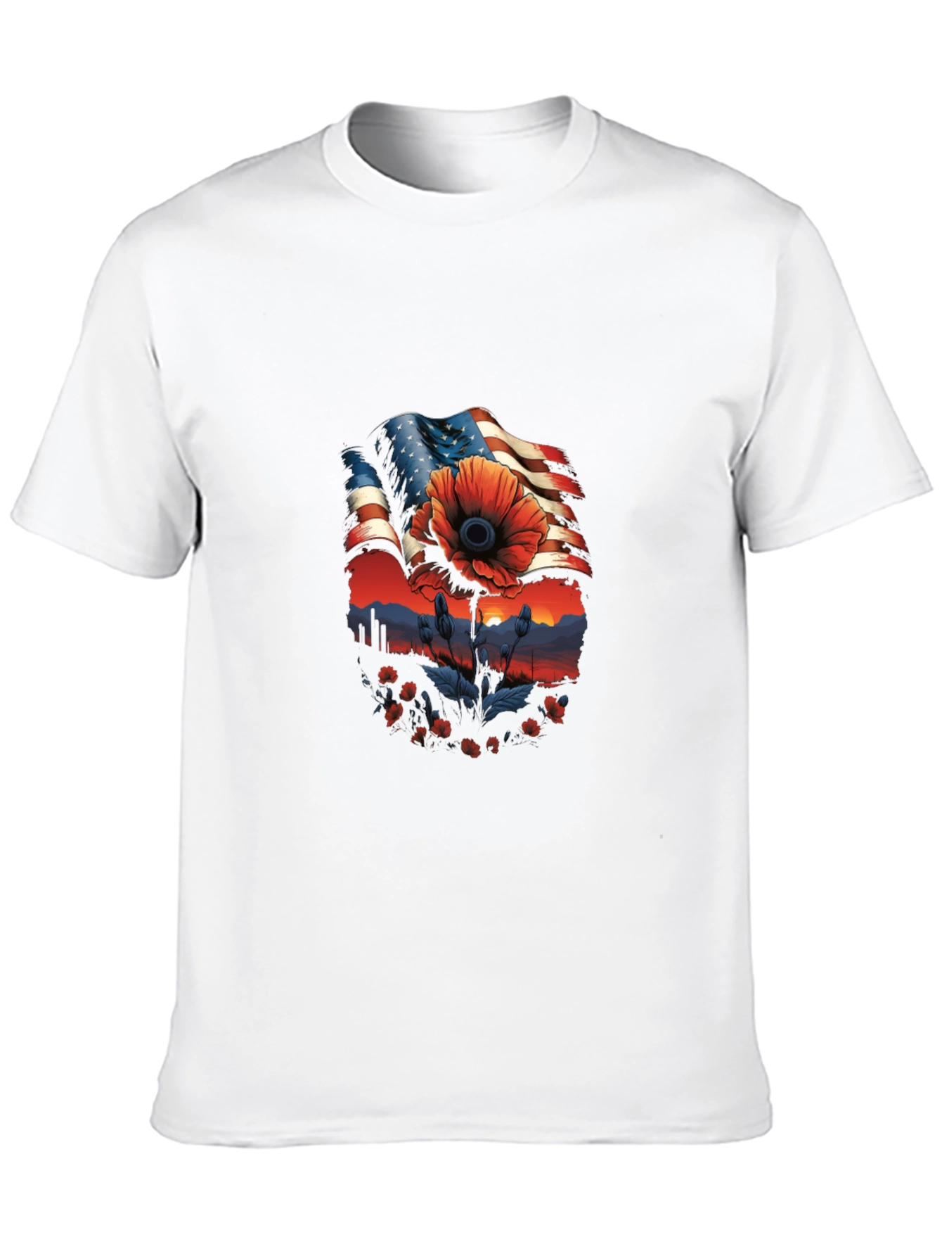 Luce con orgullo esta llamativa camiseta negra para hombre, adornada con un diseño único de la bandera estadounidense fusionada con una vibrante amapola. El diseño presenta colores intensos y detalles intrincados que capturan la esencia patriótica con un toque artístico. Perfecta para expresar tu estilo individual y amor por la libertad. Esta camiseta de manga corta, confeccionada en un tejido suave y cómodo, es ideal para cualquier ocasión casual, desde reuniones con amigos hasta eventos al aire libre. Combina fácilmente con jeans, pantalones cortos o joggers para un look relajado y a la moda. ¡Añade un toque de originalidad a tu guardarropa con esta prenda imprescindible!