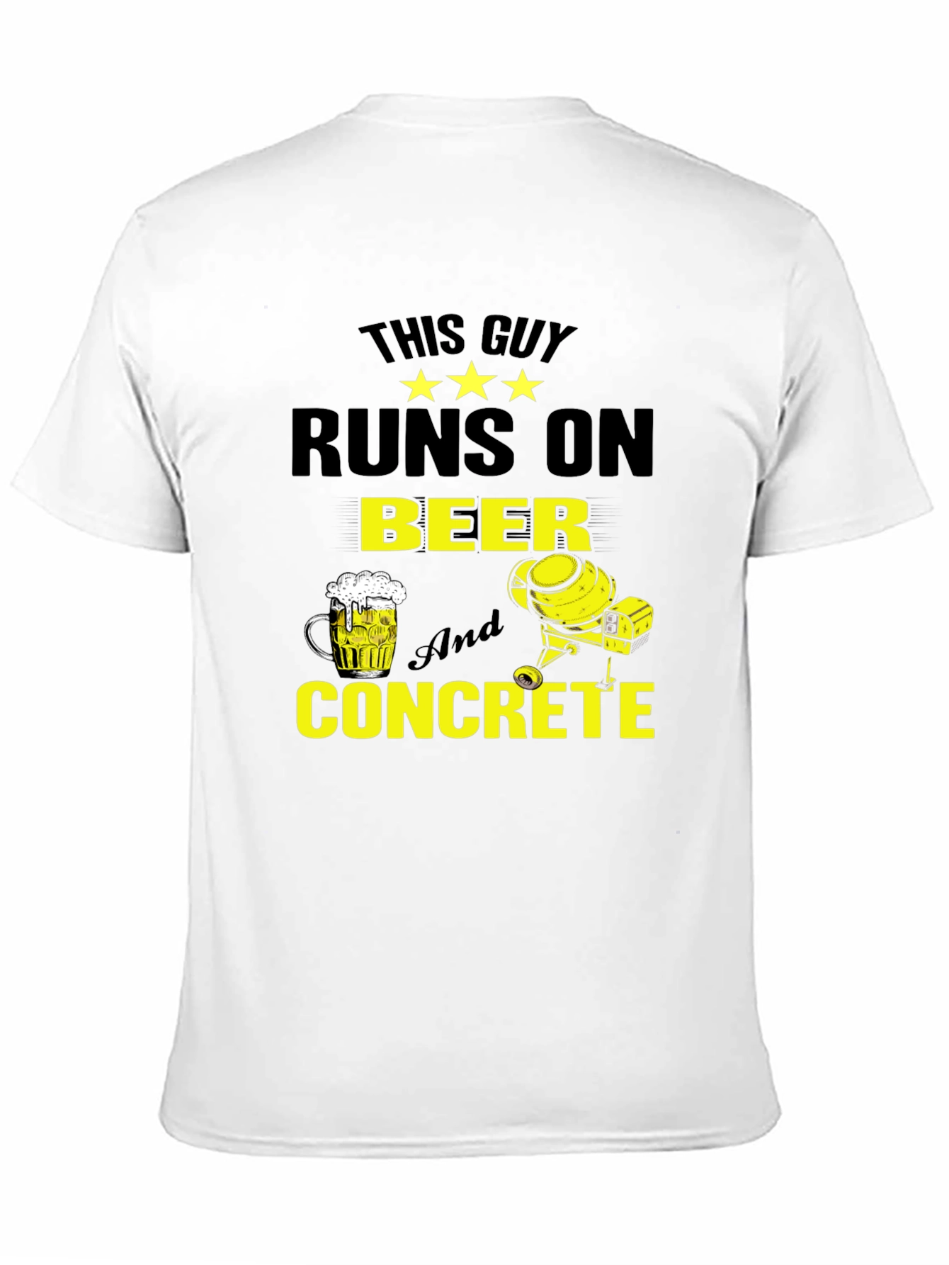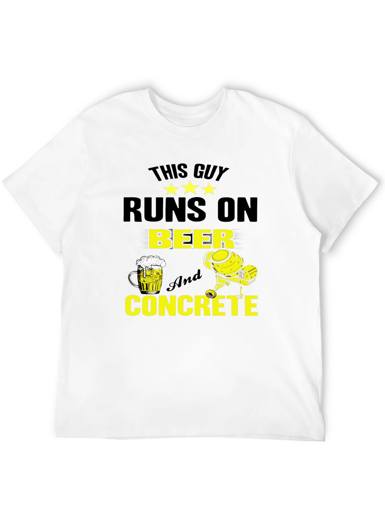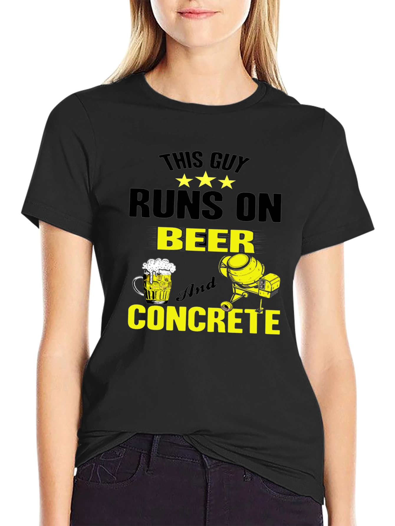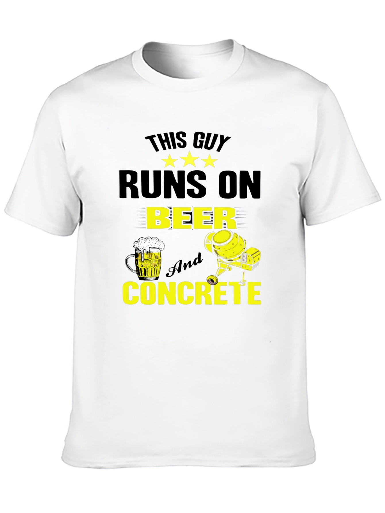 Esta camiseta negra para hombre presenta un diseño llamativo y divertido. El estampado, en tonos amarillos y negros, proclama "This Guy Runs on Beer and Concrete" (Este tipo funciona con cerveza y concreto), ideal para aquellos que disfrutan de una buena cerveza después de un día de trabajo duro. Una jarra de cerveza espumosa y un mezclador de concreto ilustran la frase, añadiendo un toque humorístico. Hecha de un material suave y cómodo, esta camiseta de manga corta es perfecta para usarla en un ambiente casual, ya sea en casa, en un bar con amigos, o incluso en el trabajo si el código de vestimenta lo permite. Es una excelente opción para expresar tu personalidad y sentido del humor.