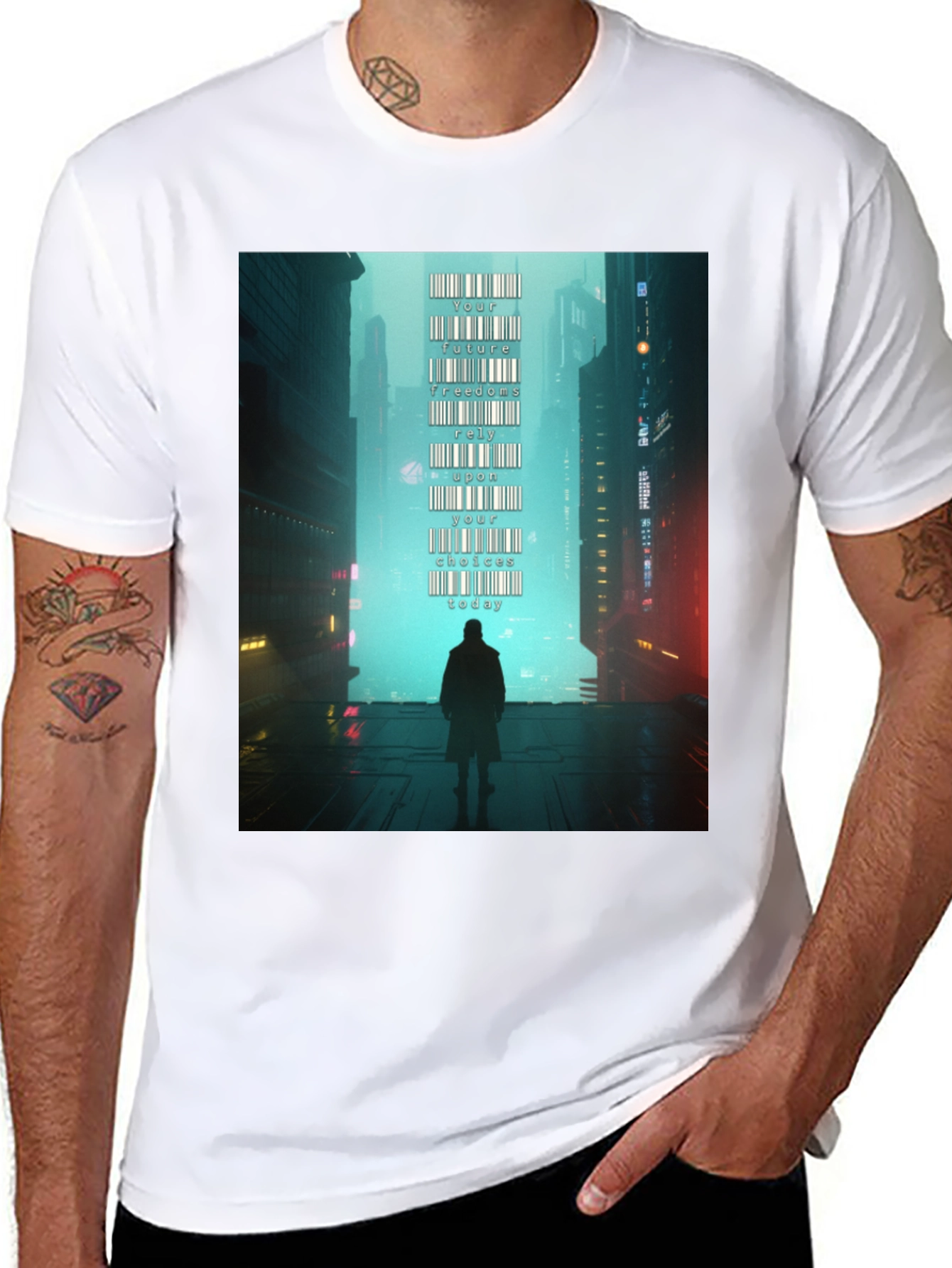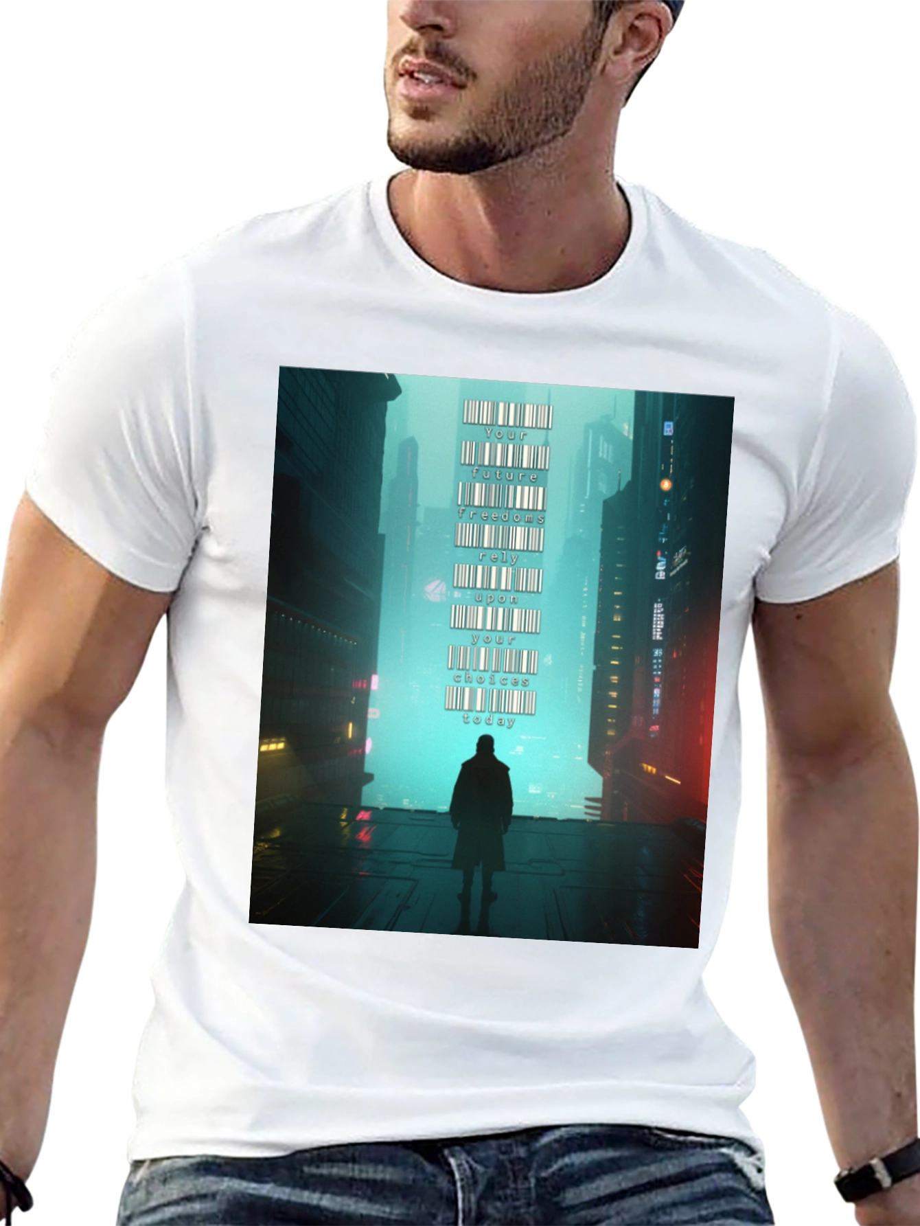 Camiseta Hombre: Futuro Cyberpunk