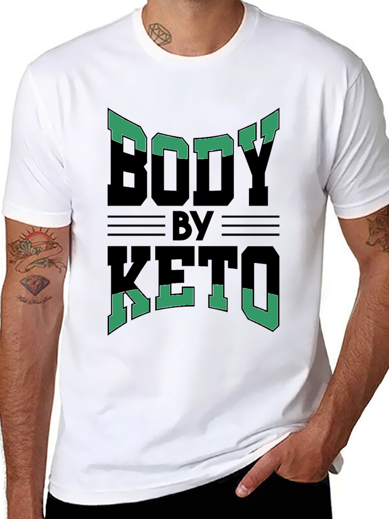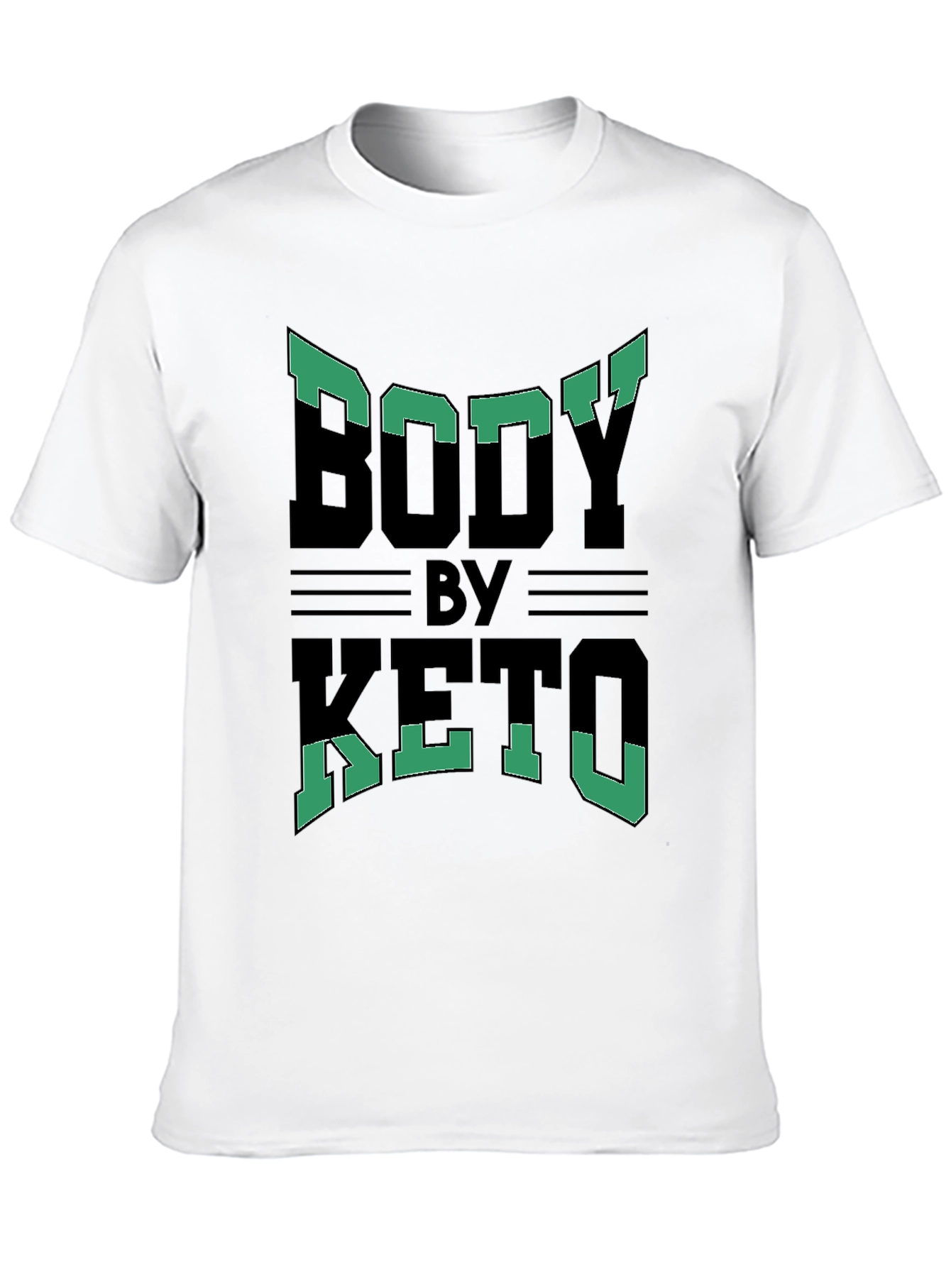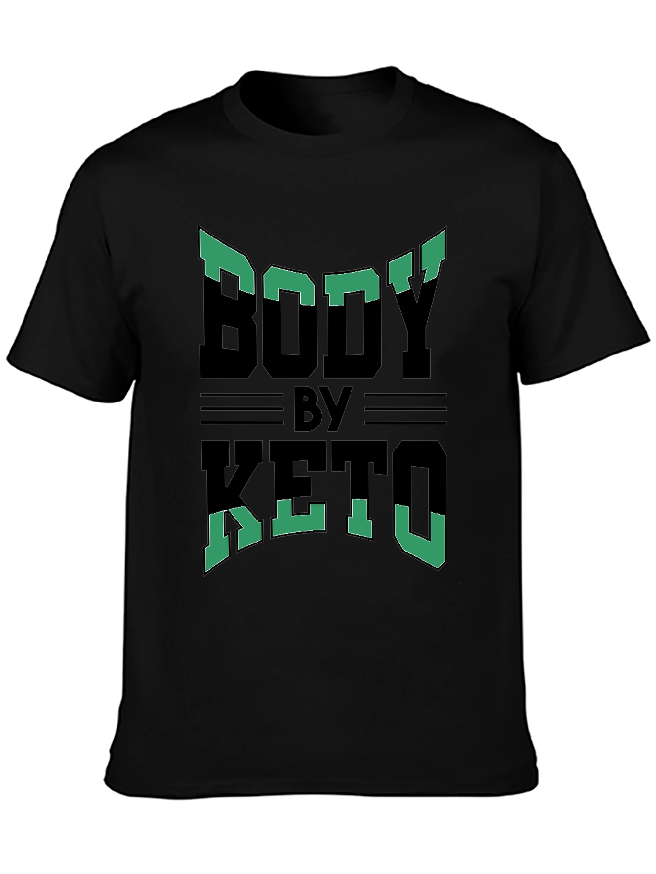 Luce un estilo moderno y divertido con esta camiseta negra de hombre. El diseño presenta la frase "Body By Keto" en una tipografía llamativa, con detalles en color verde que resaltan el texto. Perfecta para quienes siguen un estilo de vida cetogénico o simplemente disfrutan de diseños originales. Fabricada con materiales cómodos y duraderos, esta camiseta es ideal para uso diario, entrenamientos o para destacar en eventos casuales. Combínala con tus jeans o shorts favoritos para un look relajado pero con estilo. ¡Muestra tu pasión por el bienestar y la buena alimentación con esta prenda única!
