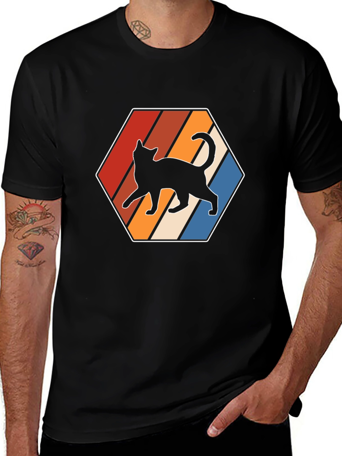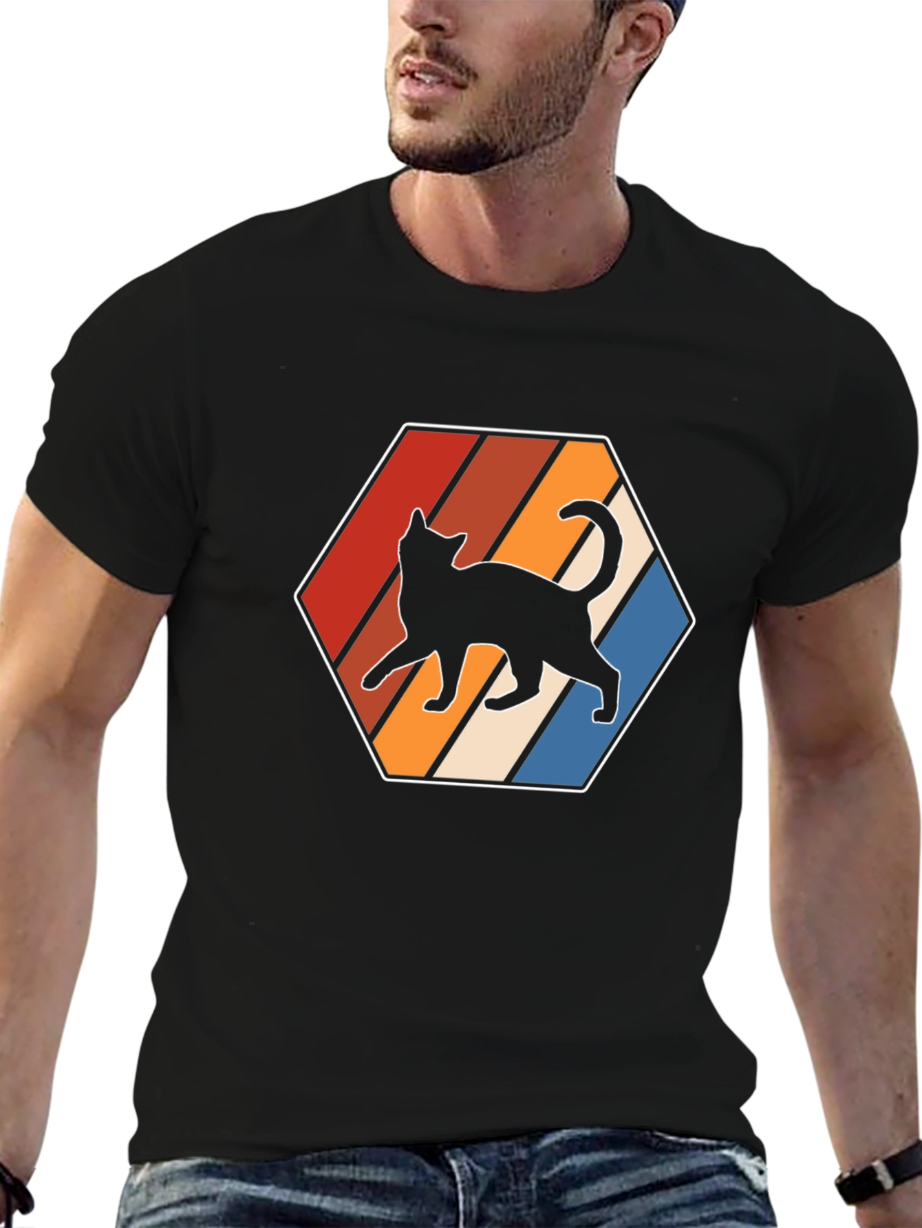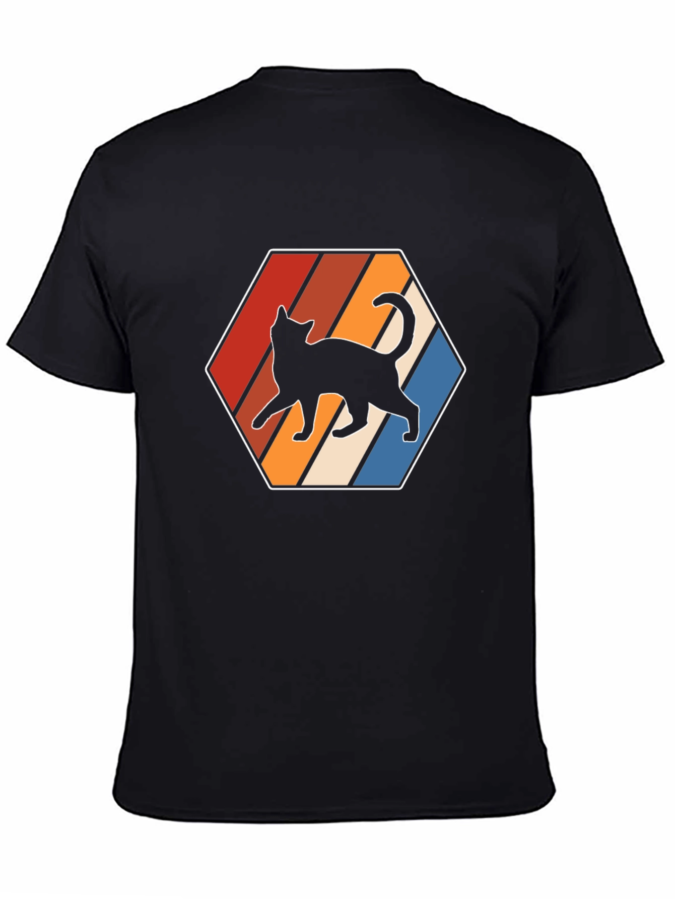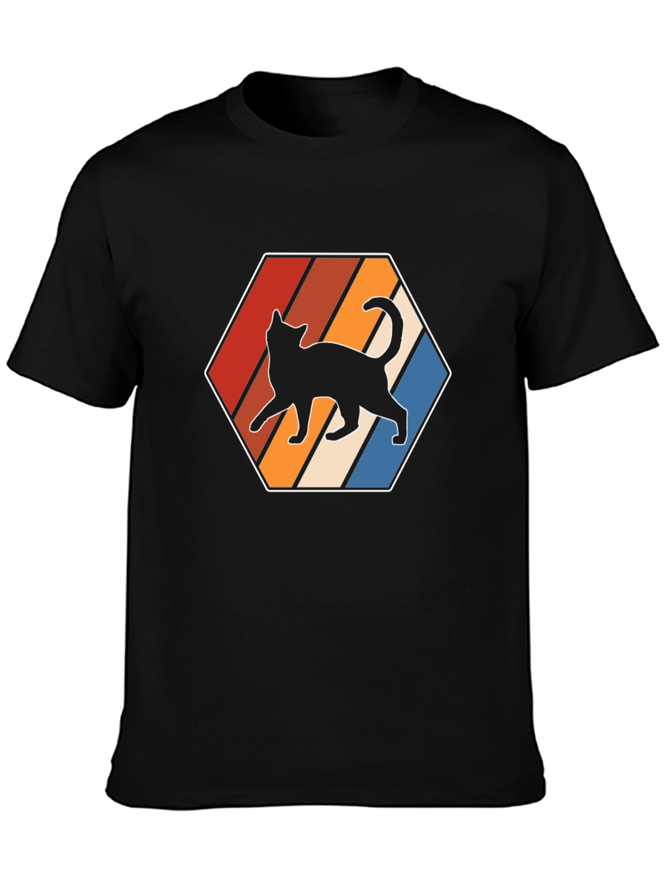 Camiseta Hombre Diseño Gato Retro Hexagonal