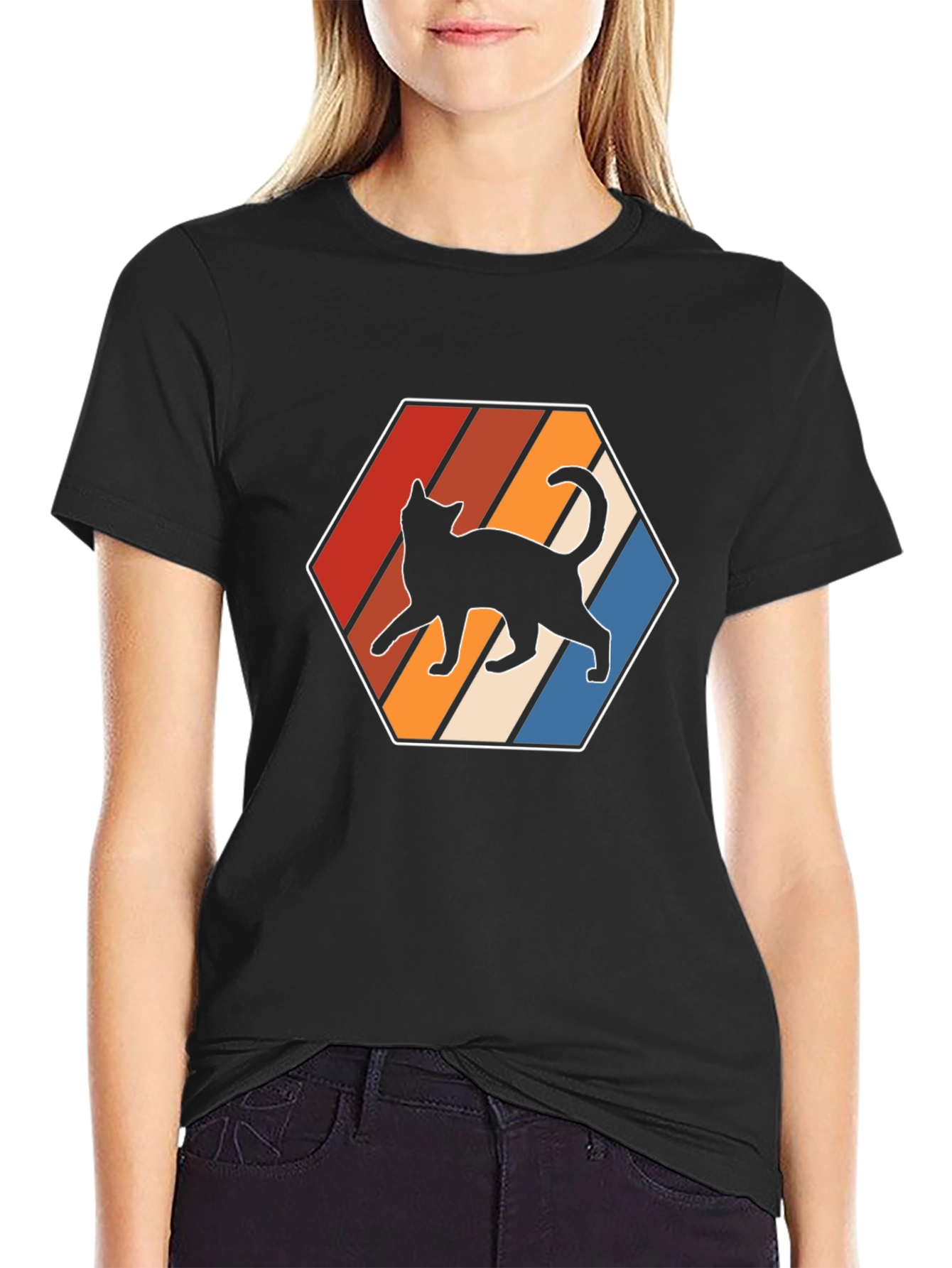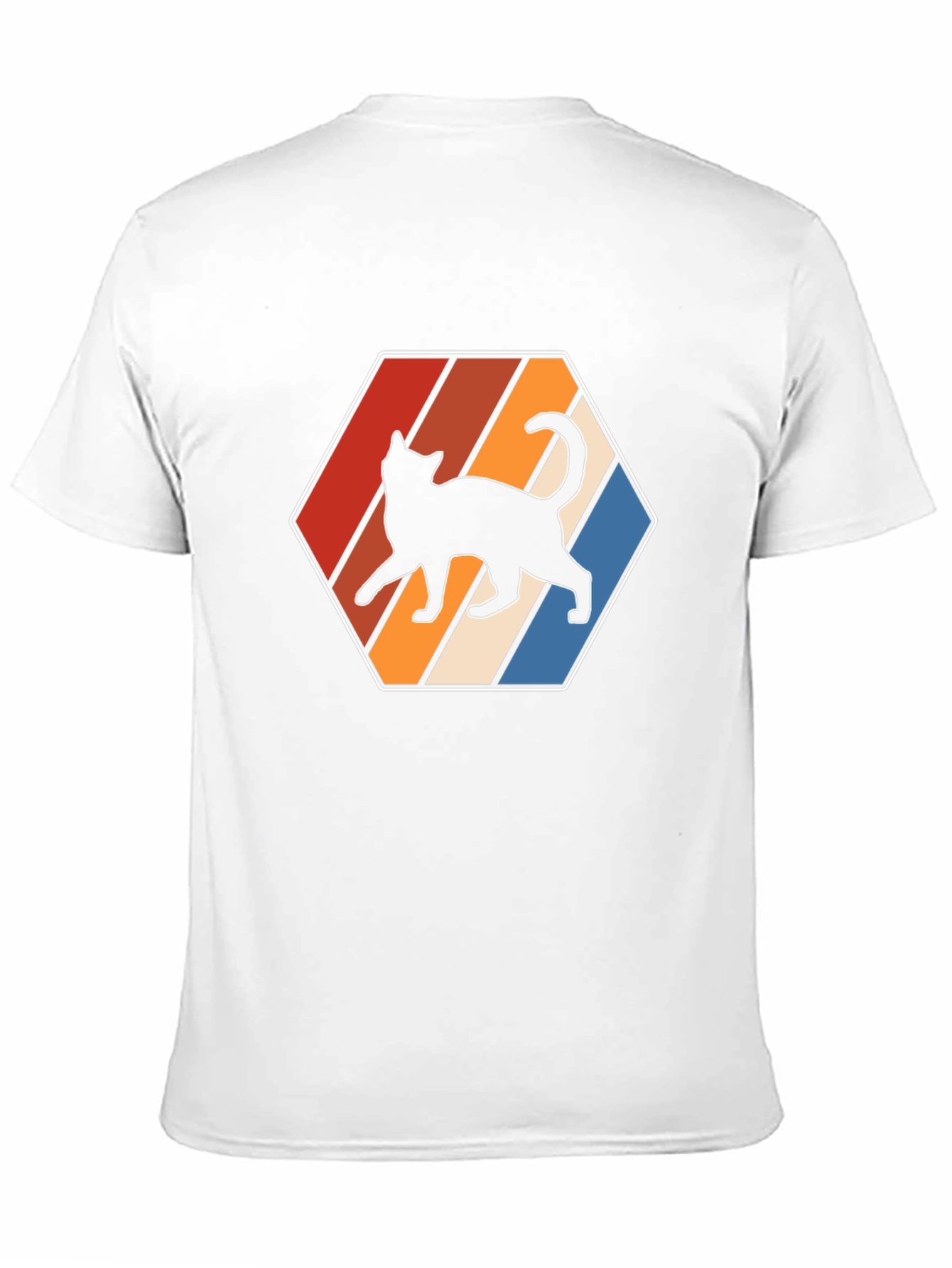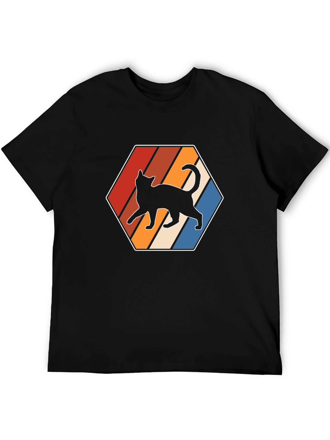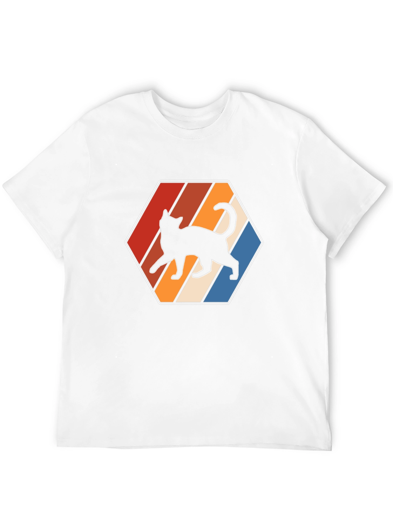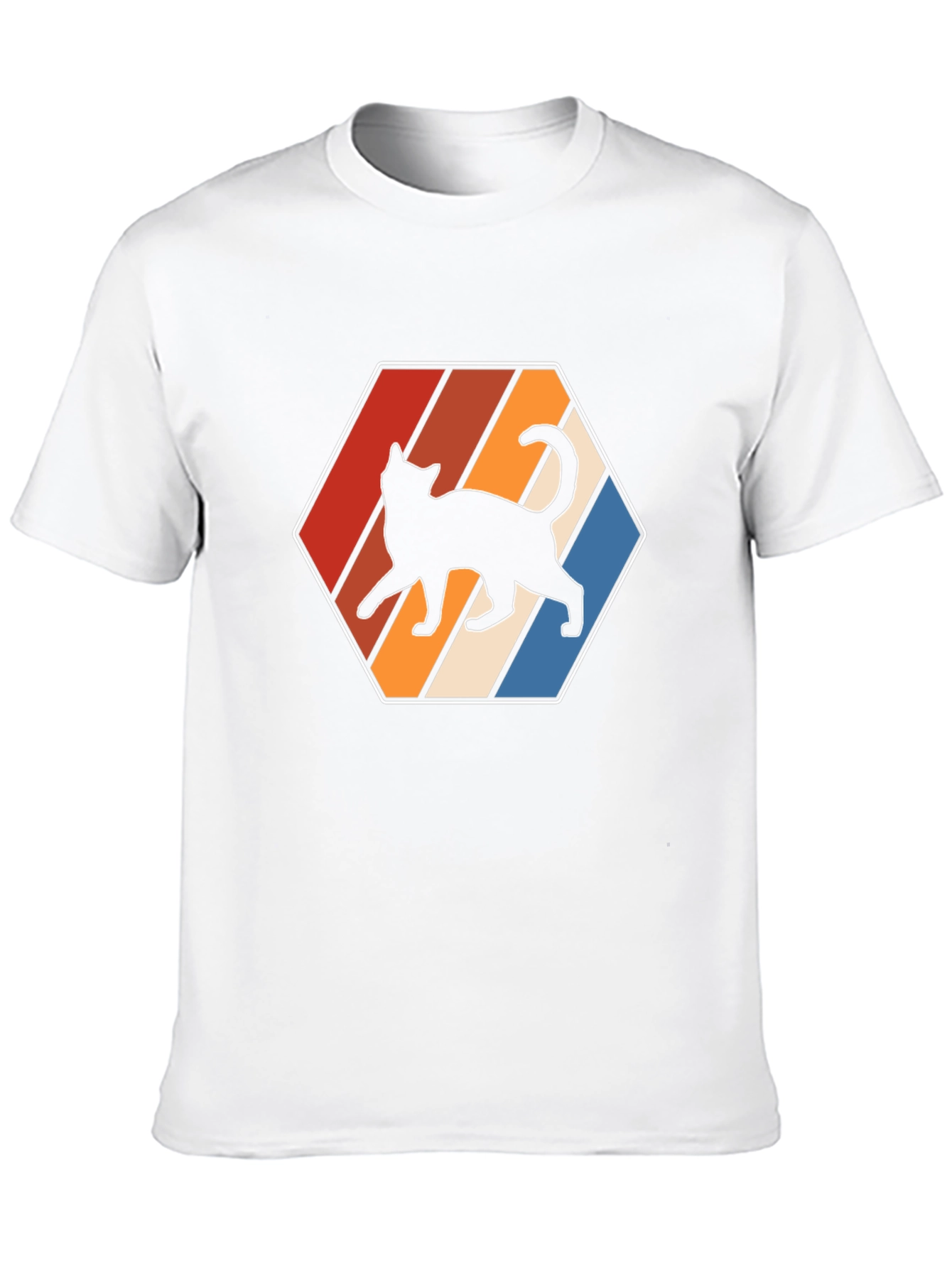 Camiseta Hombre Diseño Gato Retro Hexagonal
