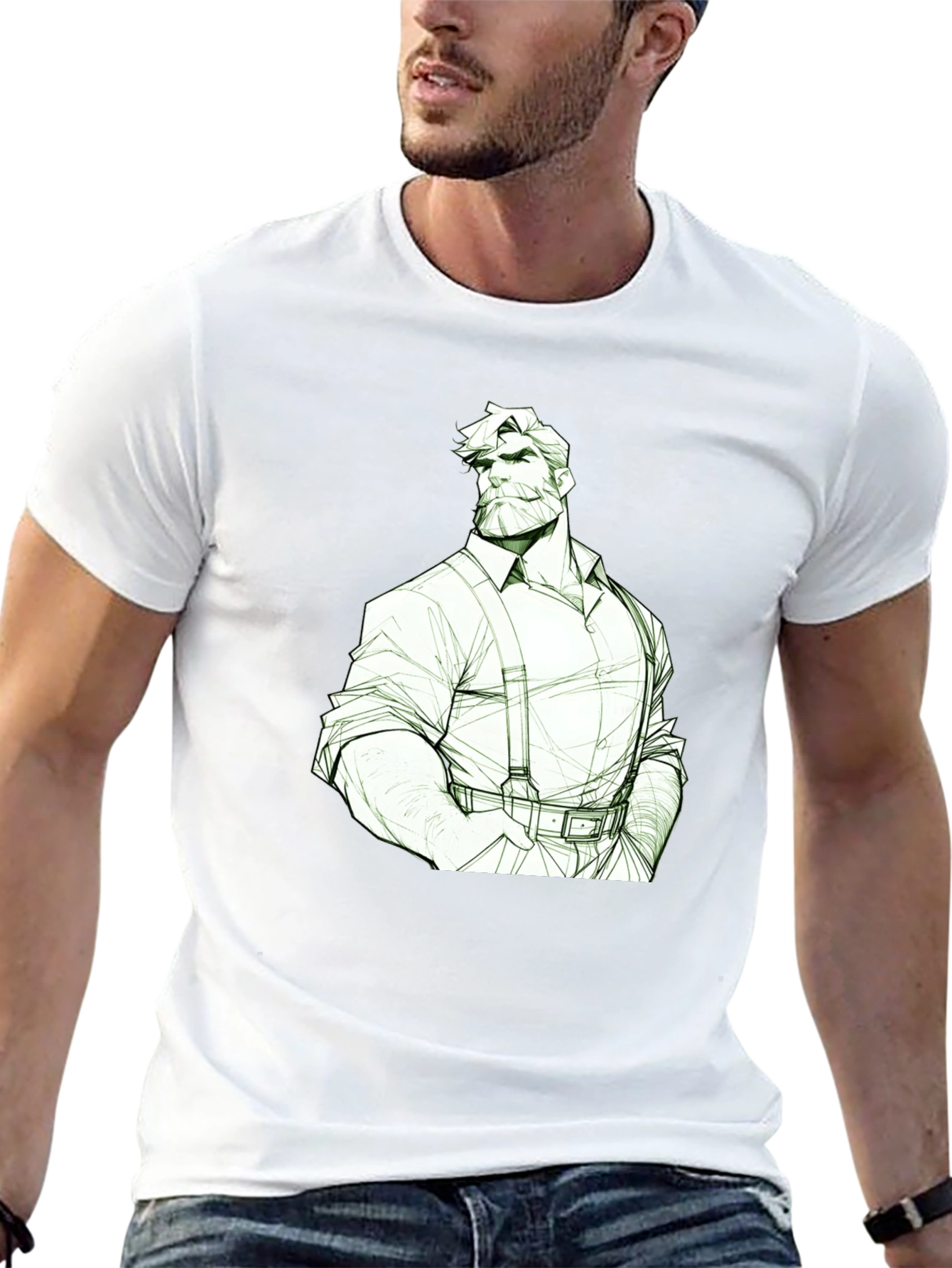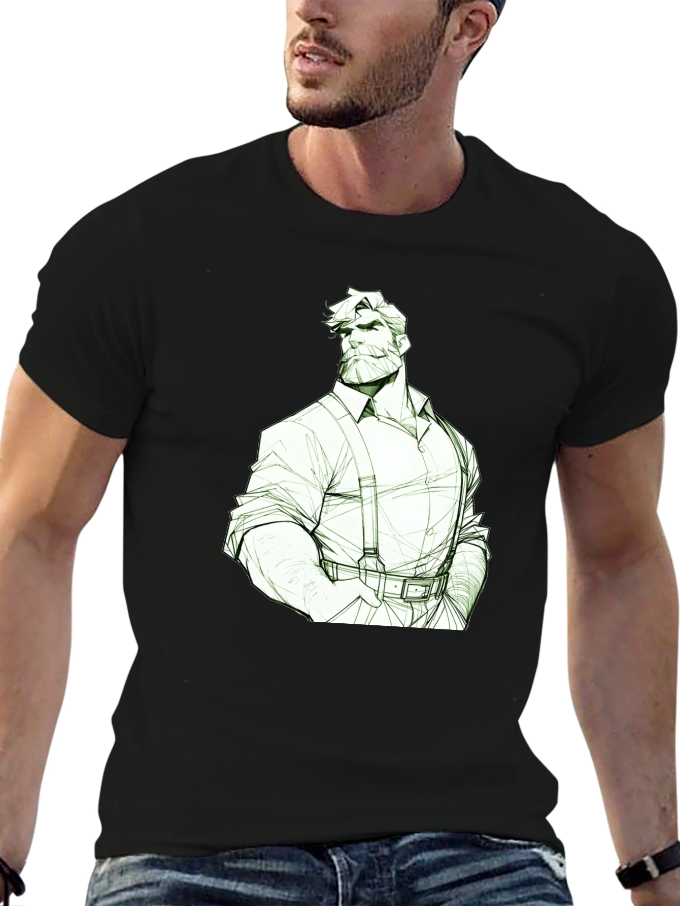 Esta camiseta negra para hombre presenta un diseño gráfico único y estilizado de un leñador o trabajador de la madera. El dibujo, en tonos claros, destaca sobre el fondo oscuro de la camiseta, creando un contraste llamativo. El diseño captura la esencia de la figura masculina clásica con un toque moderno. Ideal para quienes aprecian la moda con personalidad y un estilo retro-chic. Perfecta para uso diario, salidas casuales o como una declaración de estilo audaz. ¡Añade un toque distintivo a tu guardarropa con esta camiseta única!