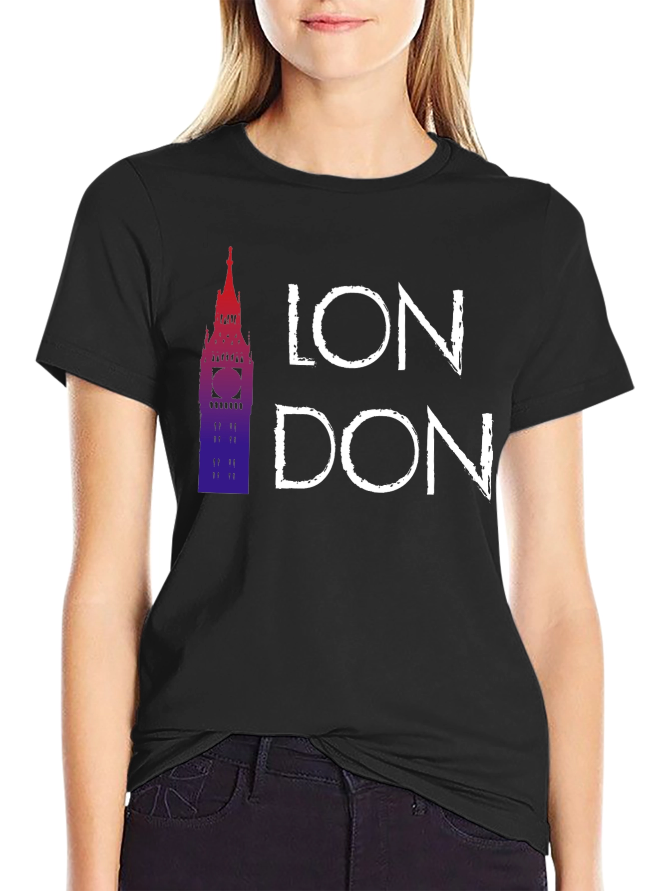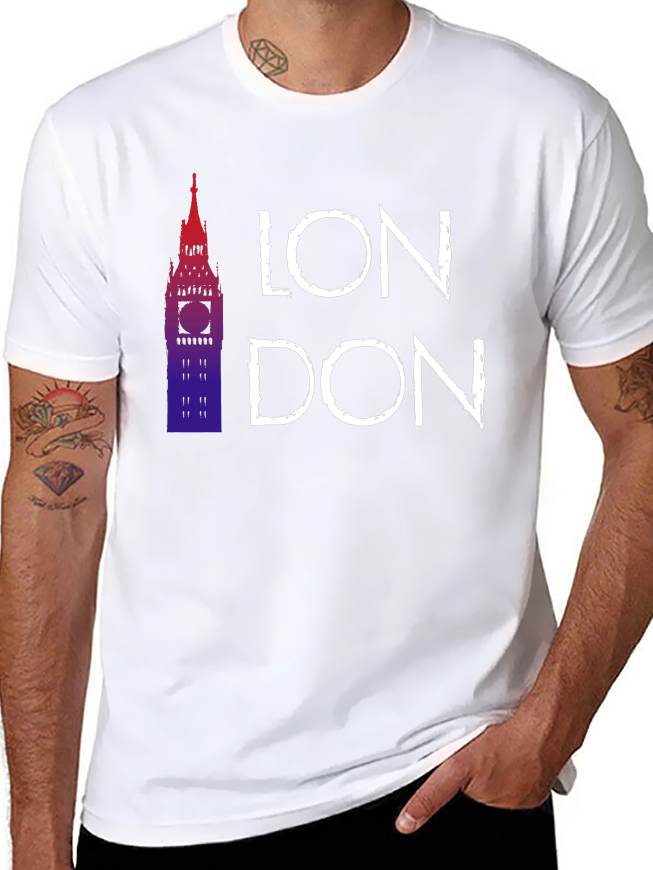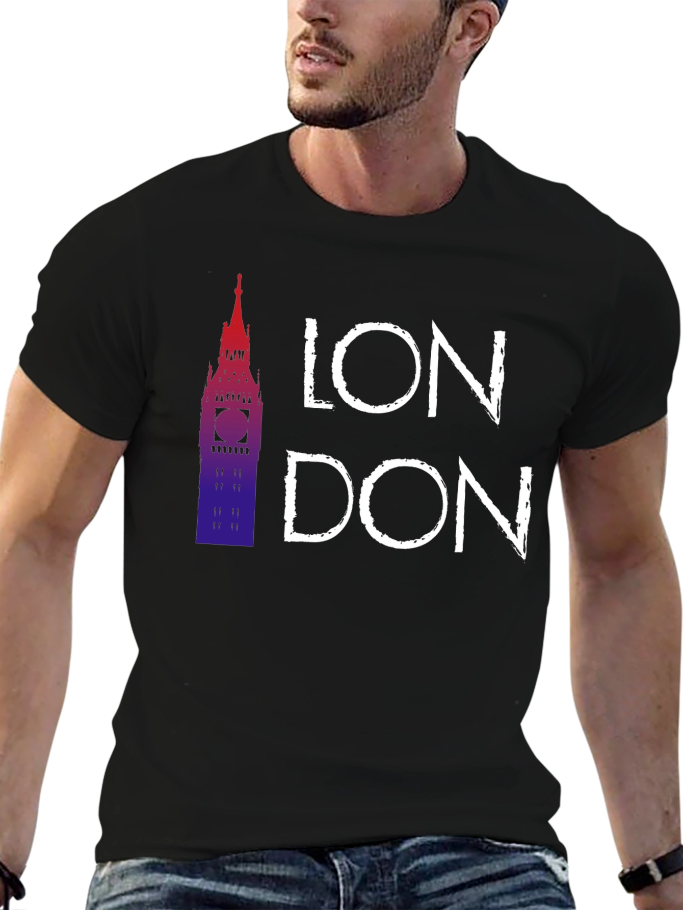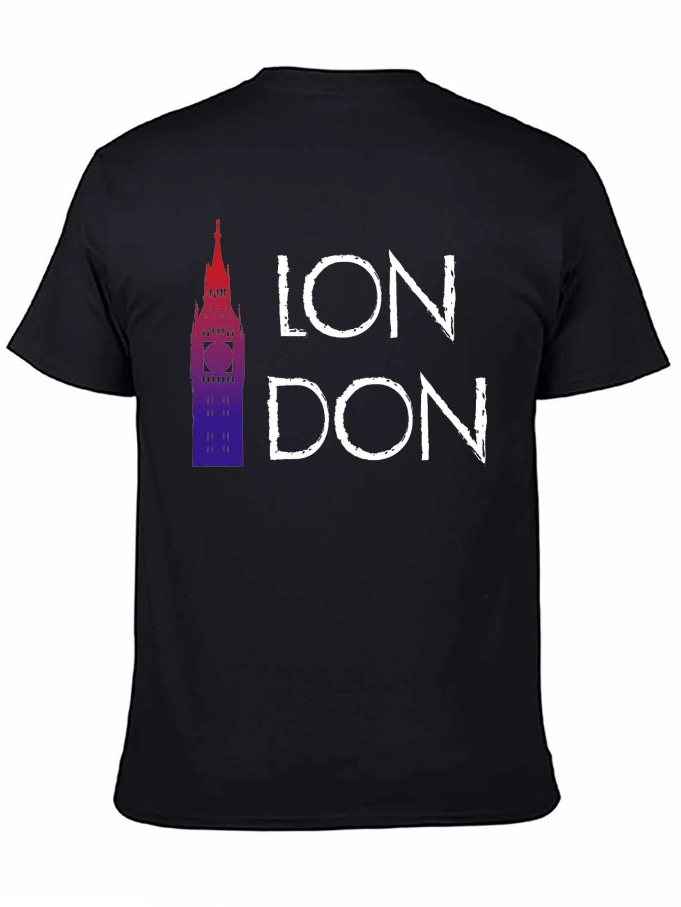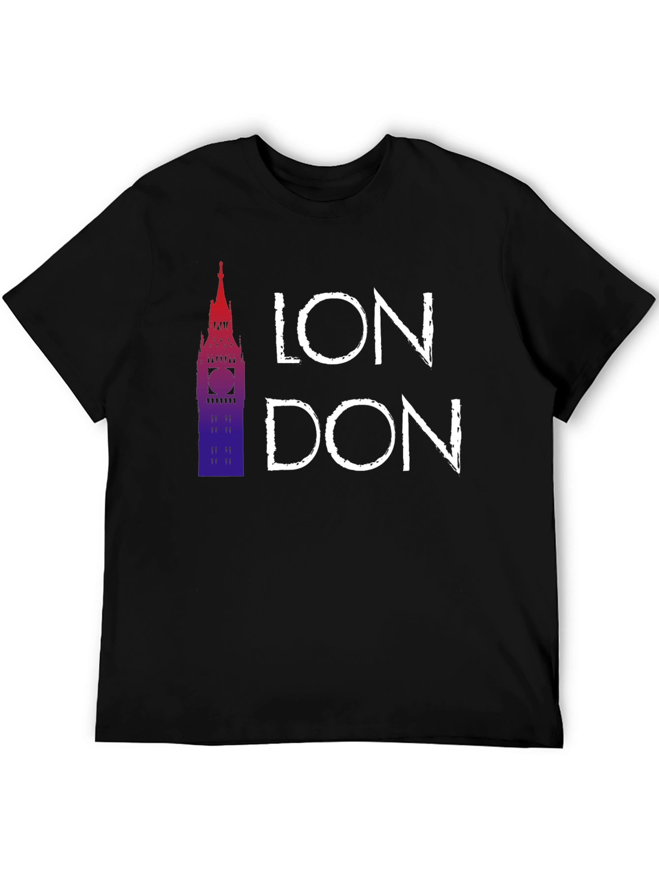 Luce con estilo esta camiseta negra para hombre con un diseño moderno y llamativo. Presenta un gráfico del Big Ben en tonos degradados rojizos y azules, acompañado del nombre "LONDON" en letras blancas de estilo urbano. Fabricada con un tejido suave y confortable, esta camiseta es perfecta para llevar en el día a día, ya sea para un look casual o para mostrar tu amor por la ciudad de Londres. Ideal para combinar con vaqueros, pantalones cortos o incluso una chaqueta. Un imprescindible en tu armario.