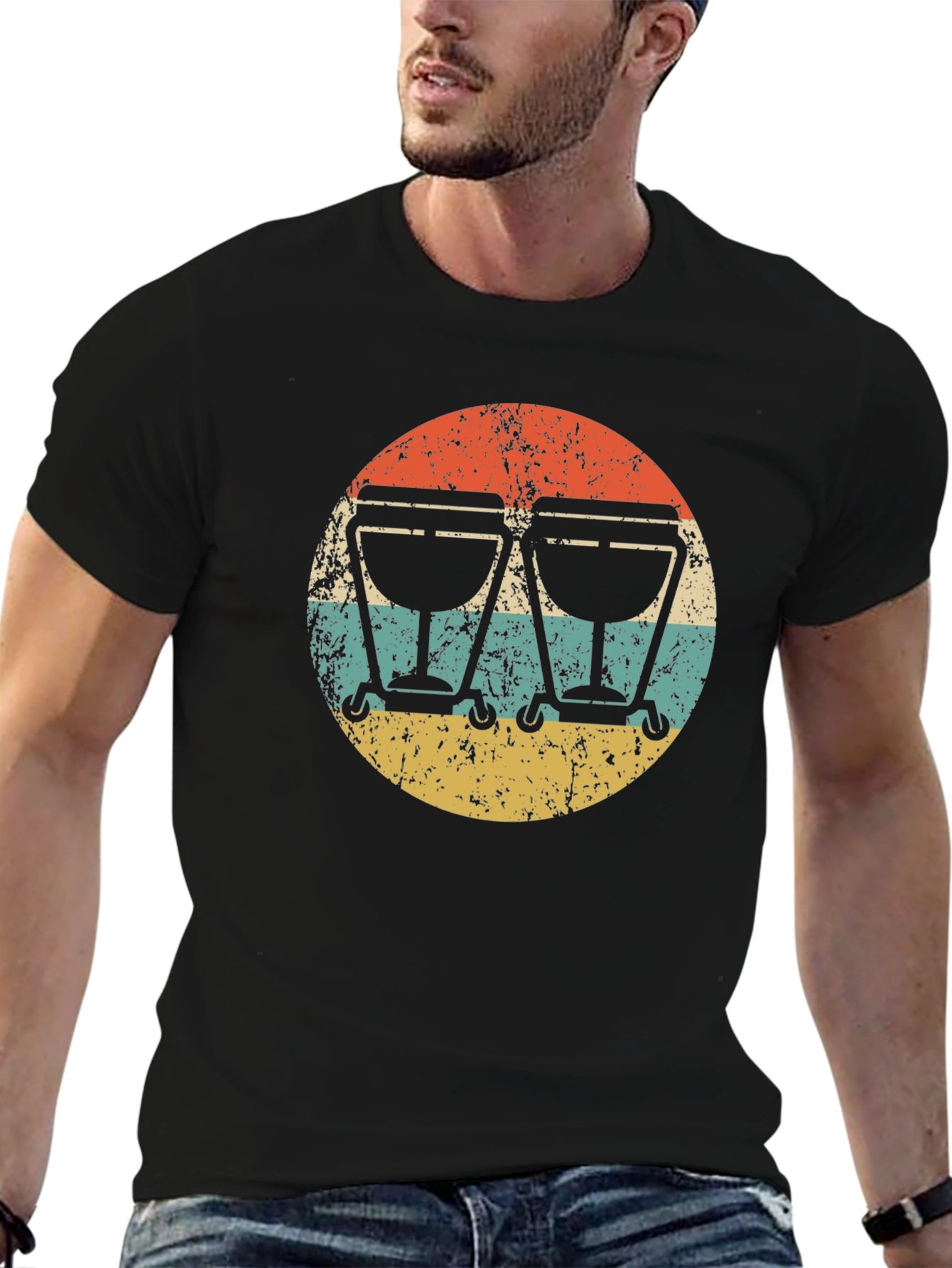 Esta camiseta negra para hombre presenta un diseño retro y llamativo de bongos en un círculo con textura vintage. El estampado combina colores naranja, azul y amarillo, creando un efecto desgastado que le da un toque único y auténtico. Perfecta para amantes de la música latina, percusionistas o cualquiera que aprecie el estilo retro y original. Ideal para llevar en conciertos, reuniones con amigos o simplemente para expresar tu pasión por la música. Fabricada con materiales suaves y cómodos, esta camiseta te asegura un ajuste perfecto y durabilidad. Destaca entre la multitud con esta prenda llena de ritmo y estilo.