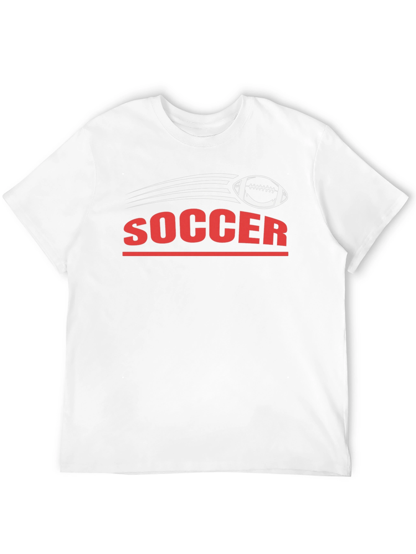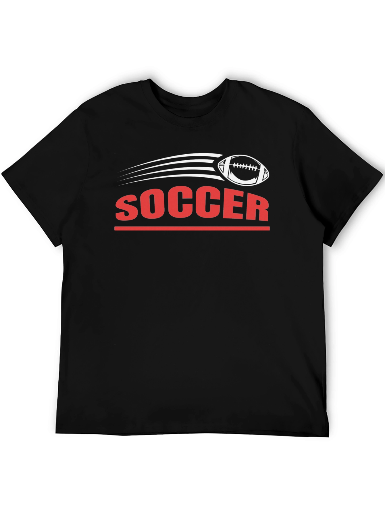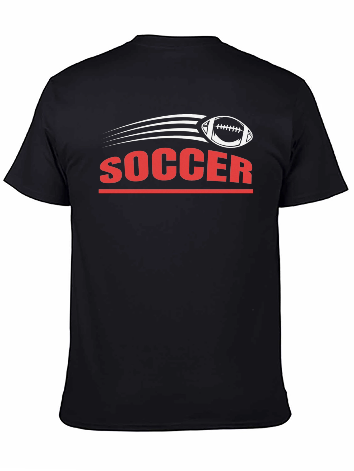 Presentamos esta moderna camiseta negra para hombre, perfecta para los amantes del fútbol americano con un toque de estilo casual. Confeccionada en un tejido suave y cómodo, esta camiseta presenta un llamativo diseño gráfico frontal. La palabra "SOCCER" destaca en rojo audaz, subrayada por una línea horizontal del mismo color para un efecto visual impactante. Encima, un balón de fútbol americano blanco con líneas de movimiento añade dinamismo al diseño. Ideal para llevar en eventos deportivos, salidas informales o simplemente para expresar tu pasión por el juego con estilo y comodidad.