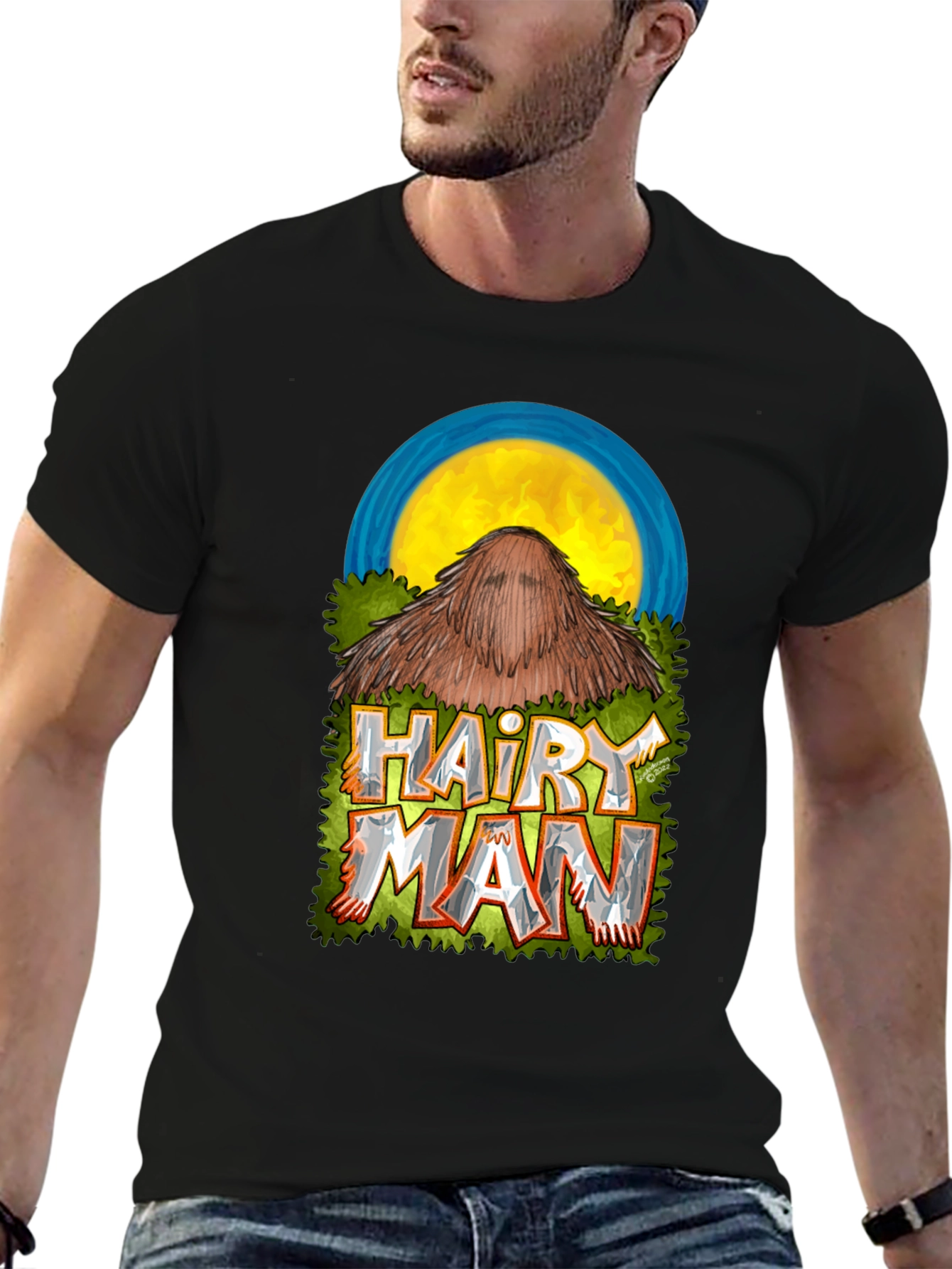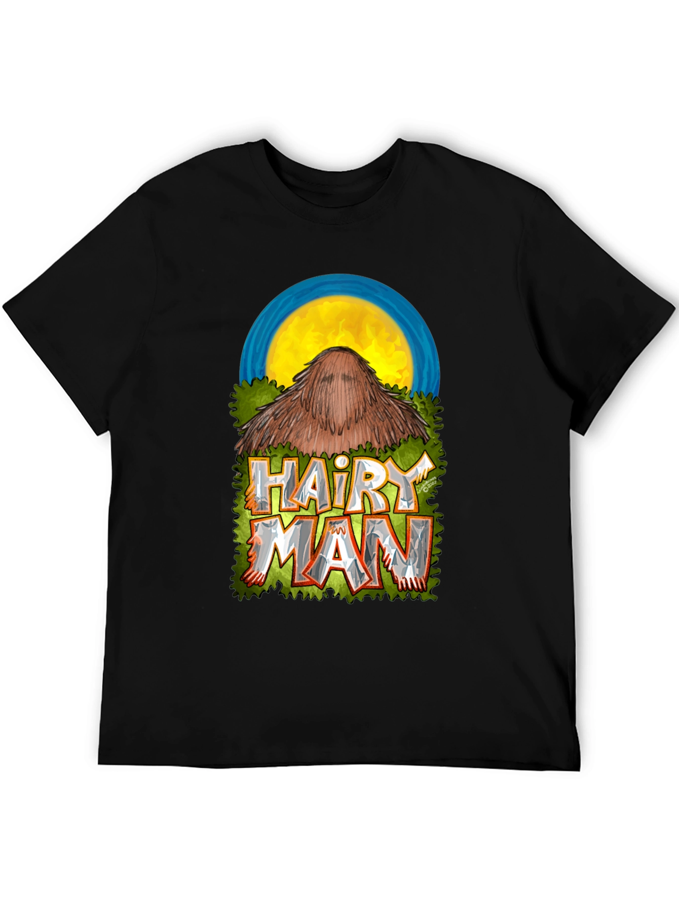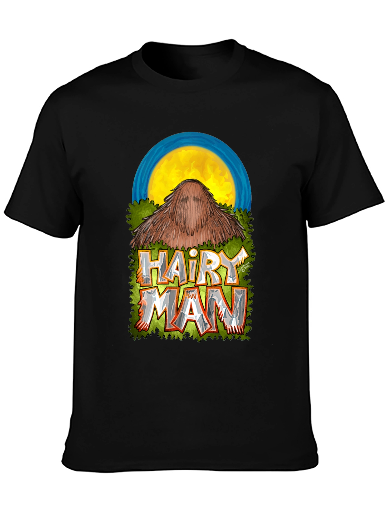 Muestra tu lado divertido con esta camiseta negra para hombre. Presenta un diseño audaz y llamativo del “Hairy Man” sobre un fondo de luna llena y follaje verde, perfecto para destacar entre la multitud. La impresión de alta calidad asegura que los colores se mantengan vibrantes lavado tras lavado. Ideal para uso casual, eventos temáticos o como un regalo original. Fabricada con materiales suaves y cómodos, esta camiseta te ofrece estilo y confort en cada uso. ¡Añade un toque de humor y singularidad a tu guardarropa!