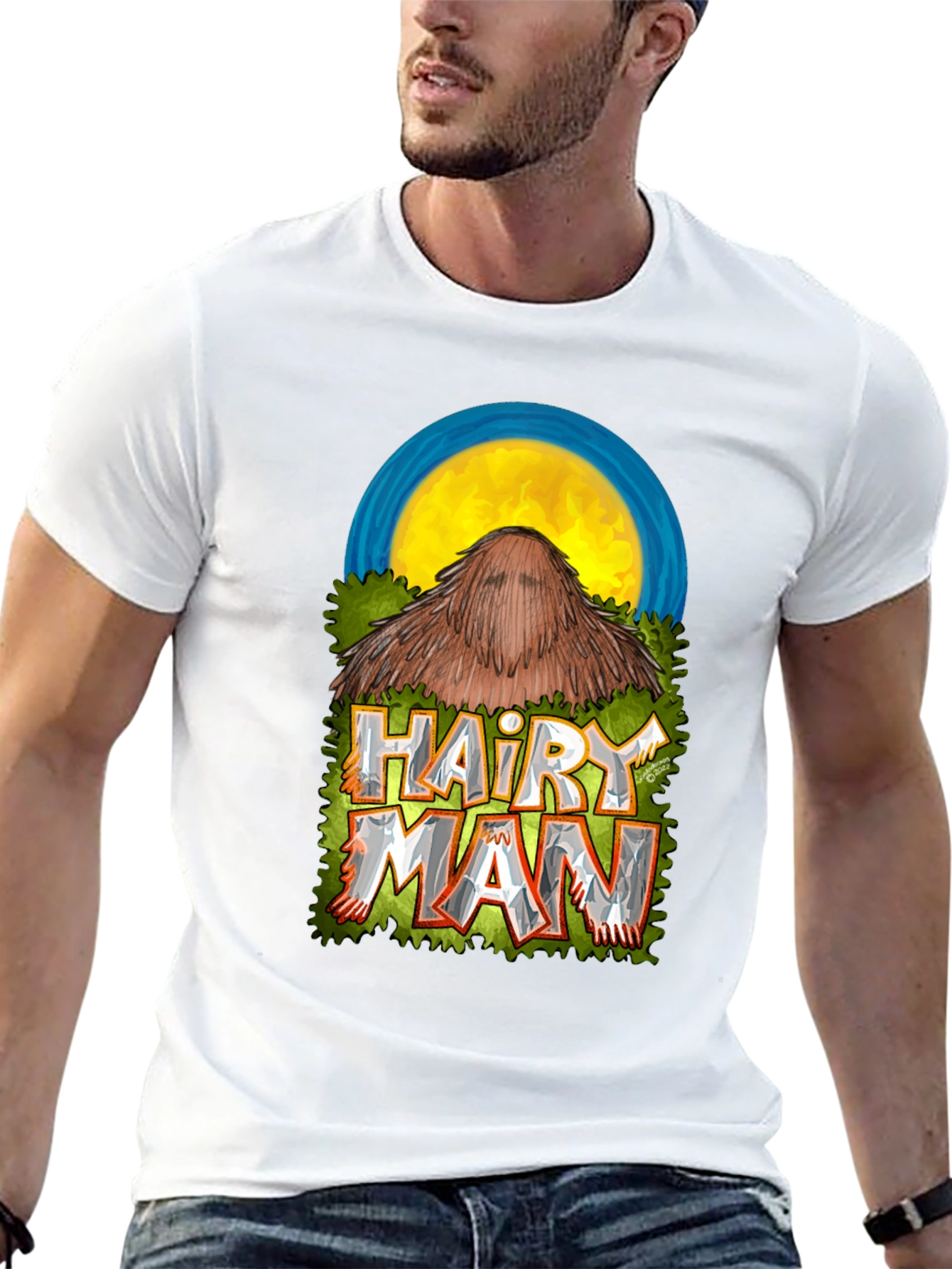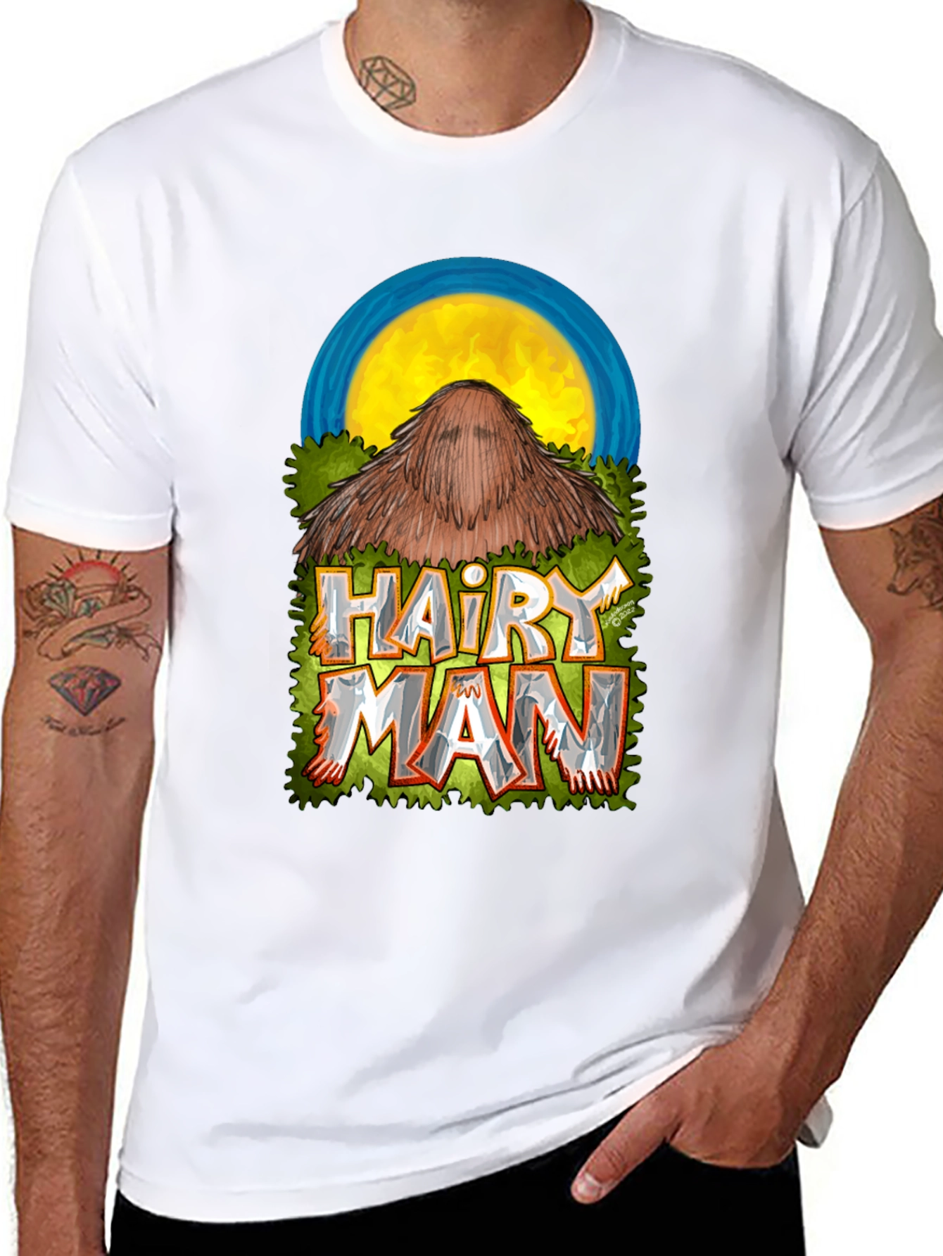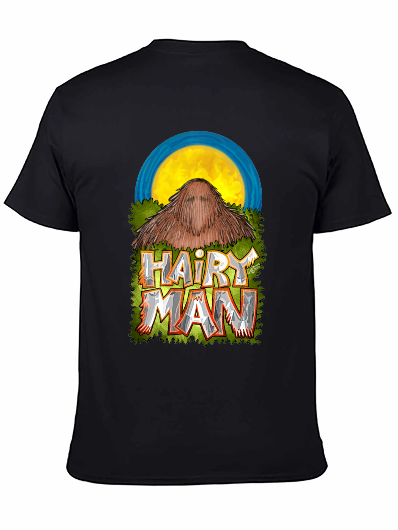 Muestra tu lado divertido con esta camiseta negra para hombre. Presenta un diseño audaz y llamativo del “Hairy Man” sobre un fondo de luna llena y follaje verde, perfecto para destacar entre la multitud. La impresión de alta calidad asegura que los colores se mantengan vibrantes lavado tras lavado. Ideal para uso casual, eventos temáticos o como un regalo original. Fabricada con materiales suaves y cómodos, esta camiseta te ofrece estilo y confort en cada uso. ¡Añade un toque de humor y singularidad a tu guardarropa!