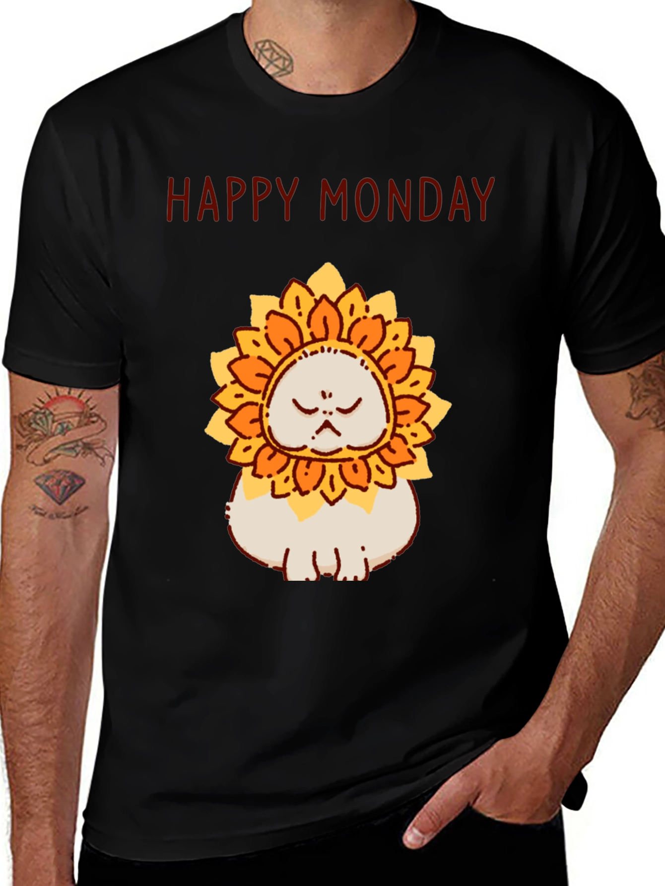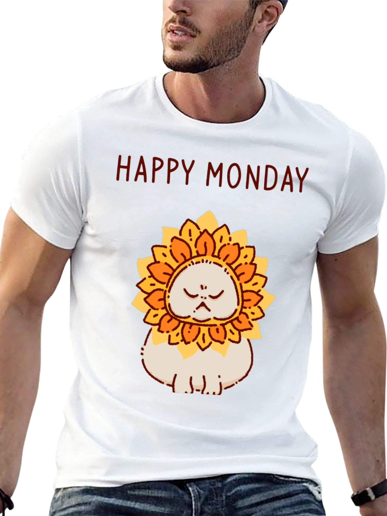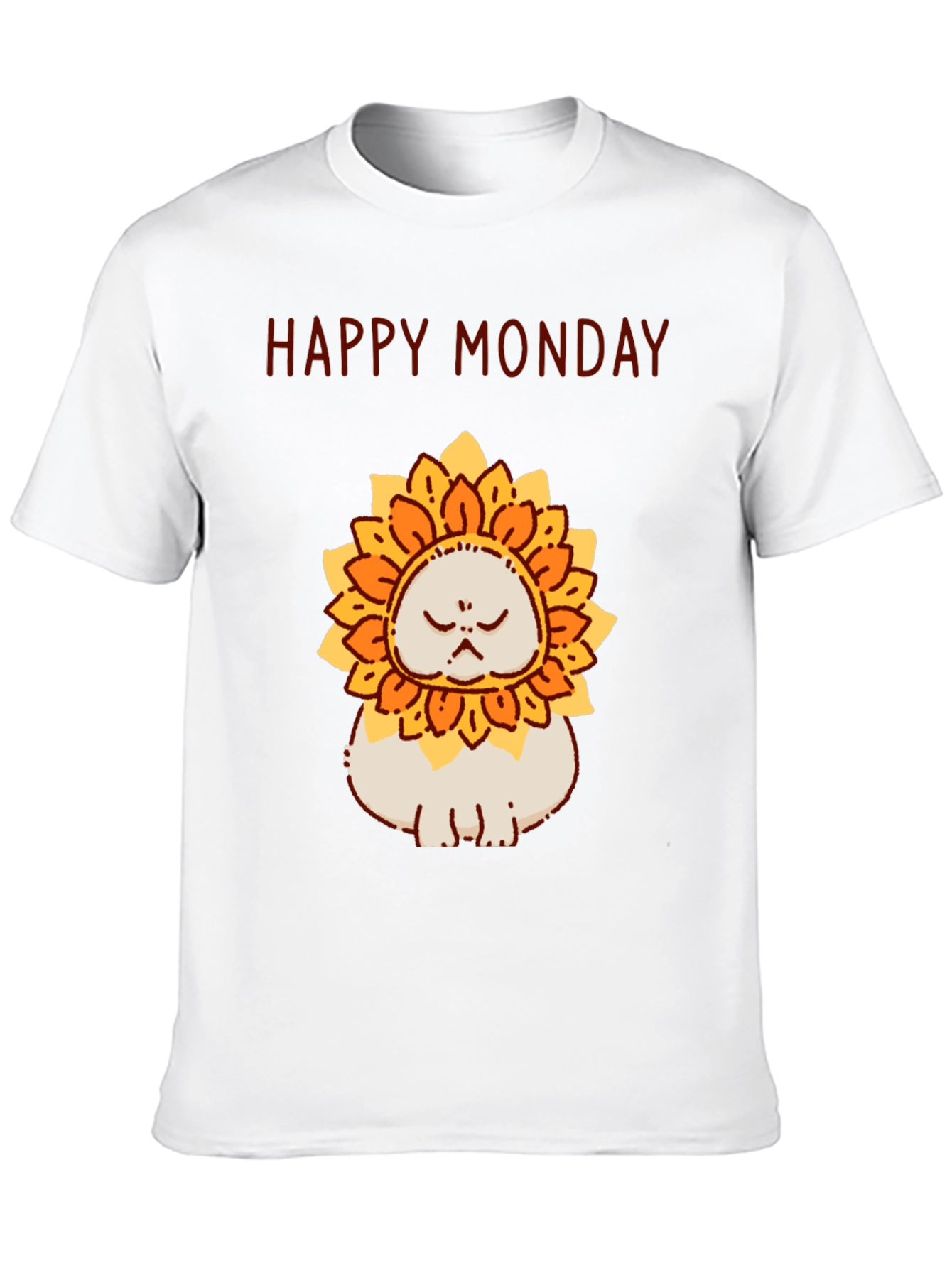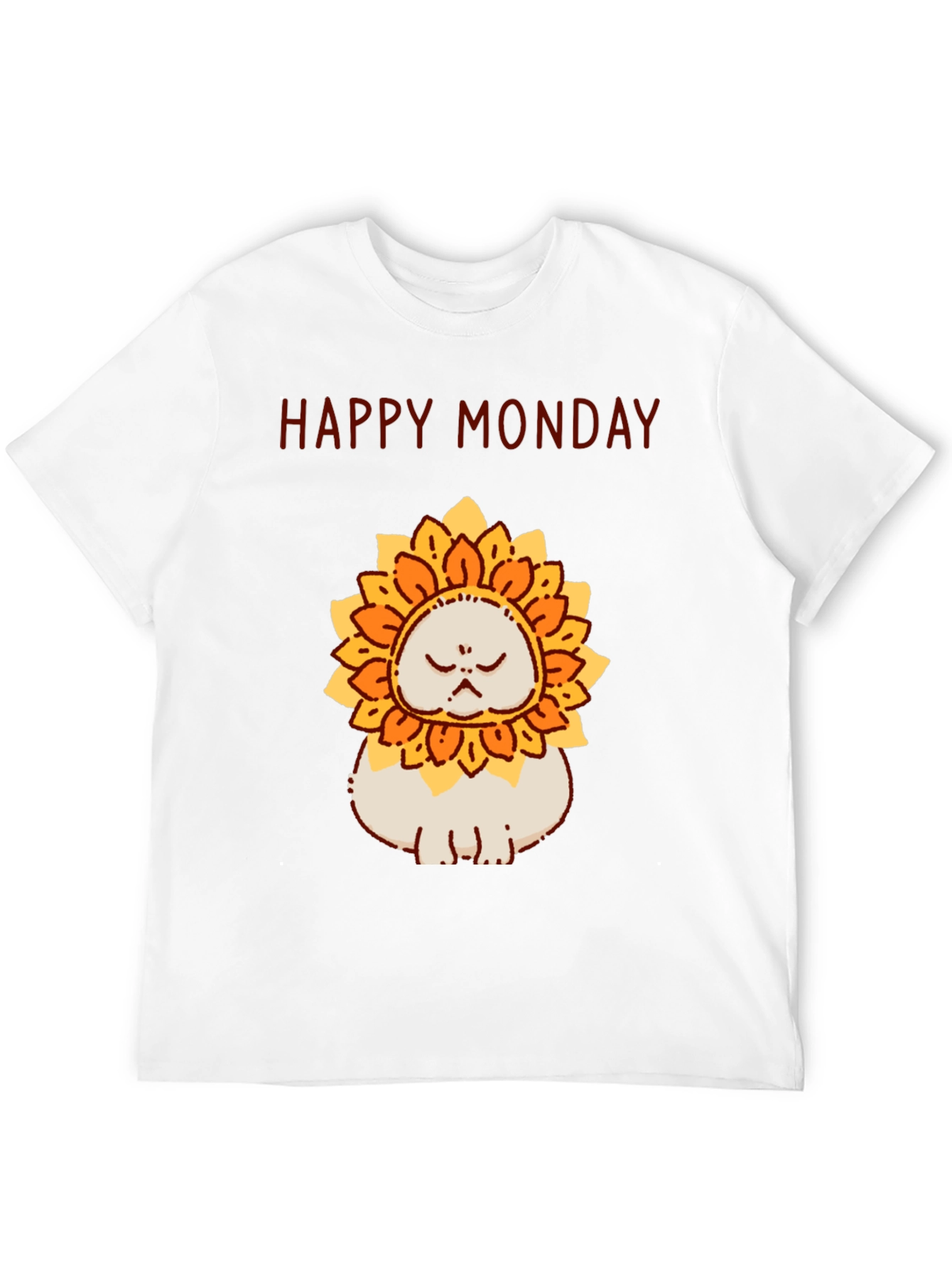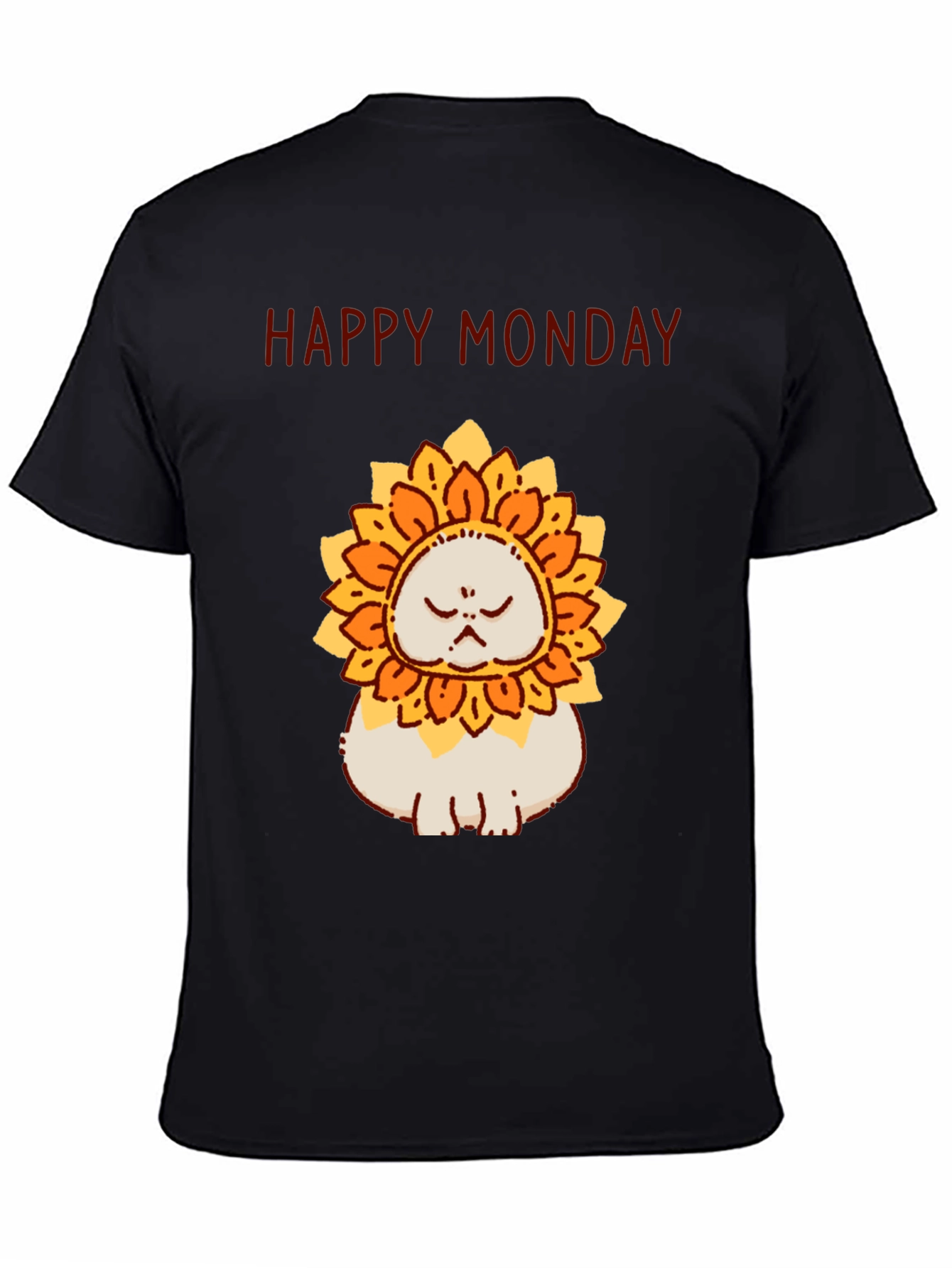 Camiseta Hombre Happy Monday Gato-Girasol Divertida