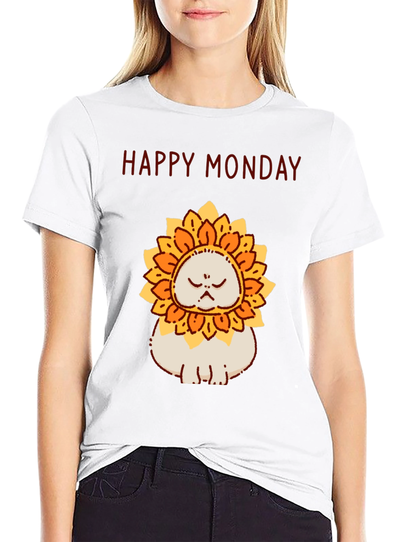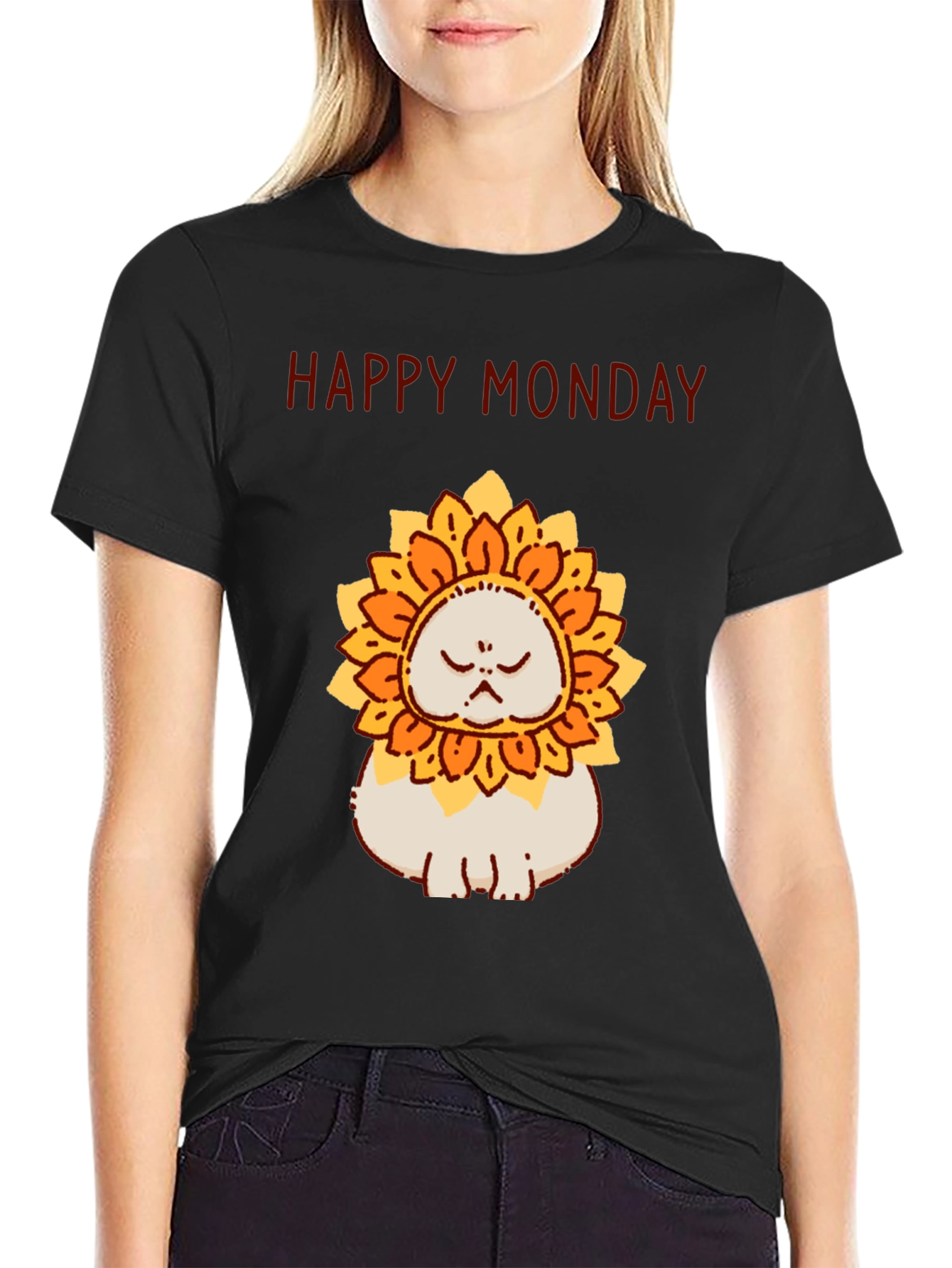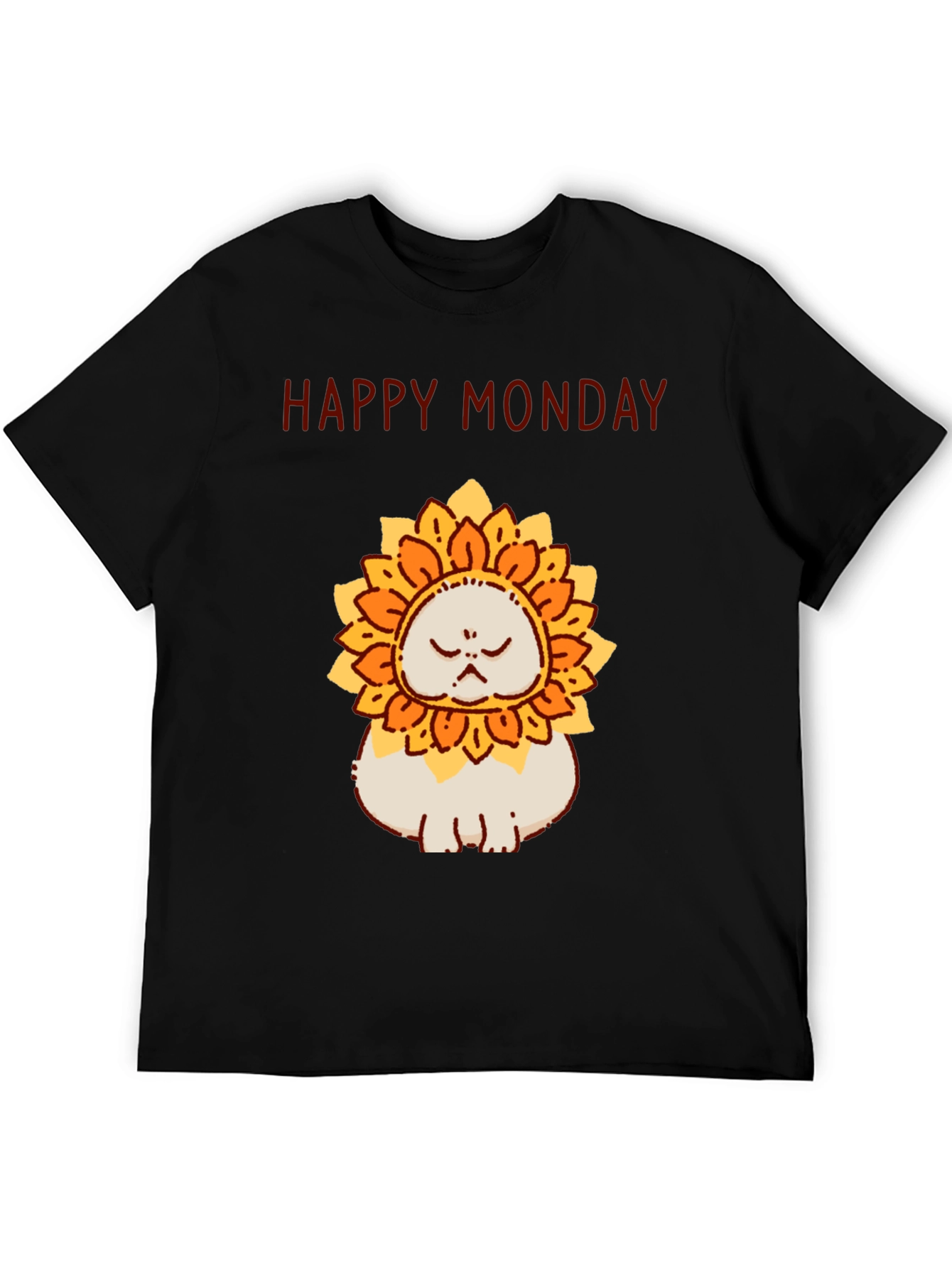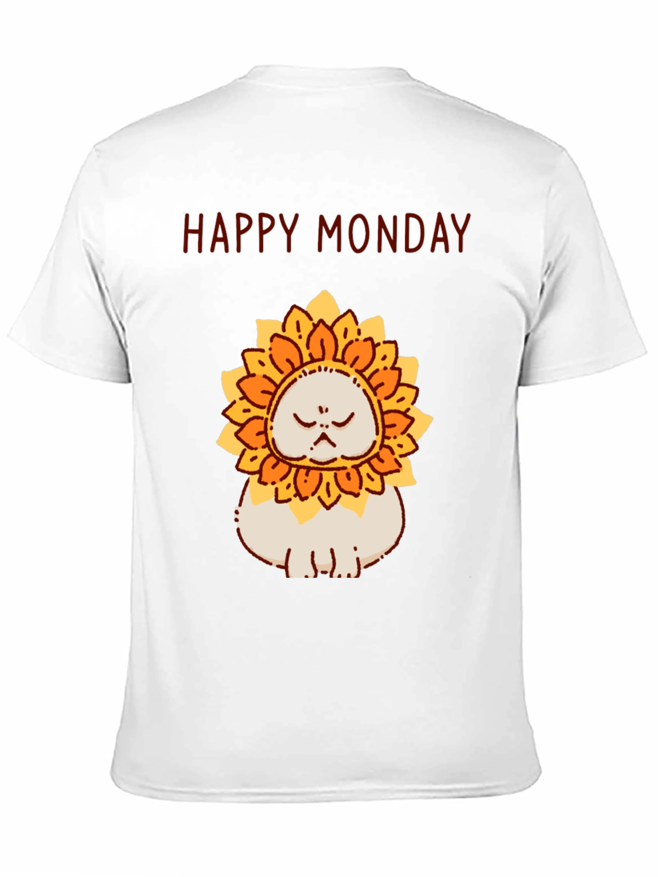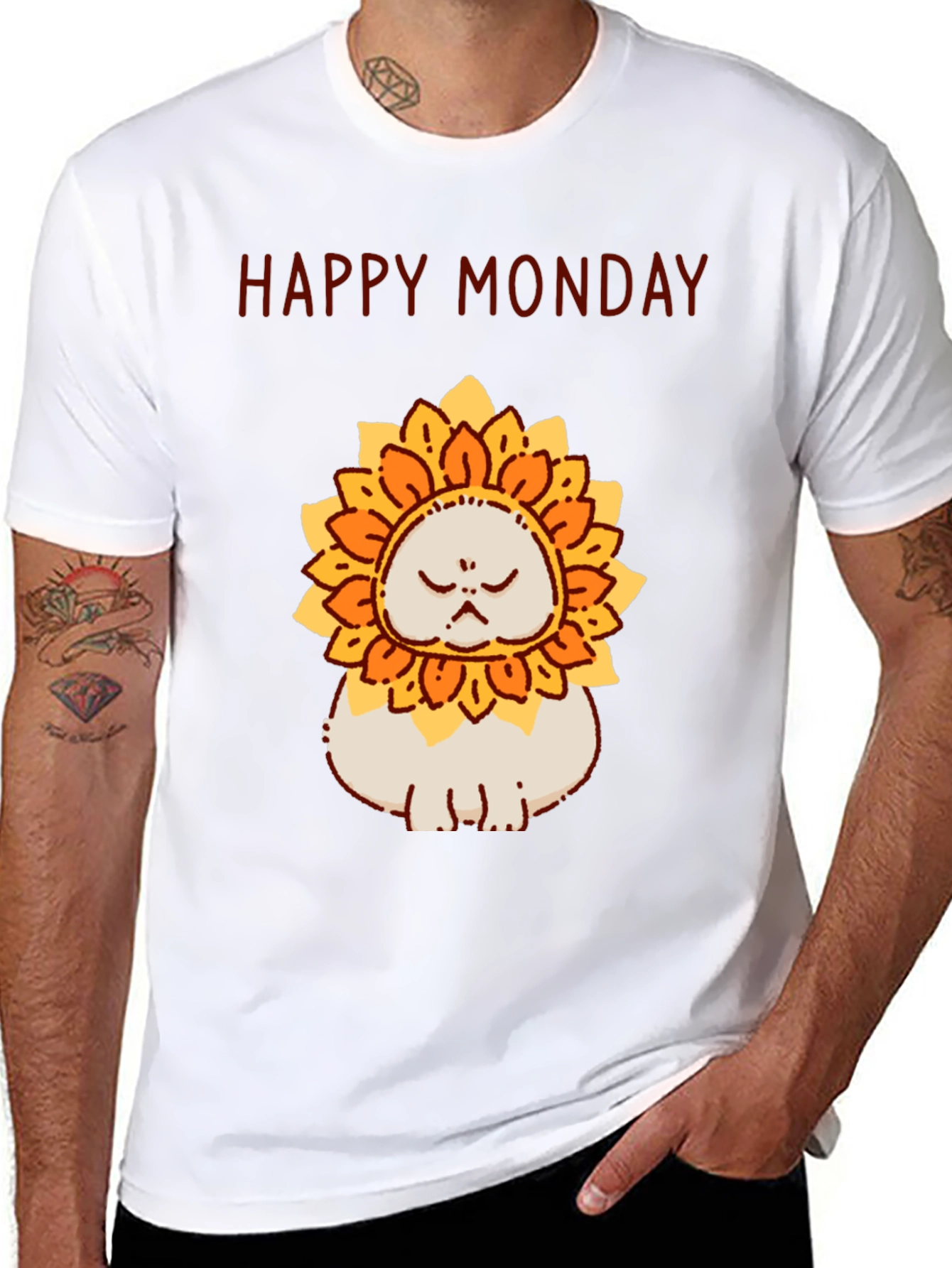 Camiseta Hombre Happy Monday Gato-Girasol Divertida