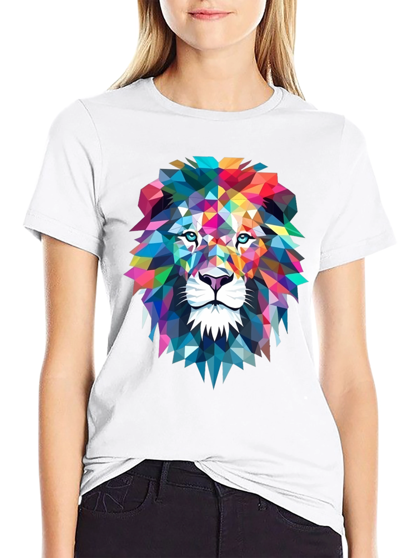 Eleva tu estilo con esta llamativa camiseta para hombre. Presenta un diseño geométrico vibrante de la cabeza de un león, con una paleta de colores moderna y atractiva. La camiseta es de color negro, lo que proporciona un fondo elegante que resalta el diseño del león. Fabricada en un tejido suave y cómodo, ideal para el uso diario. Perfecta para expresar tu individualidad y añadir un toque artístico a tu vestuario. Ideal para un look casual pero con personalidad, combínala con jeans o pantalones deportivos para un estilo único. ¡Consigue esta prenda imprescindible en tu armario!