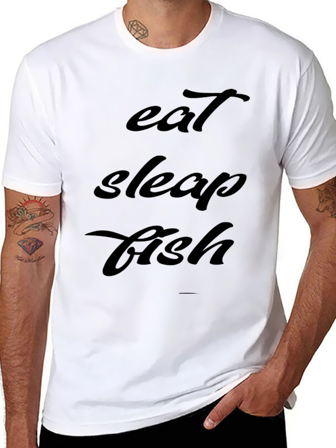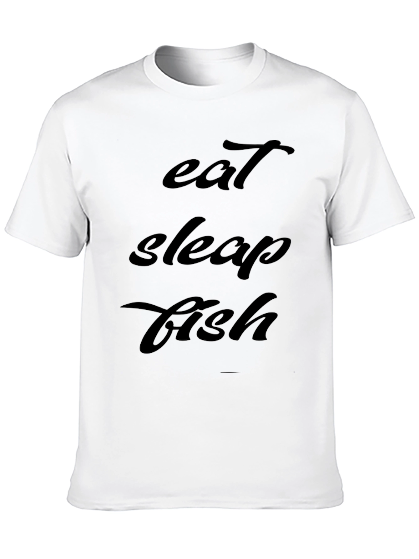 Luce un estilo relajado con esta camiseta negra para hombre. Fabricada en un material suave y cómodo, presenta un diseño con la frase "Eat Sleep Fish" en una tipografía moderna y llamativa. Ideal para los amantes de la pesca y el estilo casual, esta camiseta es perfecta para el día a día, salidas informales o actividades al aire libre. Su corte clásico se adapta a cualquier silueta, ofreciendo comodidad y libertad de movimiento. Combina esta prenda con tus jeans o pantalones favoritos para un look moderno y desenfadado.