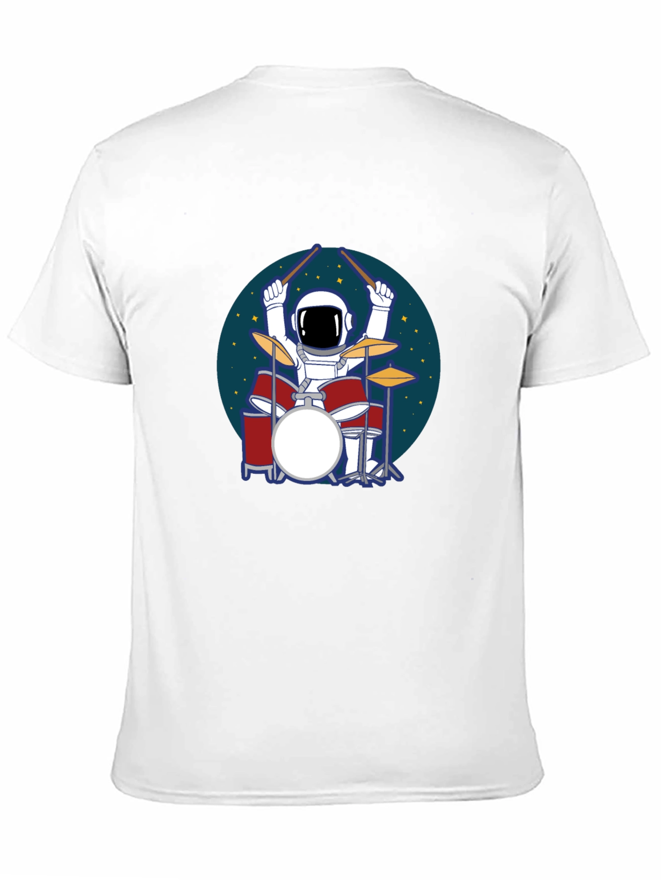 Camiseta Hombre Negra Astronauta Baterista Espacial