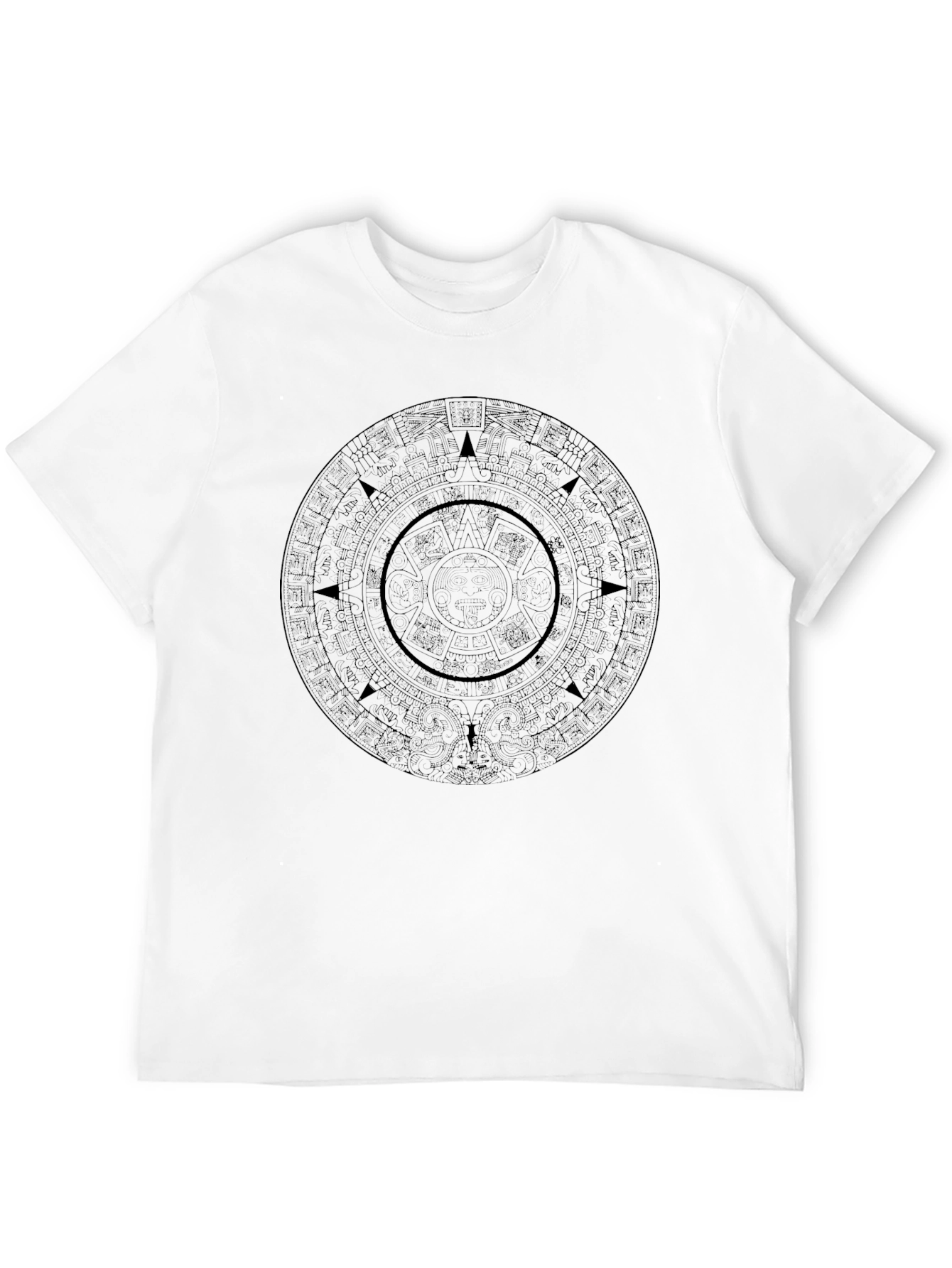 Luce un estilo único con esta camiseta negra para hombre. Presenta un llamativo diseño de calendario azteca en el pecho, que aporta un toque distintivo y original. Fabricada con materiales suaves y confortables, esta camiseta es perfecta para el uso diario, ya sea para salir con amigos o para relajarte en casa. Su corte clásico asegura un ajuste cómodo y favorecedor. Combínala con tus jeans favoritos o pantalones casuales para un look moderno y lleno de personalidad. Ideal para quienes aprecian la cultura y el diseño.