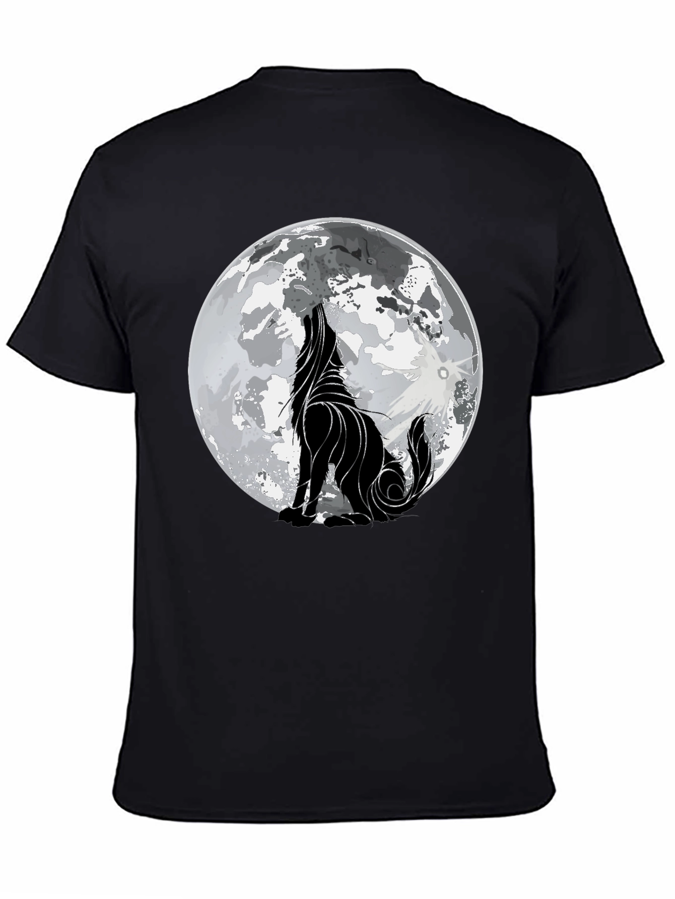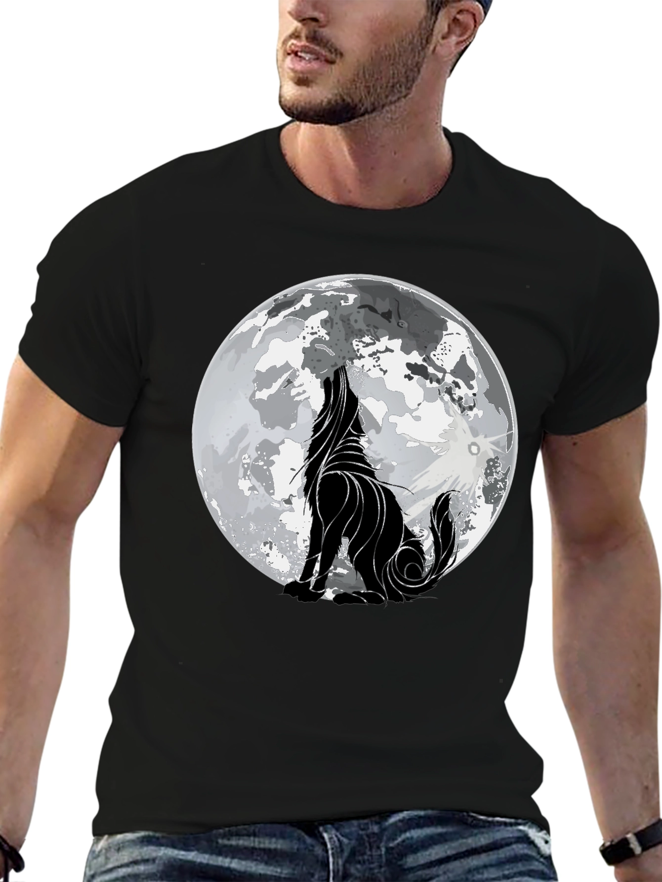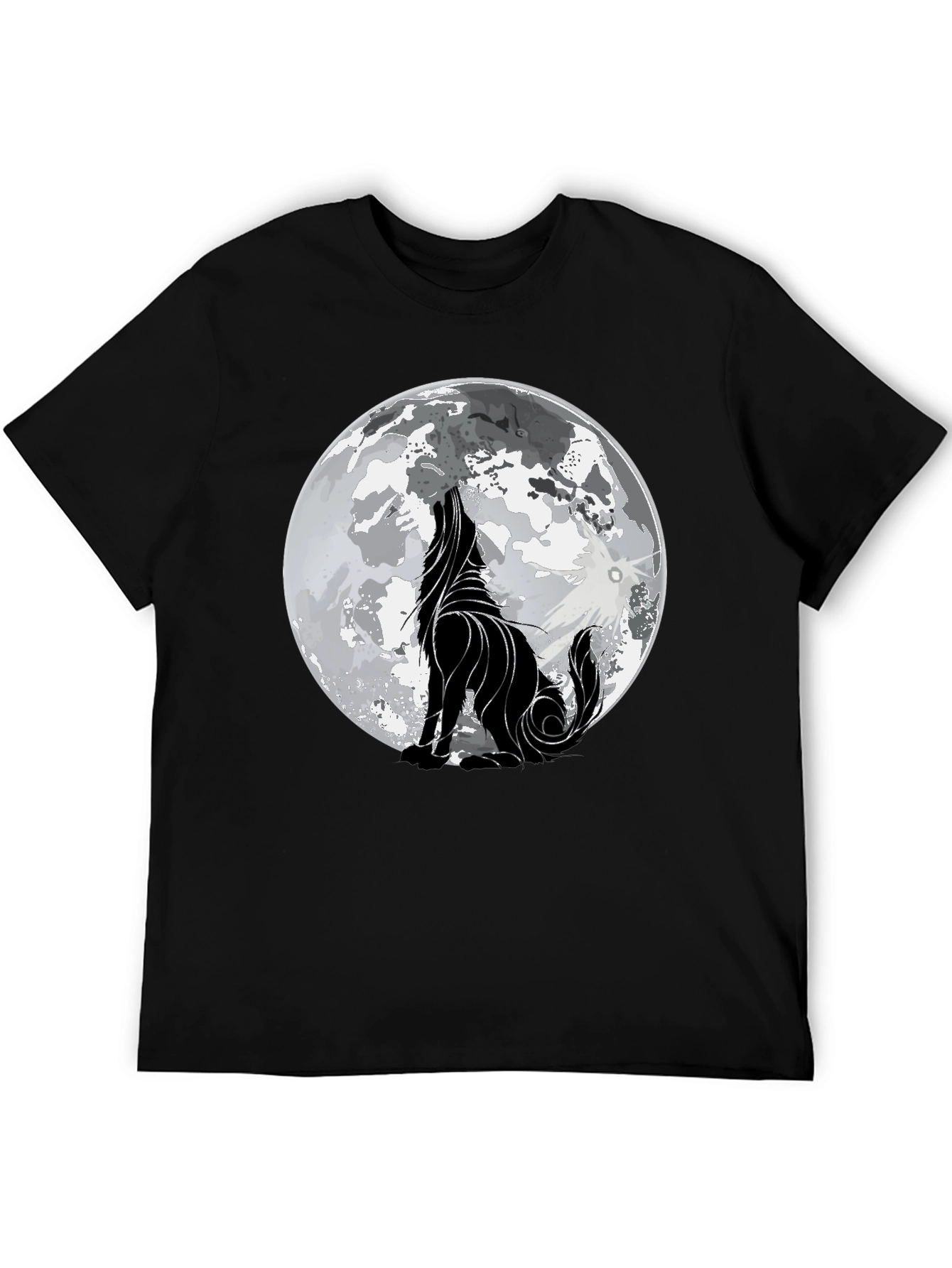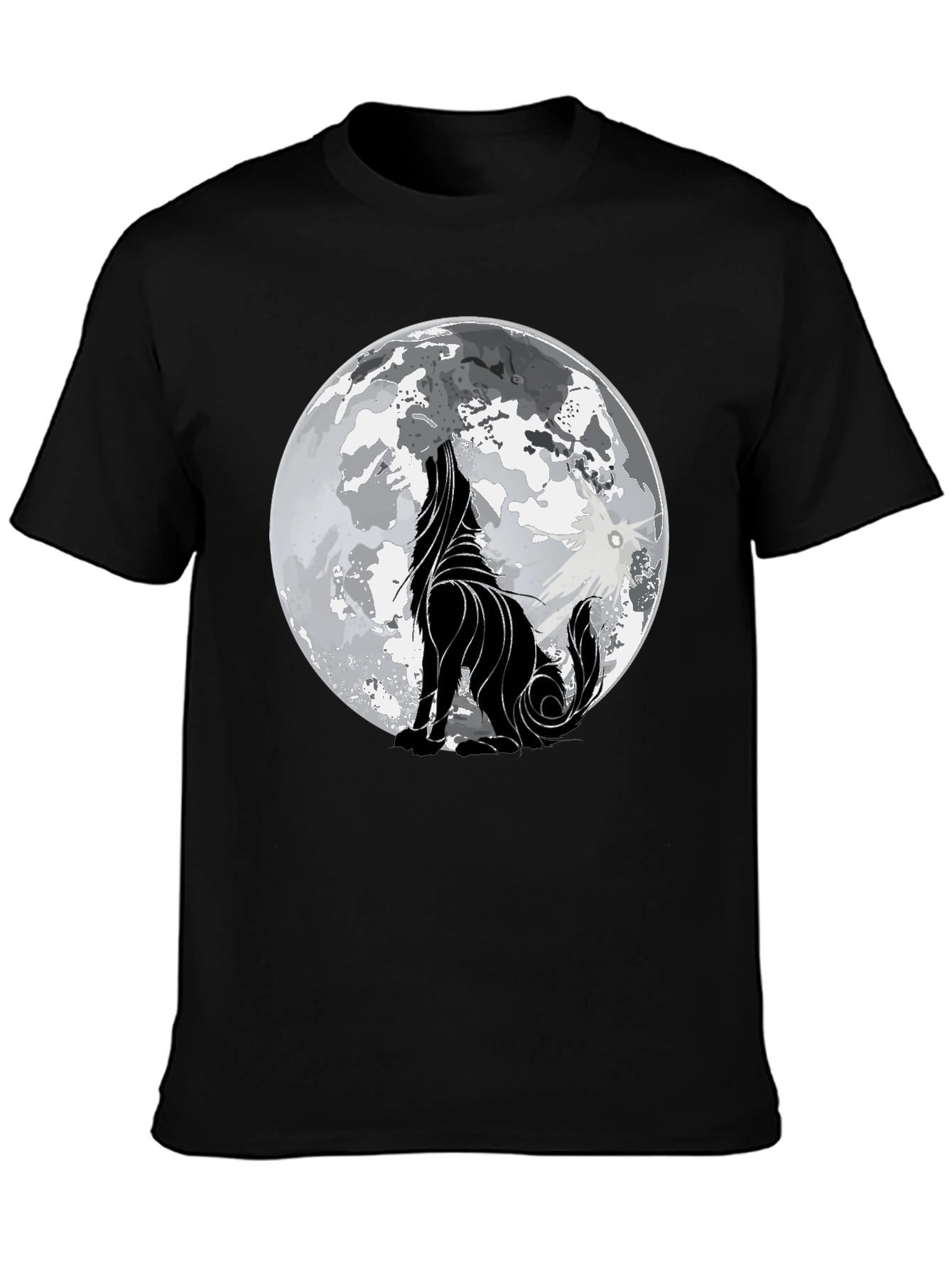 Camiseta Hombre Negra con Lobo Aullando a la Luna