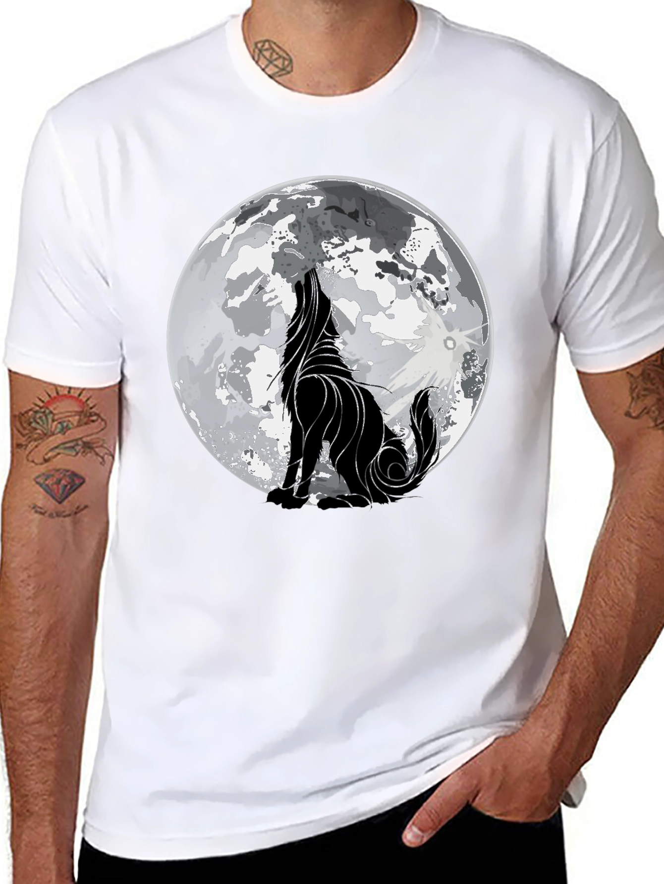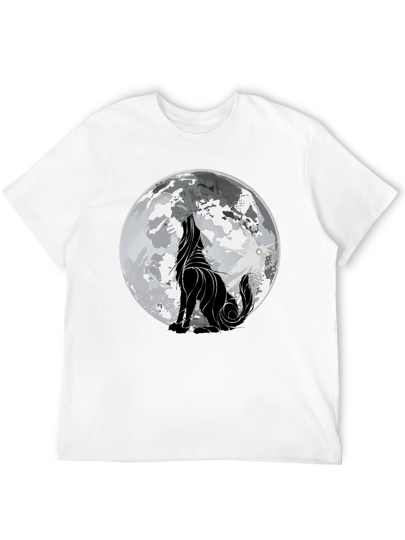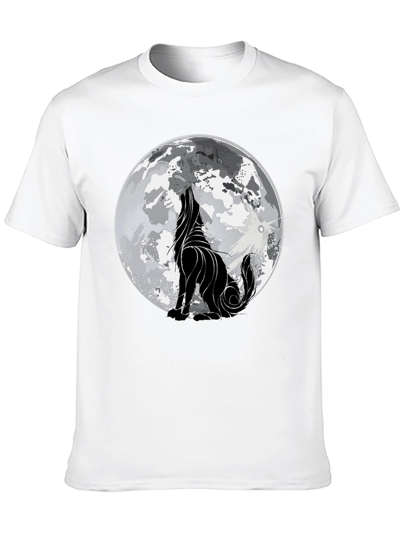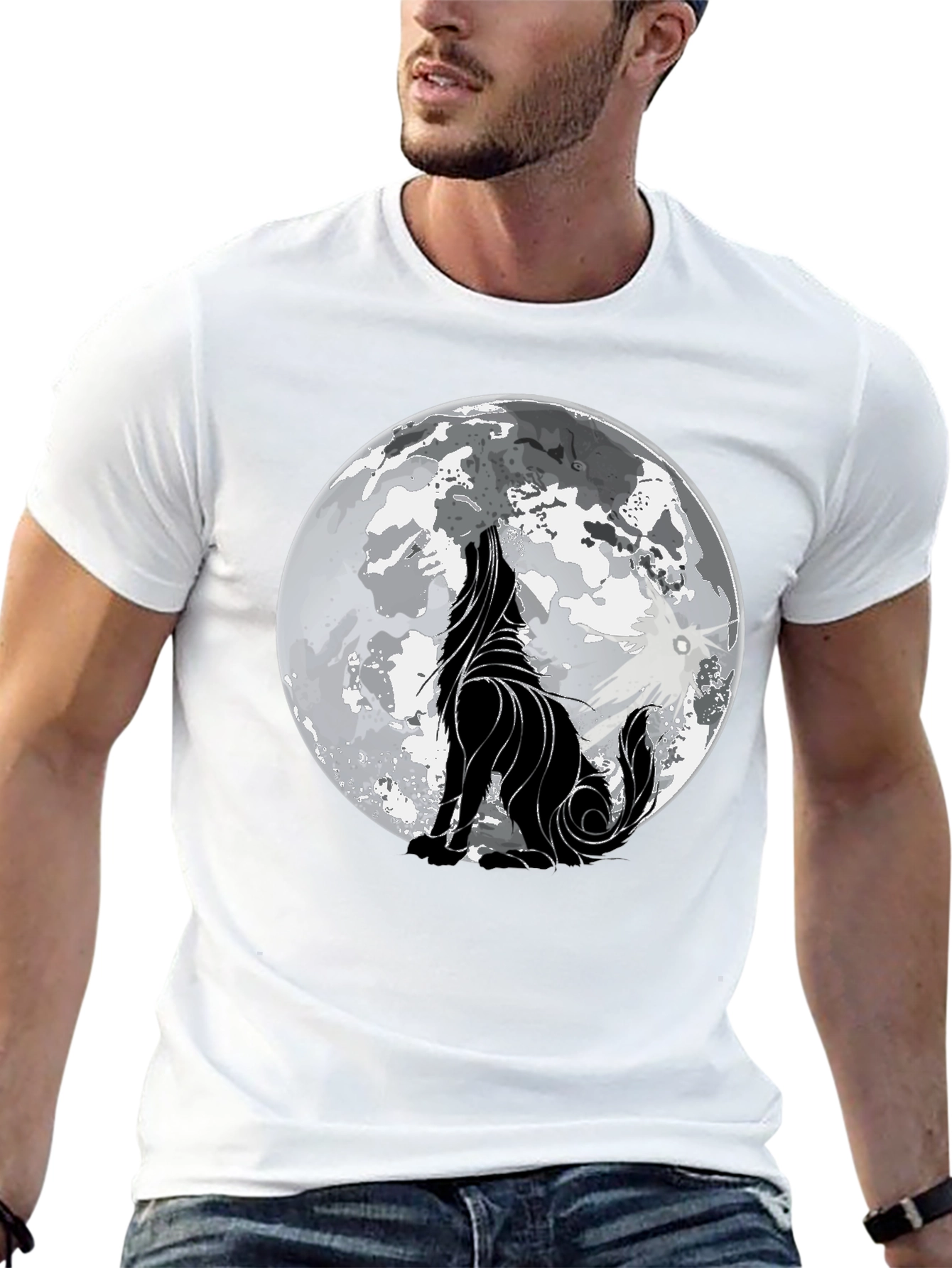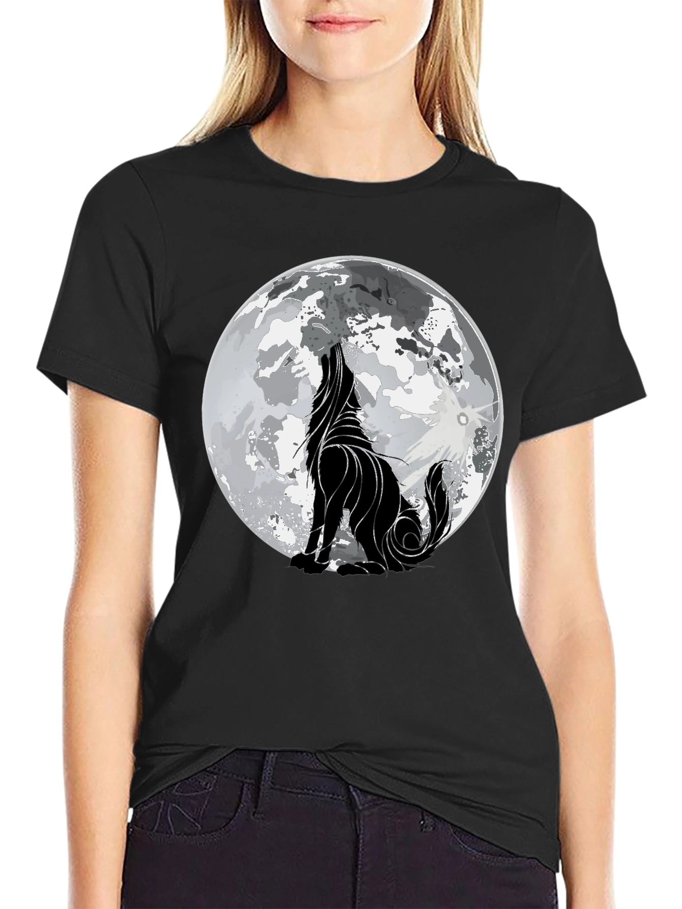 Camiseta Hombre Negra con Lobo Aullando a la Luna