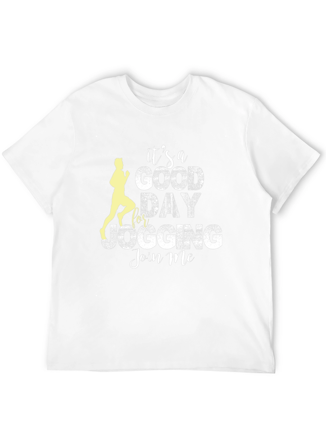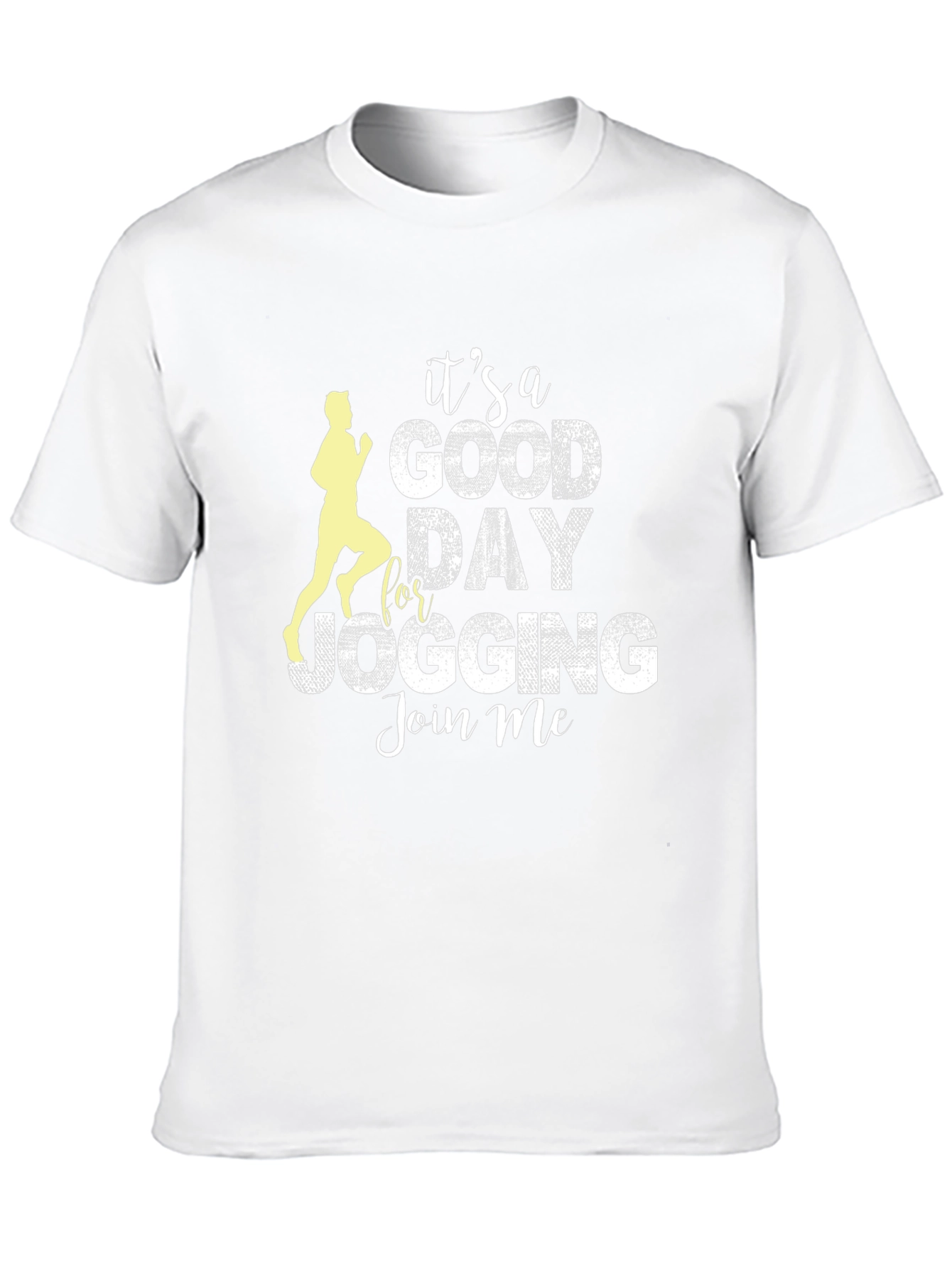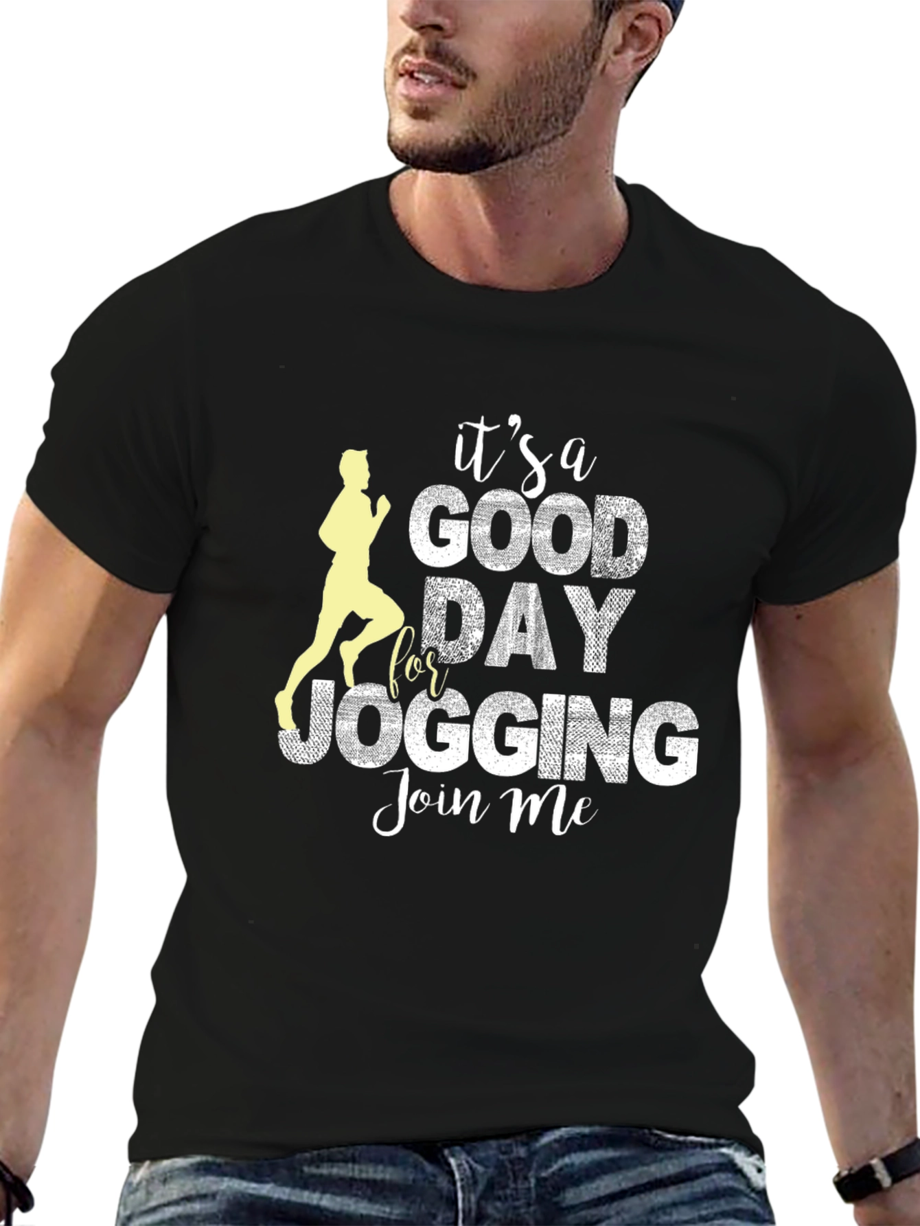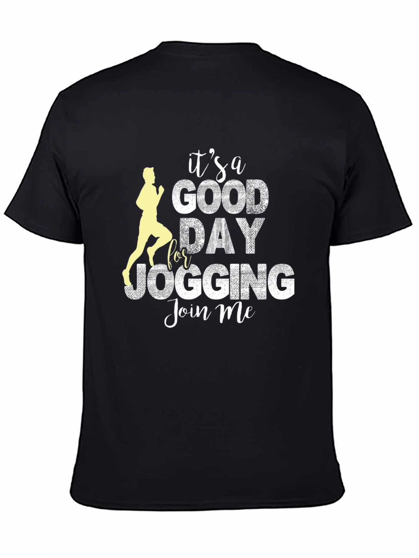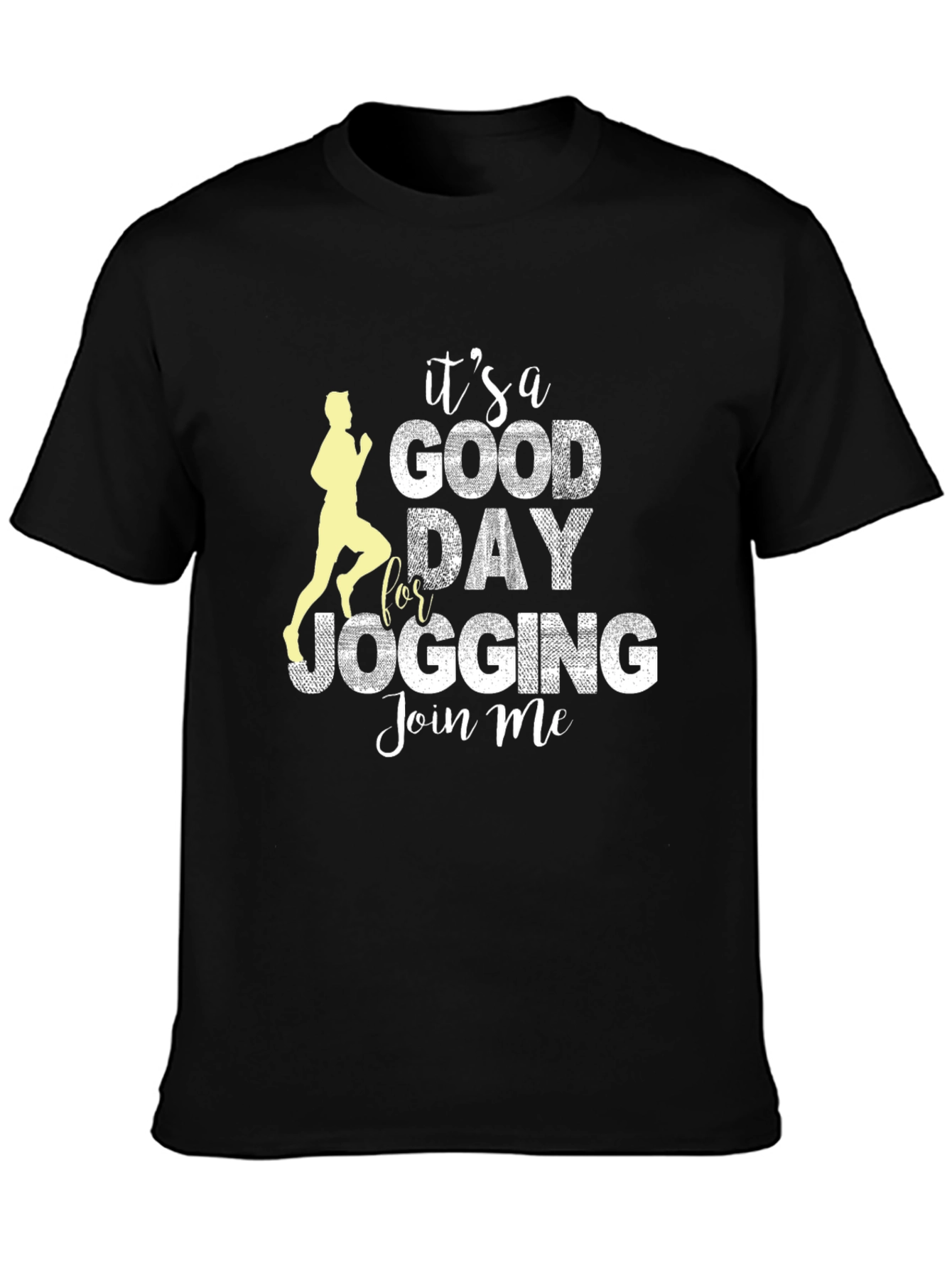 Esta camiseta negra para hombre presenta un diseño llamativo y motivador para los amantes del jogging. En el centro, se aprecia una ilustración de una persona corriendo en color amarillo claro, acompañada del texto "It's a GOOD DAY for JOGGING. Join Me" en letras grandes y en un estilo grunge que le da un toque moderno y urbano. Perfecta para usar durante tus entrenamientos al aire libre o para un look casual con un toque deportivo. Su tejido suave y ligero asegura comodidad durante todo el día. ¡Únete a la tendencia y muestra tu pasión por el running con esta prenda única!