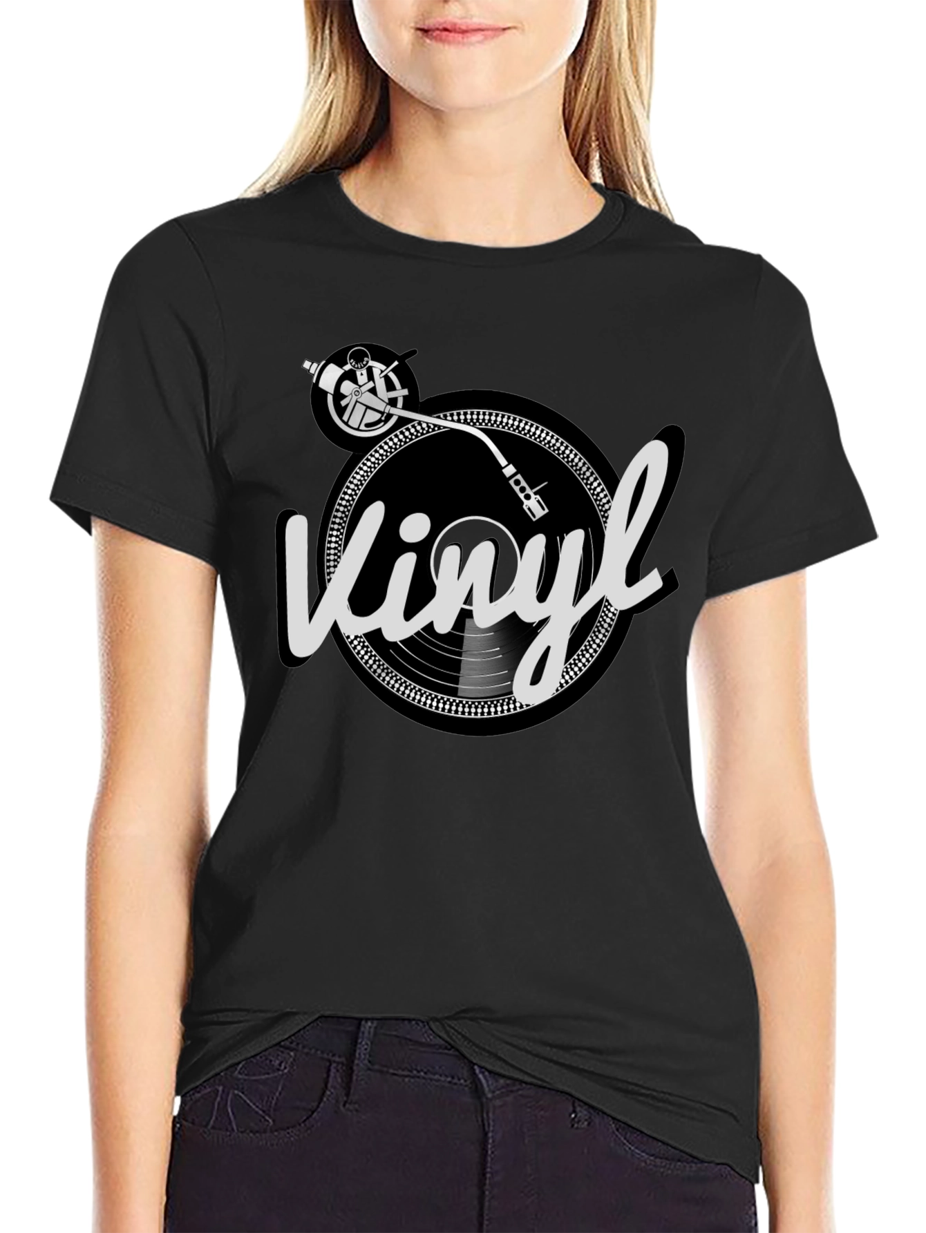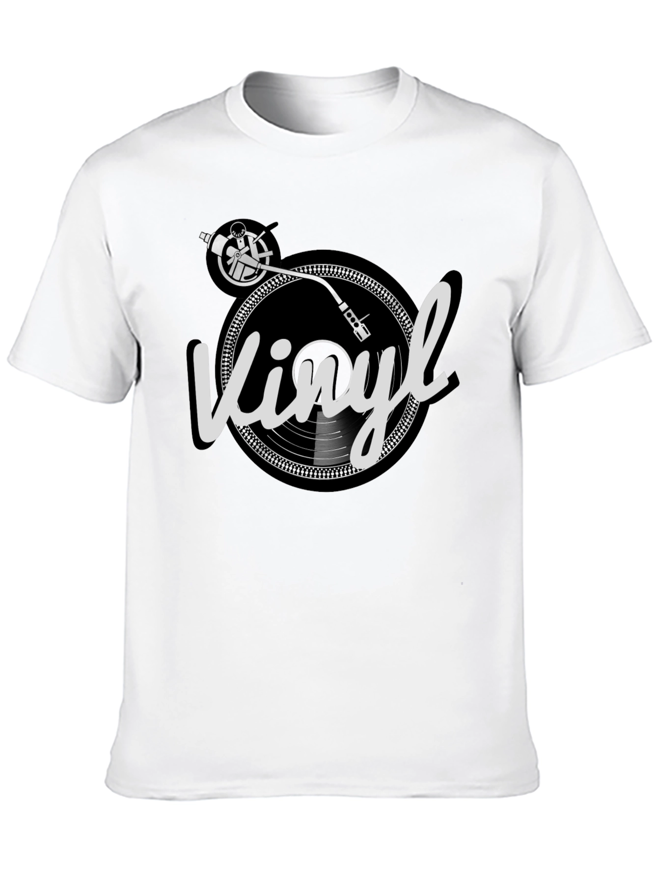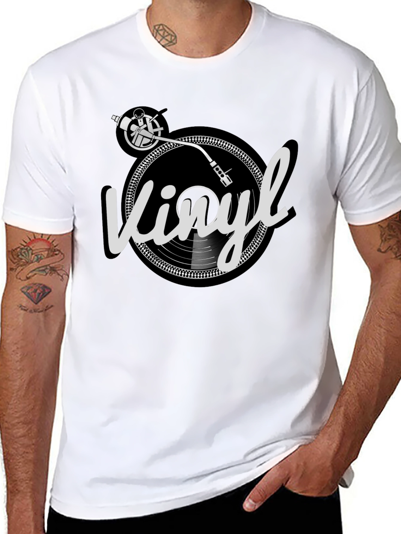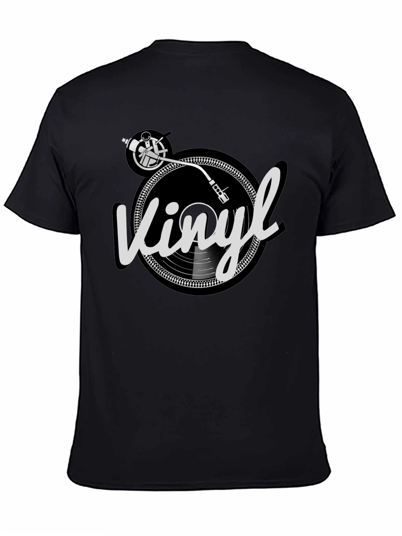 Luce un estilo clásico con esta camiseta negra de hombre. Presenta un diseño llamativo de un tocadiscos y la palabra "Vinyl" en una fuente retro. Perfecta para los amantes de la música y la cultura vintage. Confeccionada en un tejido suave y cómodo, ideal para el uso diario. Combina esta camiseta con tus jeans favoritos para un look casual y moderno. ¡Muestra tu pasión por la música con esta prenda única y original!